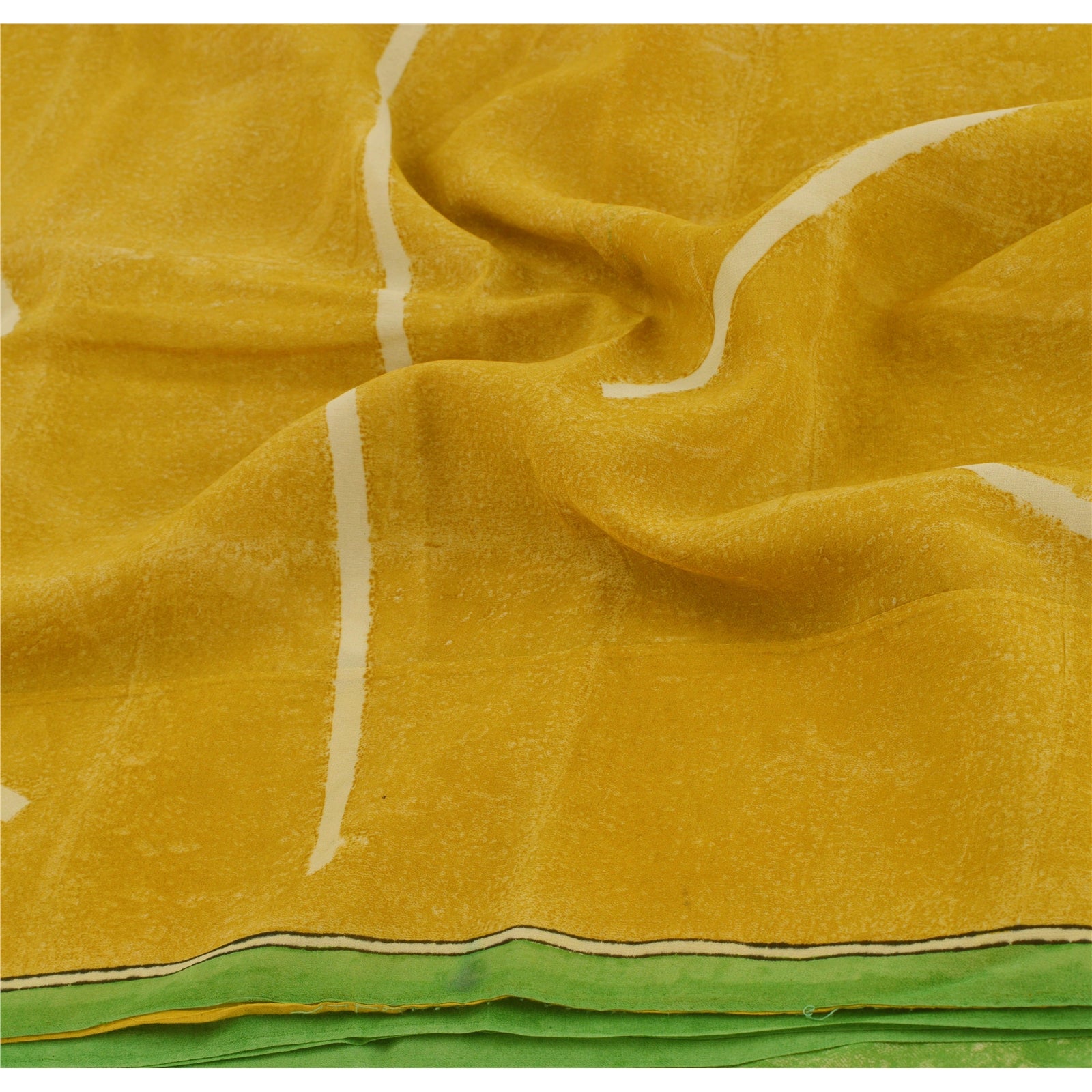 Sanskriti Vintage Green Pure Georgette Silk Saree Printed Craft Sustainable Fabric Sari