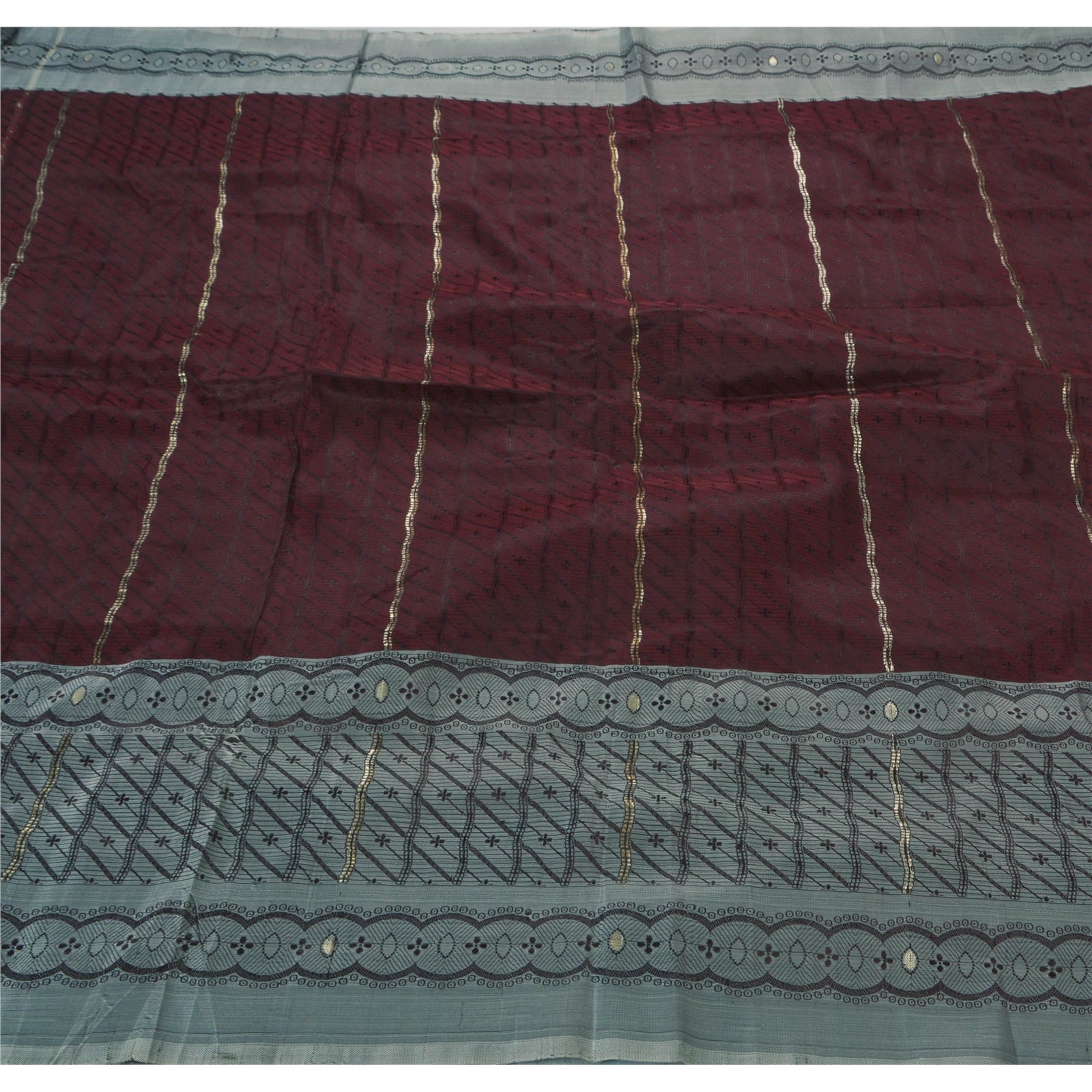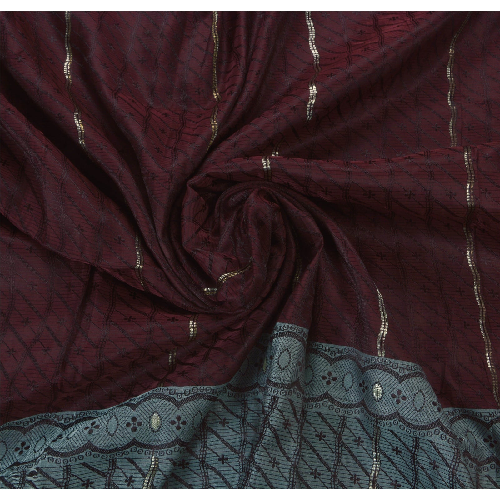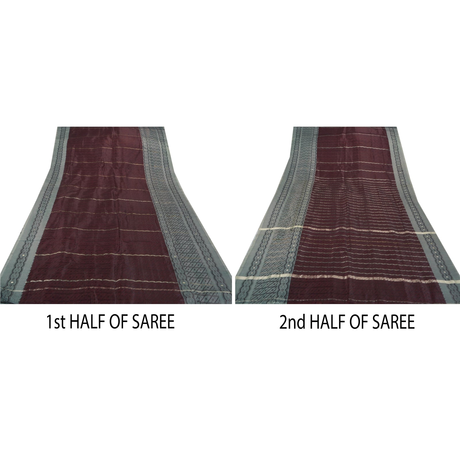 Sanskriti Vintage Heavy Saree Woven Silk Blend Sustainable Fabric Coffee Brown 5 Yard Sari