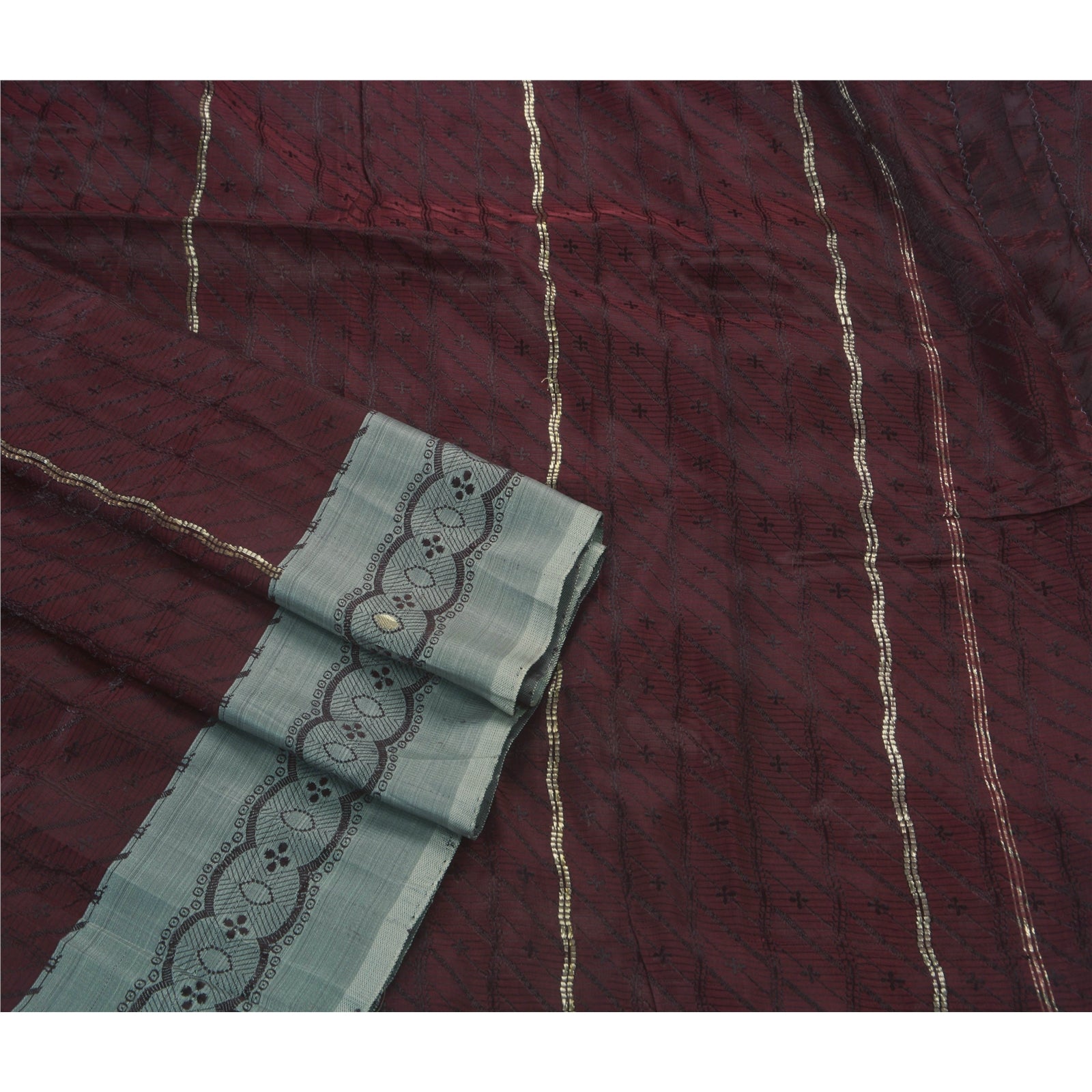 Charming Silk Blend woven sari. Base Sustainable Fabric in coffee brown and grey contrast with floral patterns all over. Maroon weaving work & golden brocade work further enhances the beauty of the saree. A unique and beautiful saree.