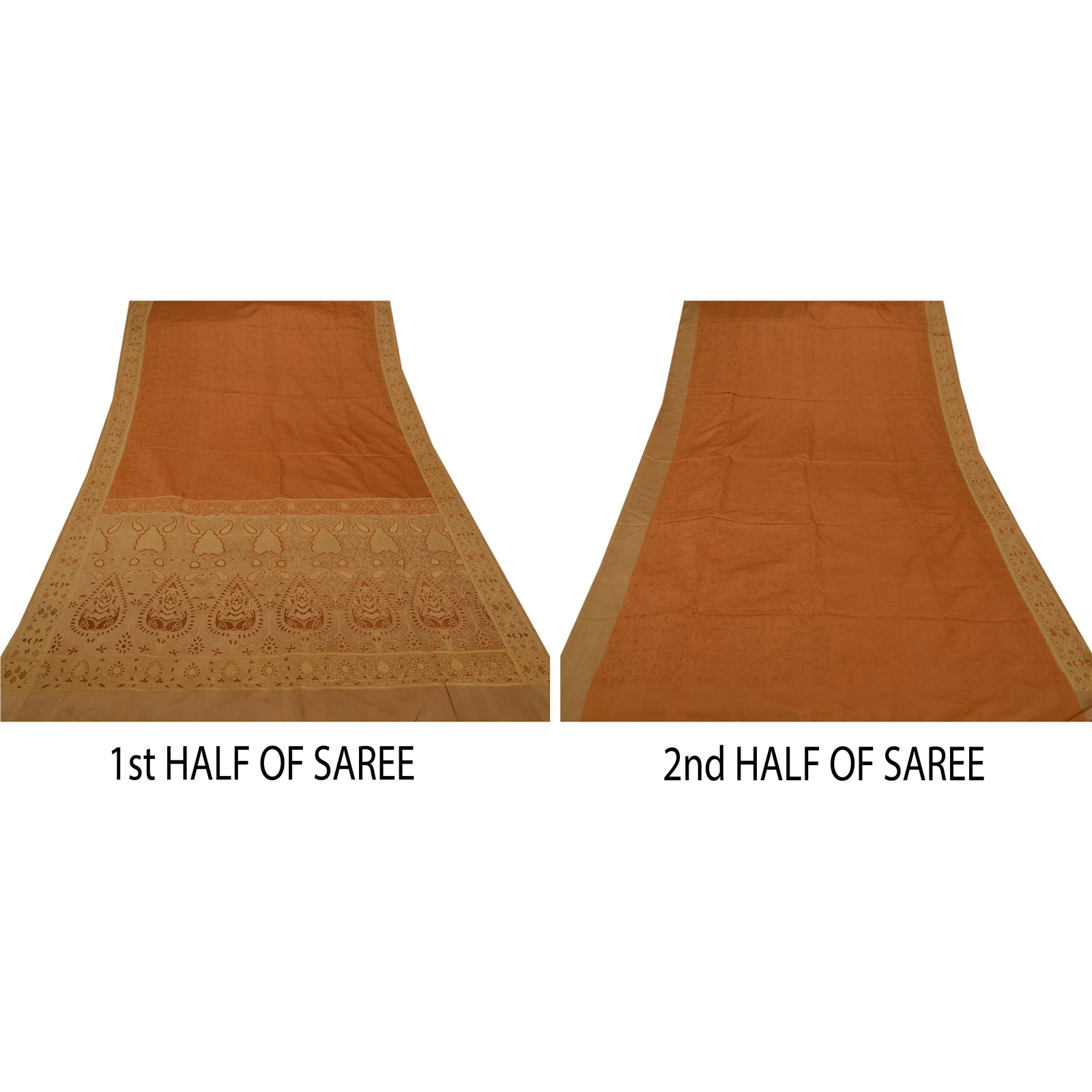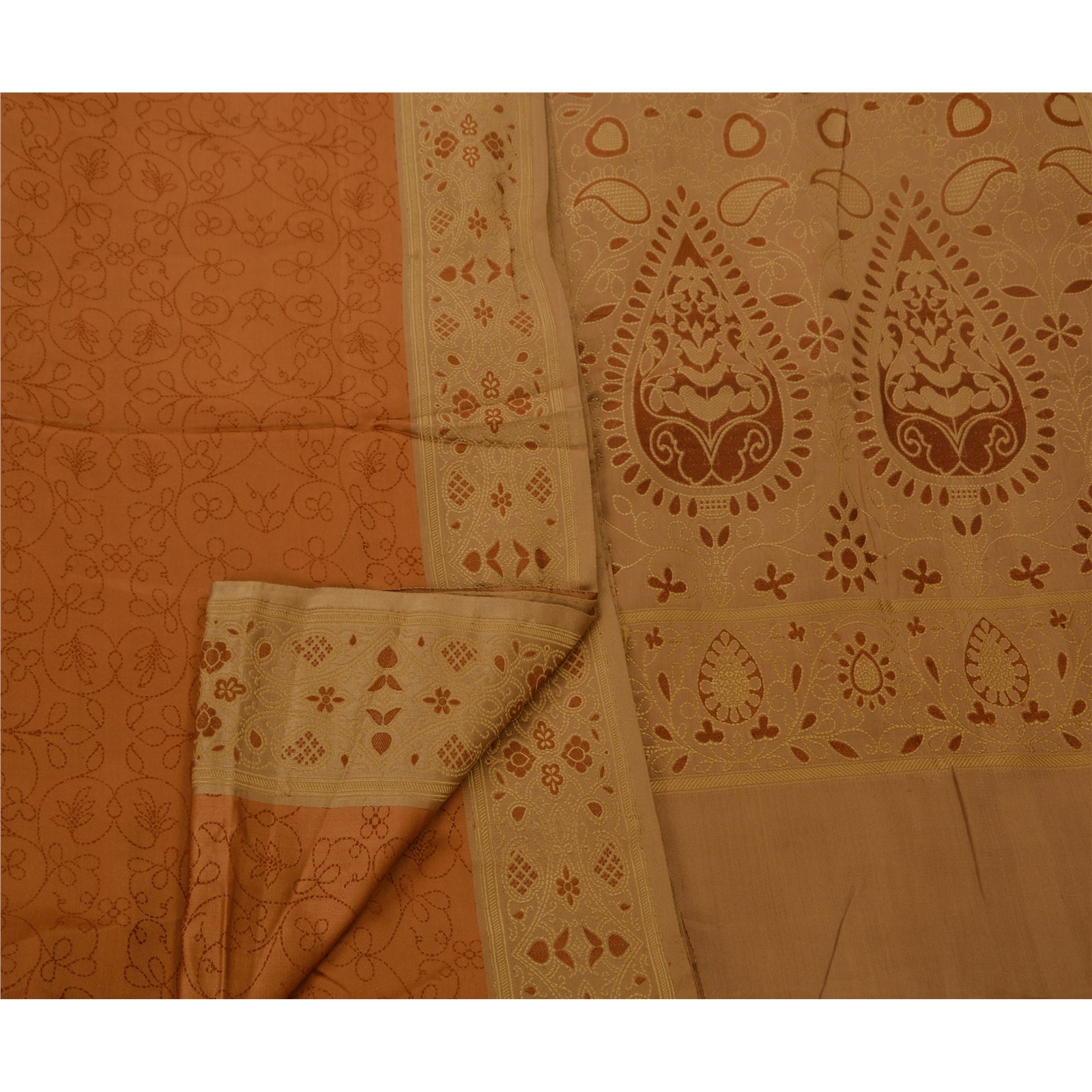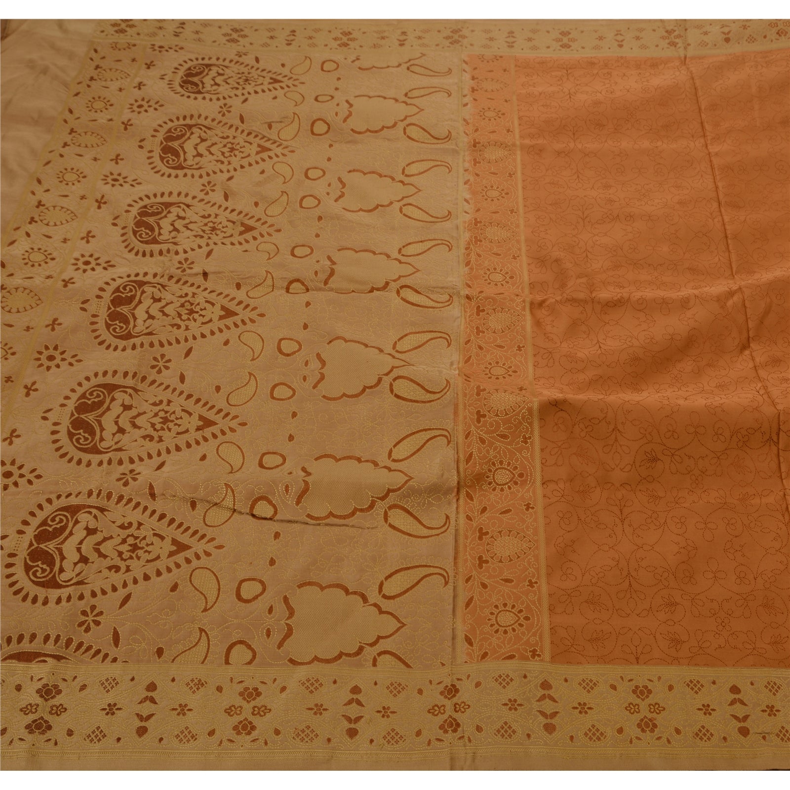 ? Beautiful brown & cream colored woven pure satin silk sari ? Pallu & Border features floral design adorned with cream & orange weaving work makes the sari look ravishing ? There are floral motifs with similar work in center part of sari. What is special about this saree? Nice orange & cream woven work with floral design on orange & cream color base Sustainable Fabric is really enhancing the beauty of the saree. This unique vintage saree can be used for various crafting ideas even if you don't want to use it as a sari. Design a dress, use it as a throw, as window dressing, upholstery, sarongs, table linen and much more. Let your creative juices flow and use this decorated Sustainable Fabric in multiple fashion.