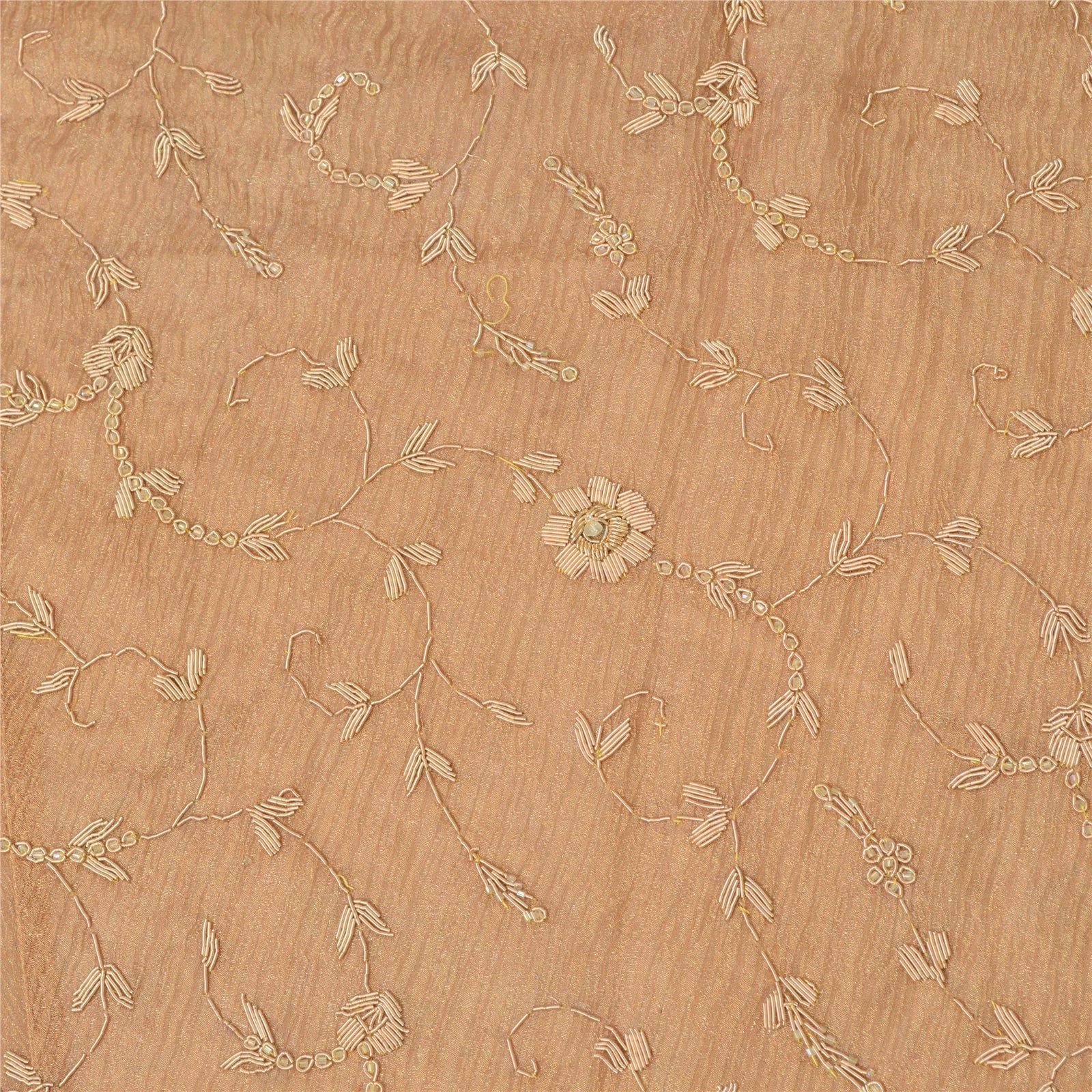 Sanskriti New Brown Pure Tissue Long Skirt Unstitched Hand Bead Antique Zardozi