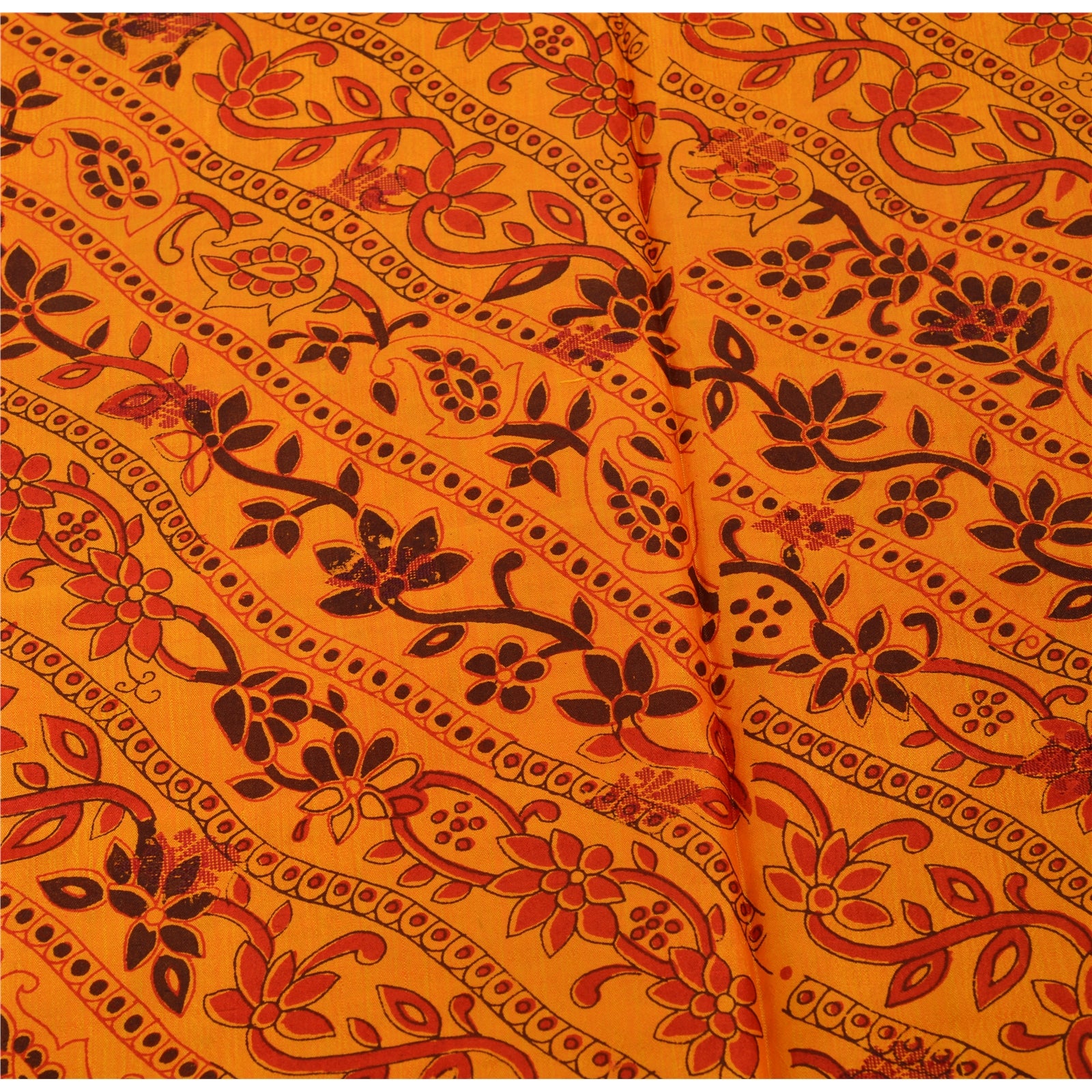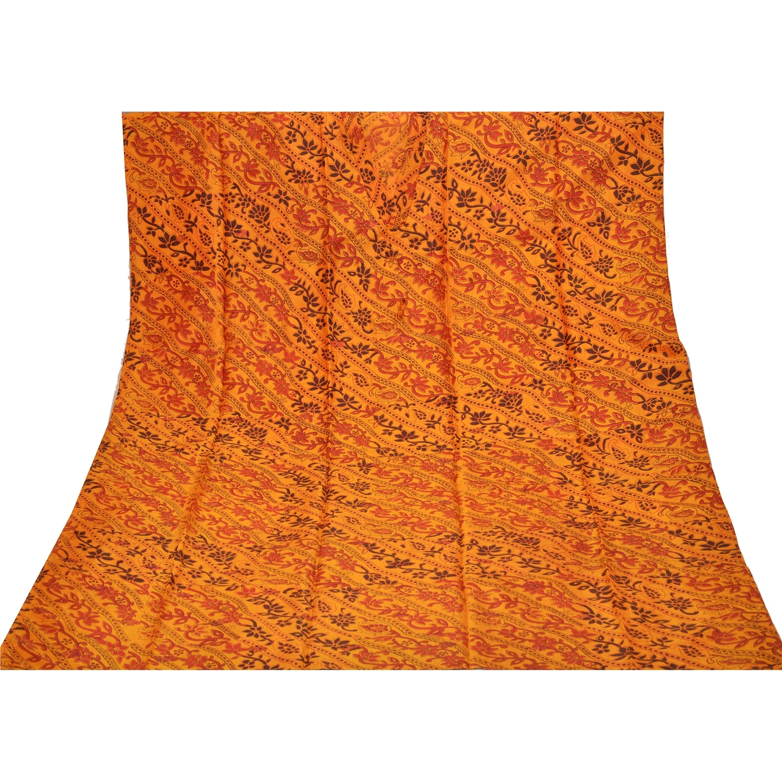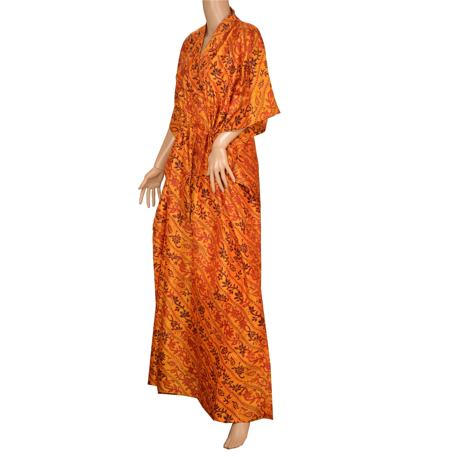 Sanskriti Vinatage Sanskriti New Caftan Printed Pure Silk Kaftan Saffron Style Long Top Floral