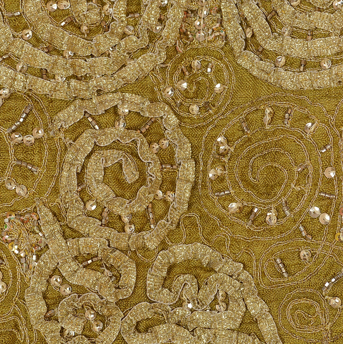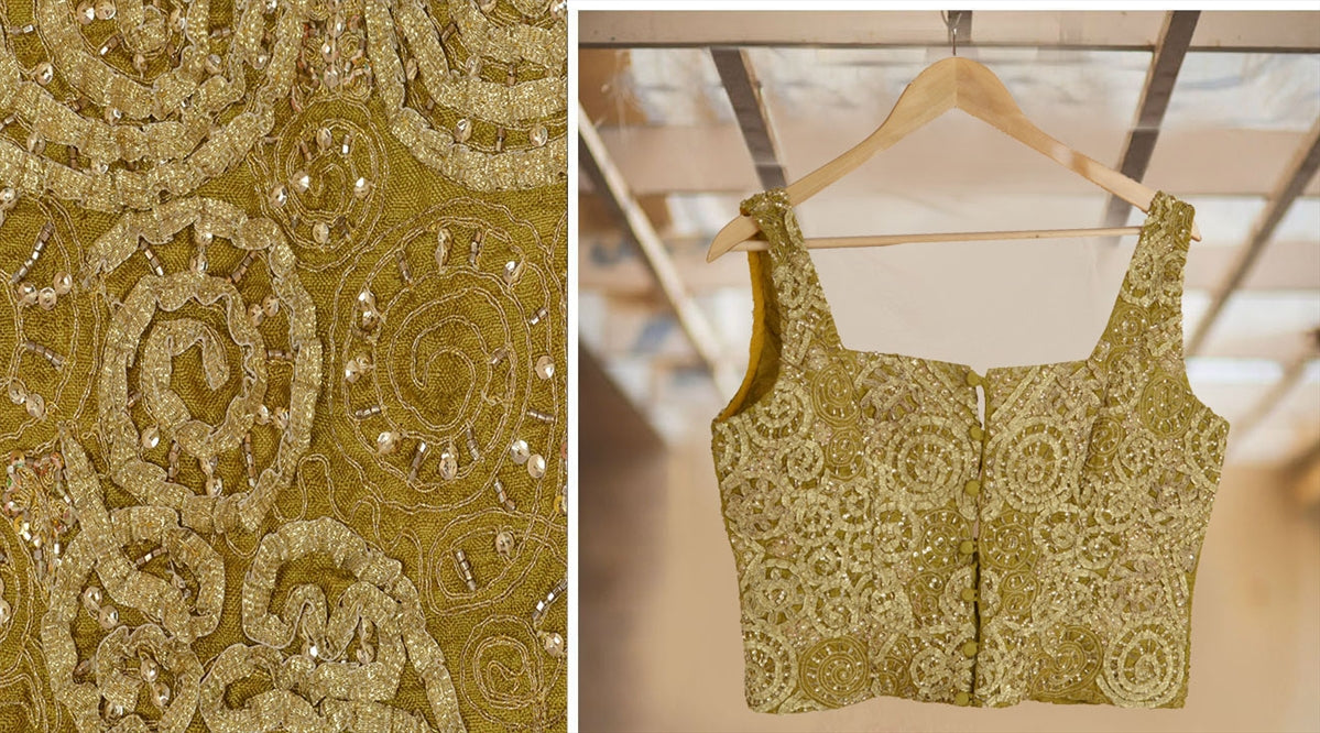 Sanskriti Vintage Sustainable Fabric Art Silk Hand Beaded Top Fashion Indian Green Gota