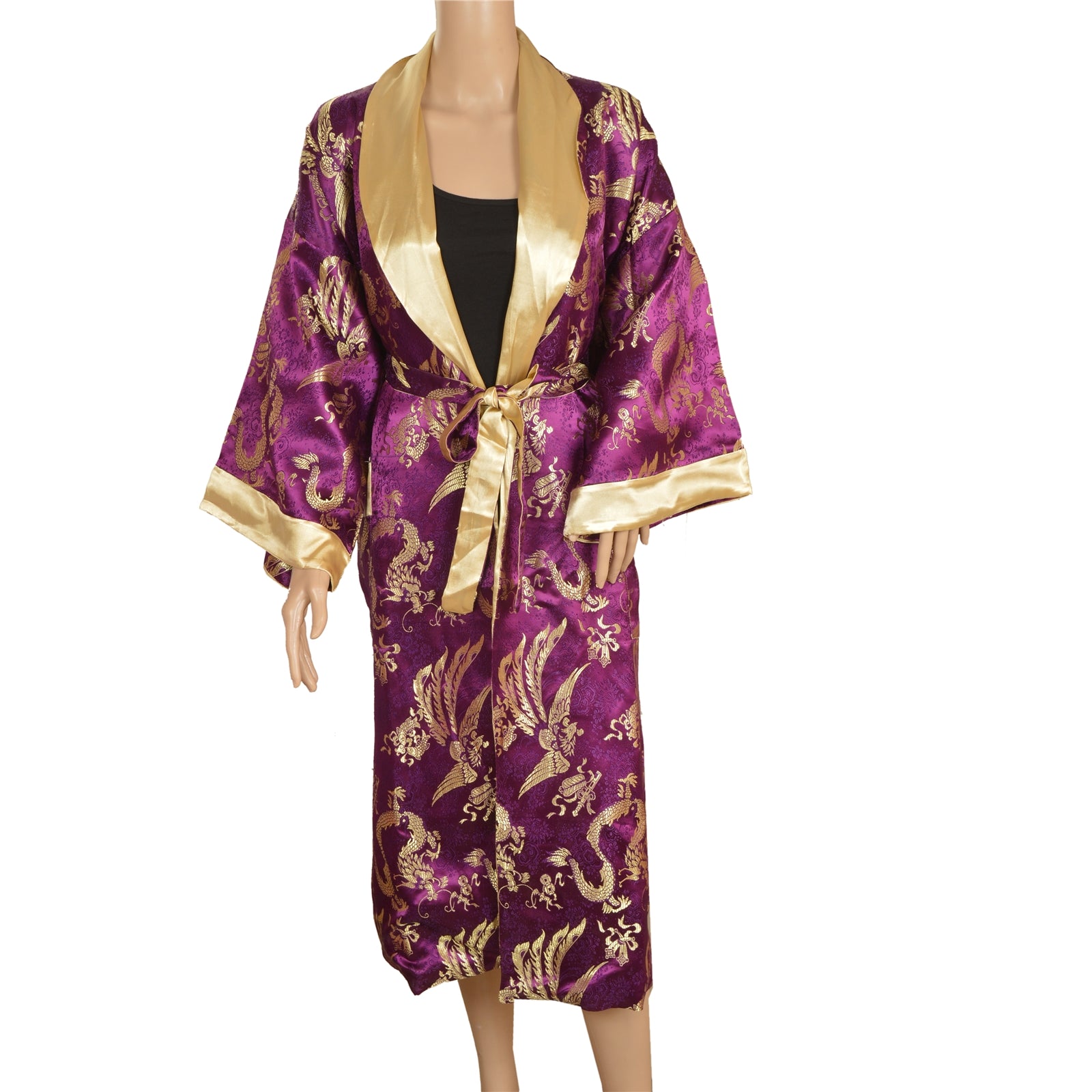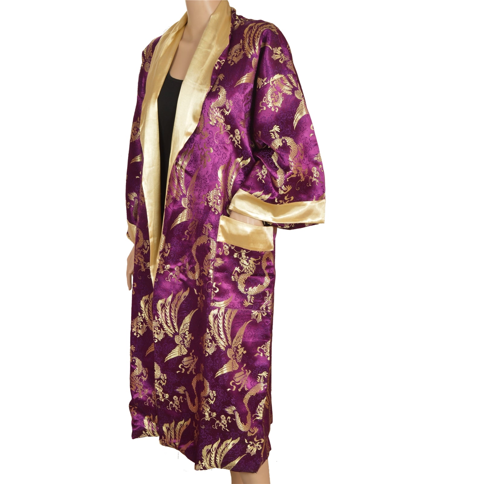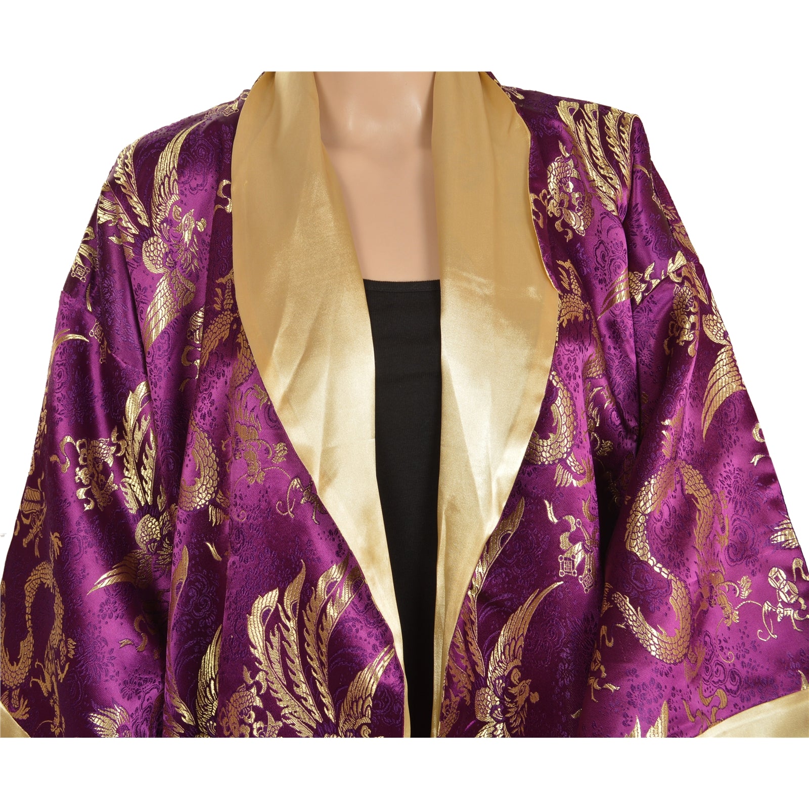 Sanskriti Vintage Sustainable Fabric Satin Woven Kimono Style Long Top Jacket Purple