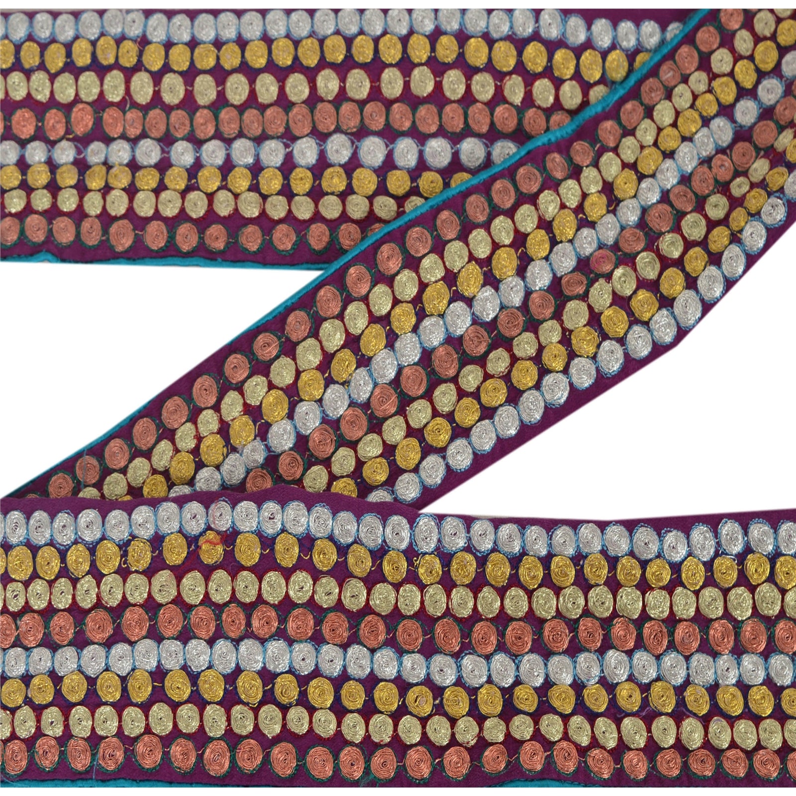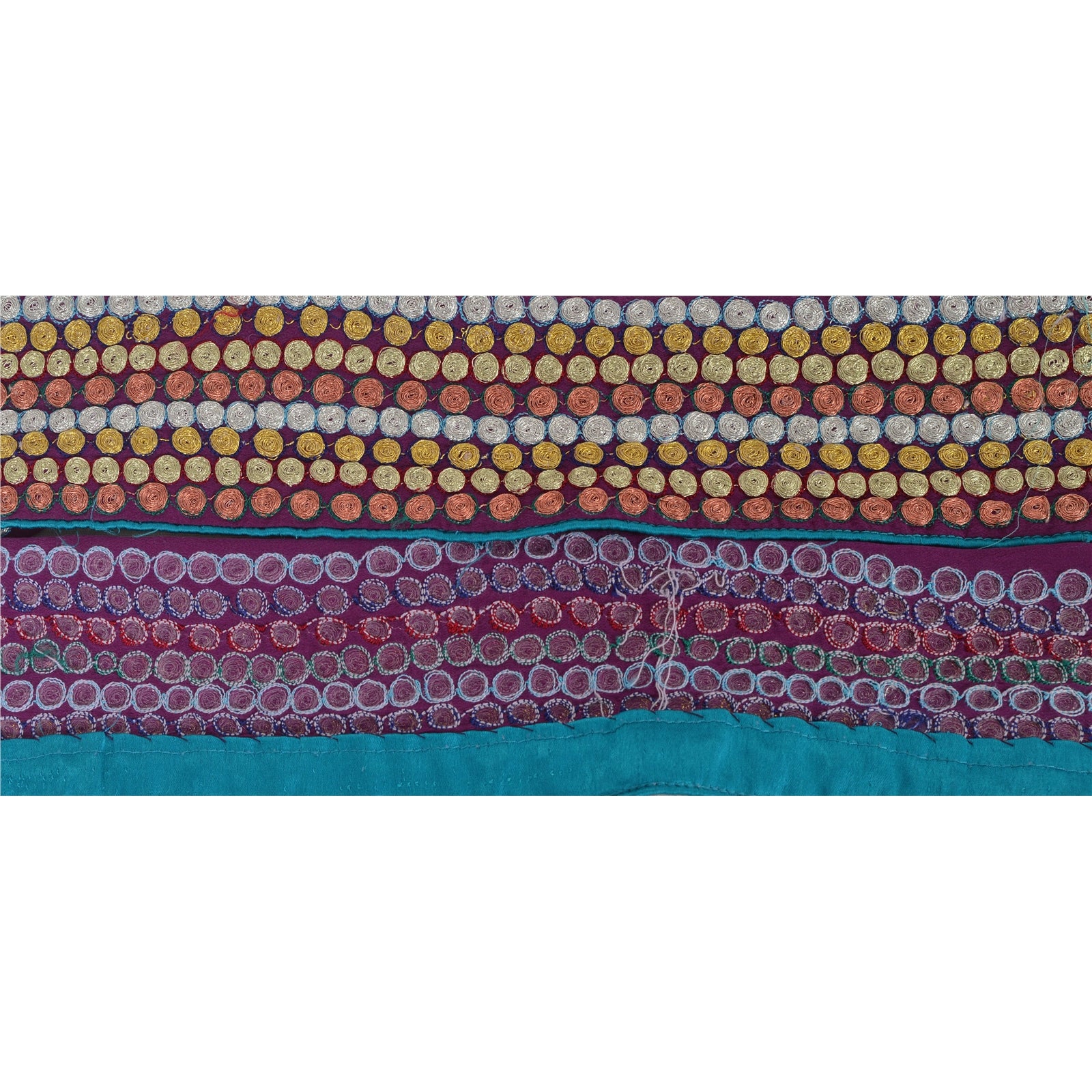 Amazing georgette embroidered sari border in purple color highlighting thread work. Border has beautiful floral patterns painstakingly embroidered silver, golden, copper color dori work . WOW!! an awesome one of a kind versatile border. 1 Quantity = 1 Yard