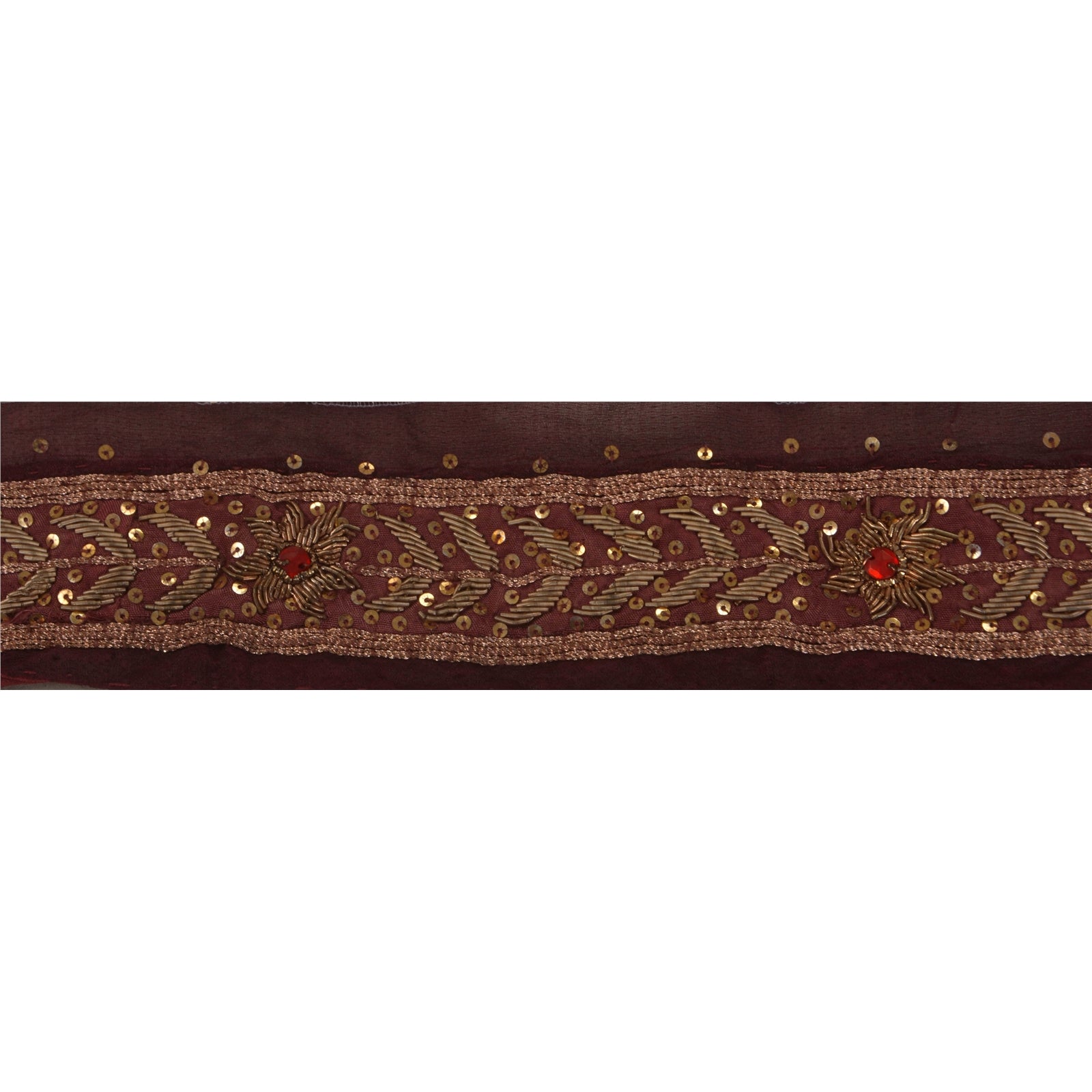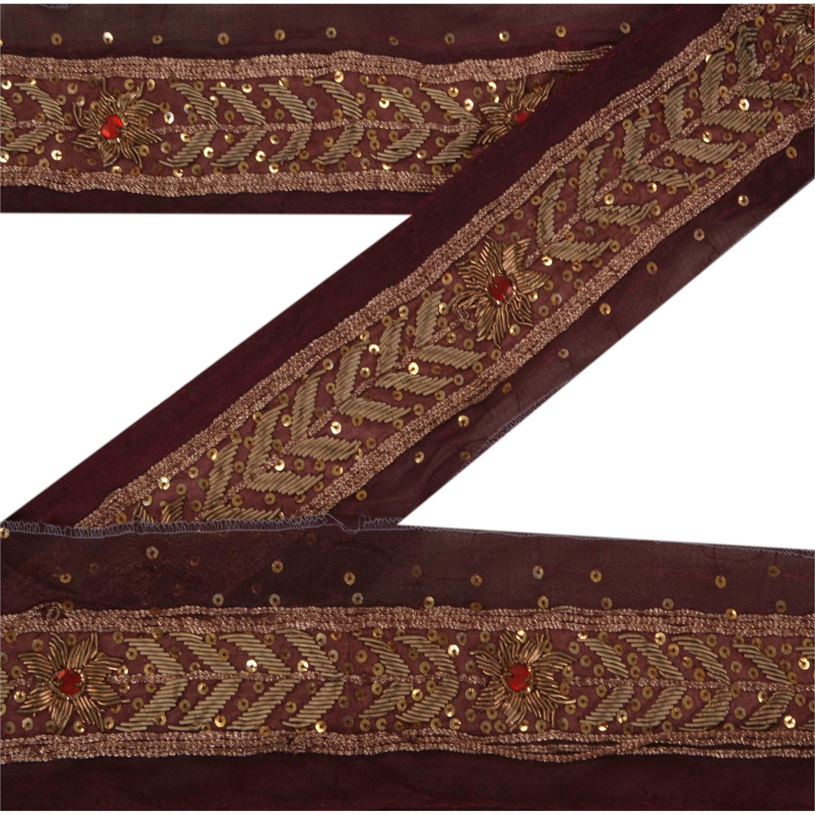 Sanskriti Vintage 1 Yd Sari Border Antique Hand Beaded Craft Ribbon Wine Lace