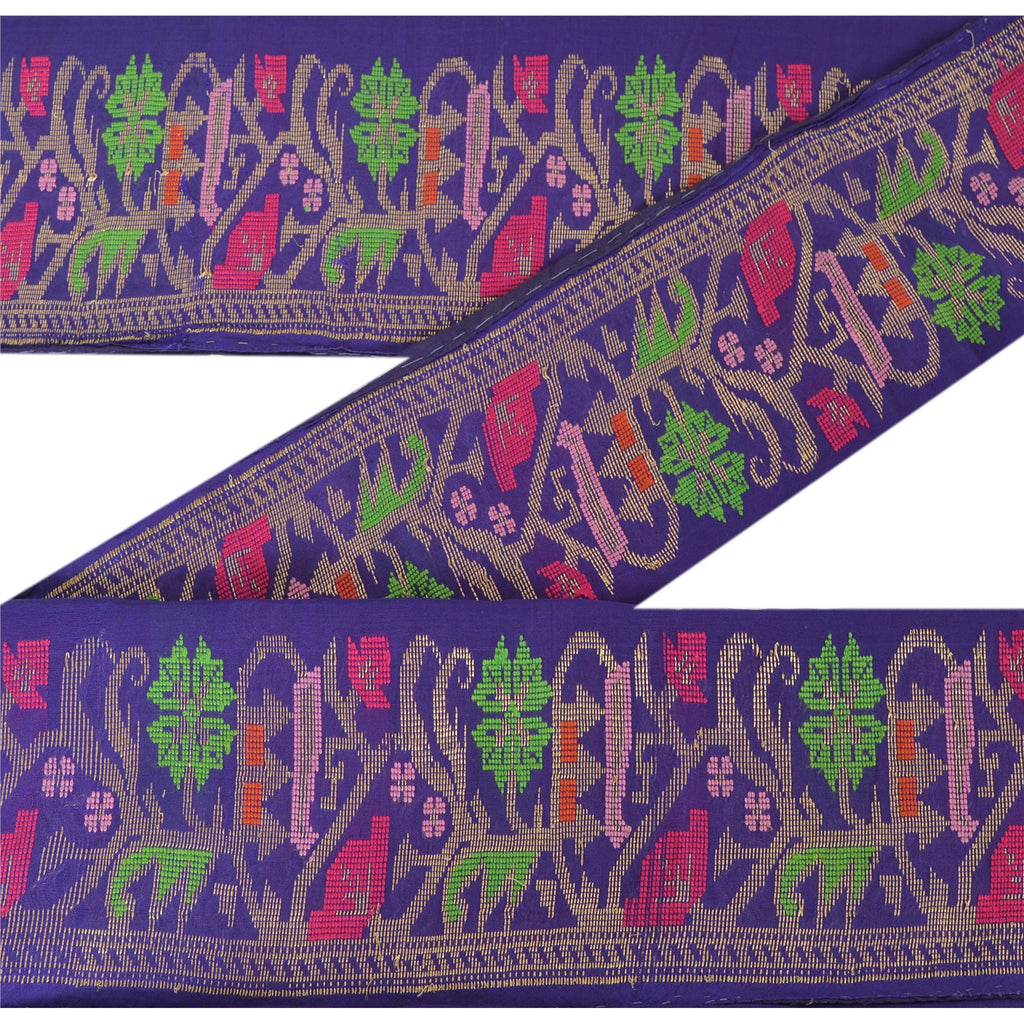 Sanskriti Vintage 1 Yd Sari Border Antique Woven Trim Sewing Blue Craft Lace
