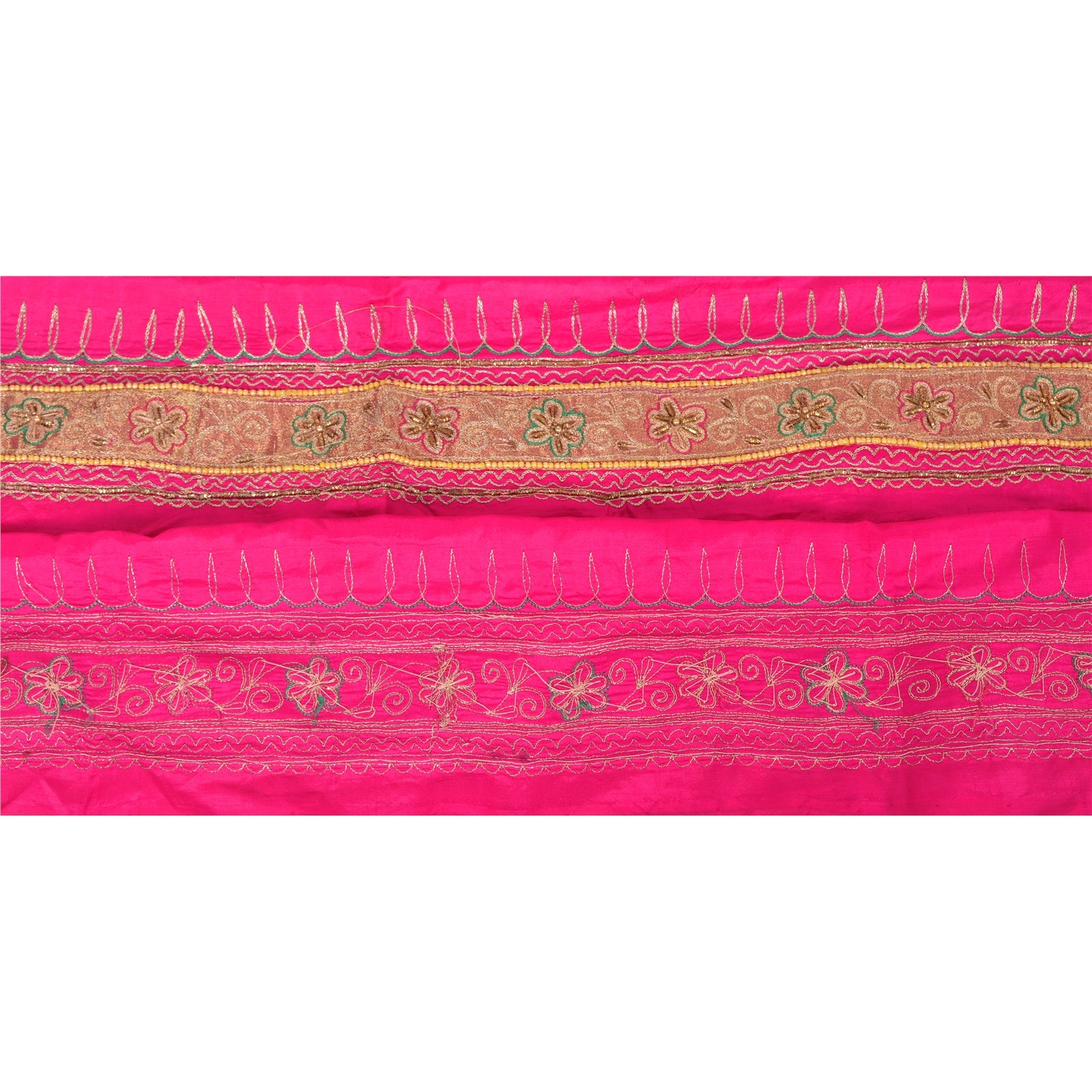 Sanskriti Vintage 1 YD Sari Border Hand Beaded Craft Trim Sewing Pink Zari Lace