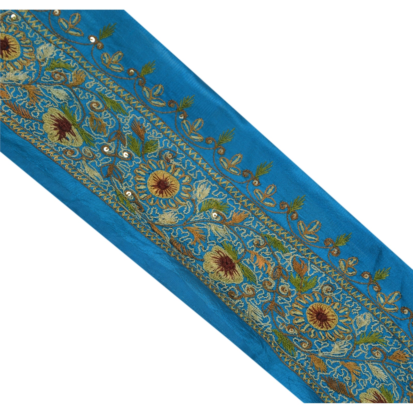 Sanskriti Vintage 1 Yd Sari Border Hand Beaded Trim Sewing Blue Craft Lace