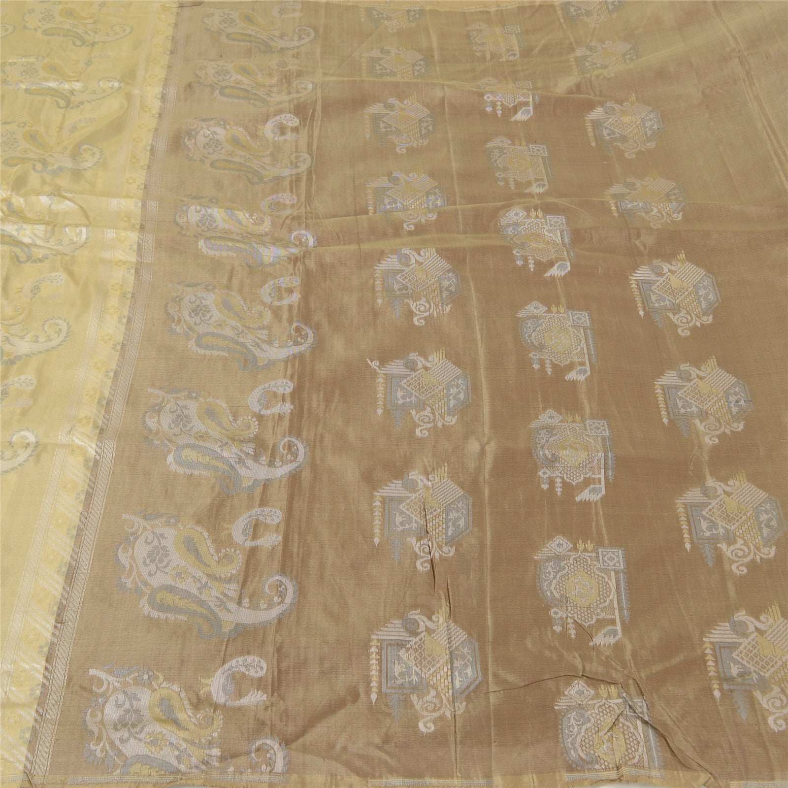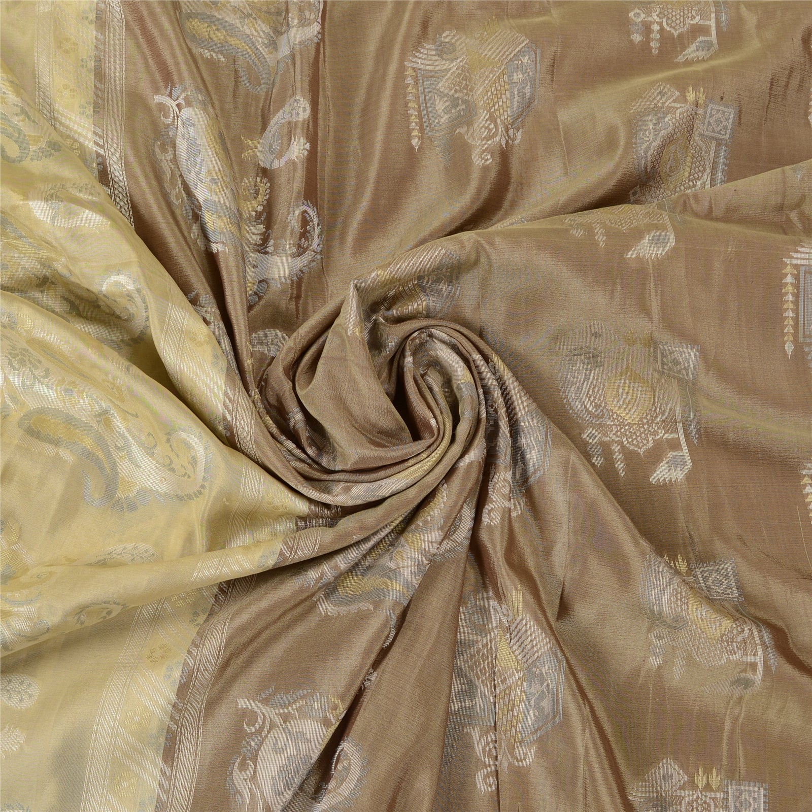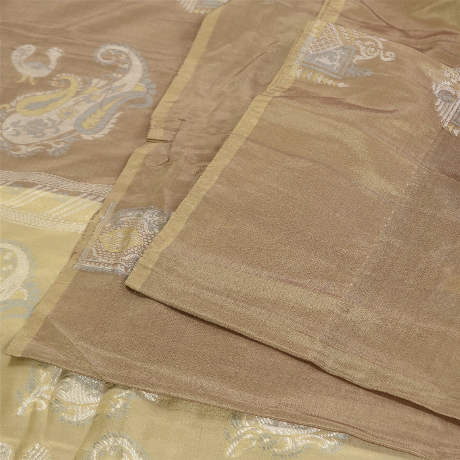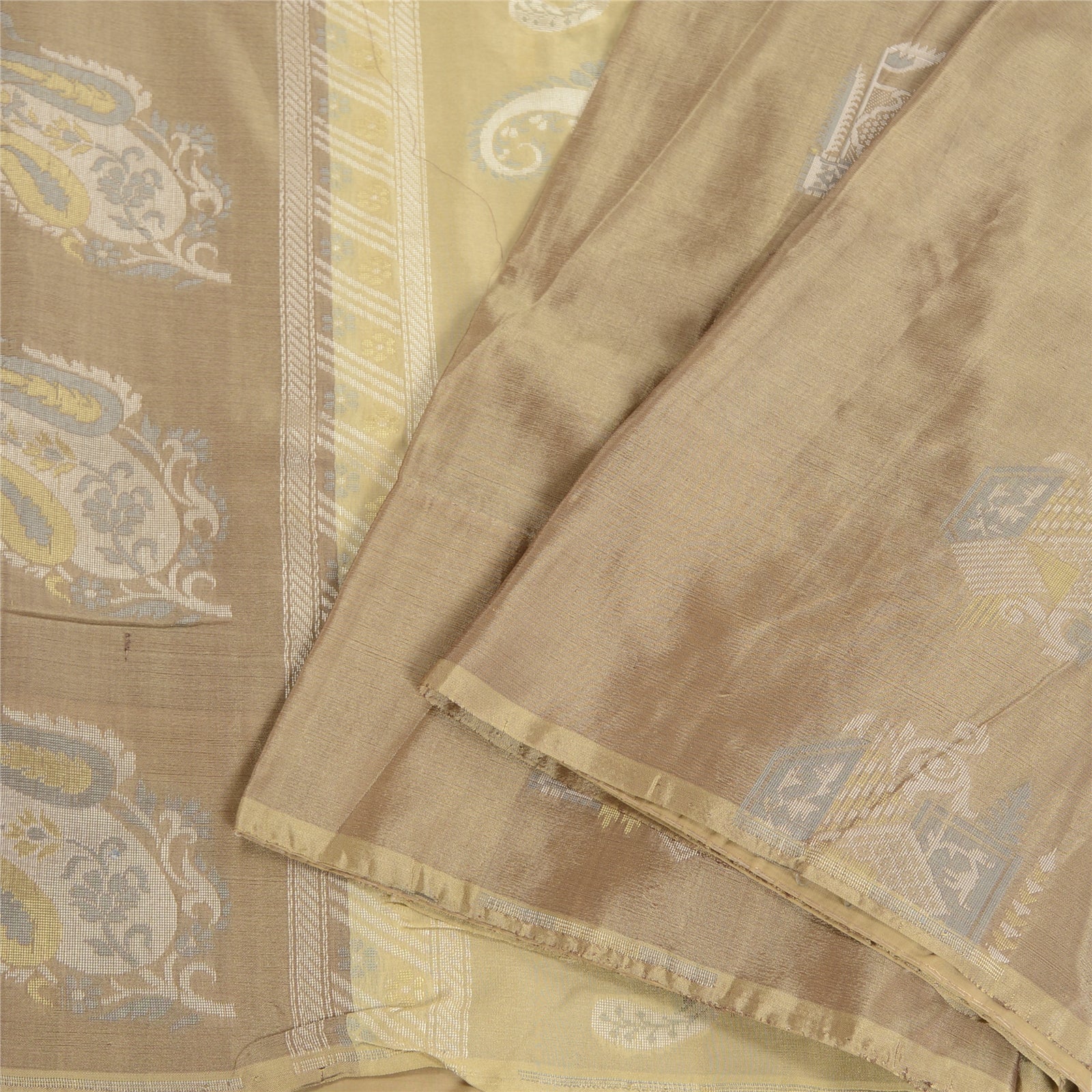 Sanskriti Vintage Beige/Brown Sarees 100% Pure Silk Woven Sari Craft Sustainable Fabric