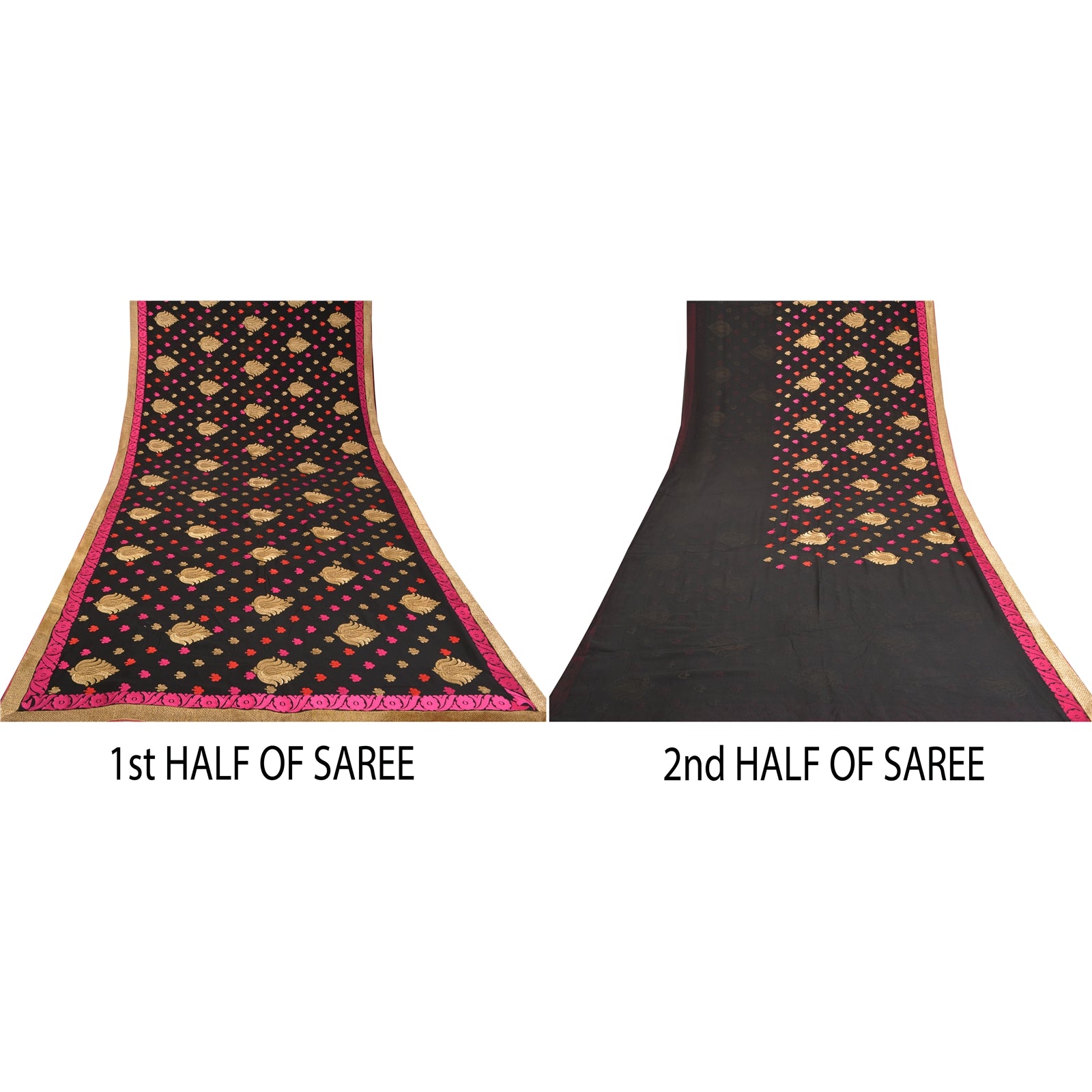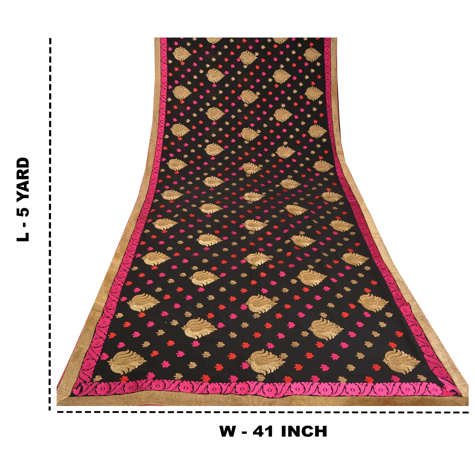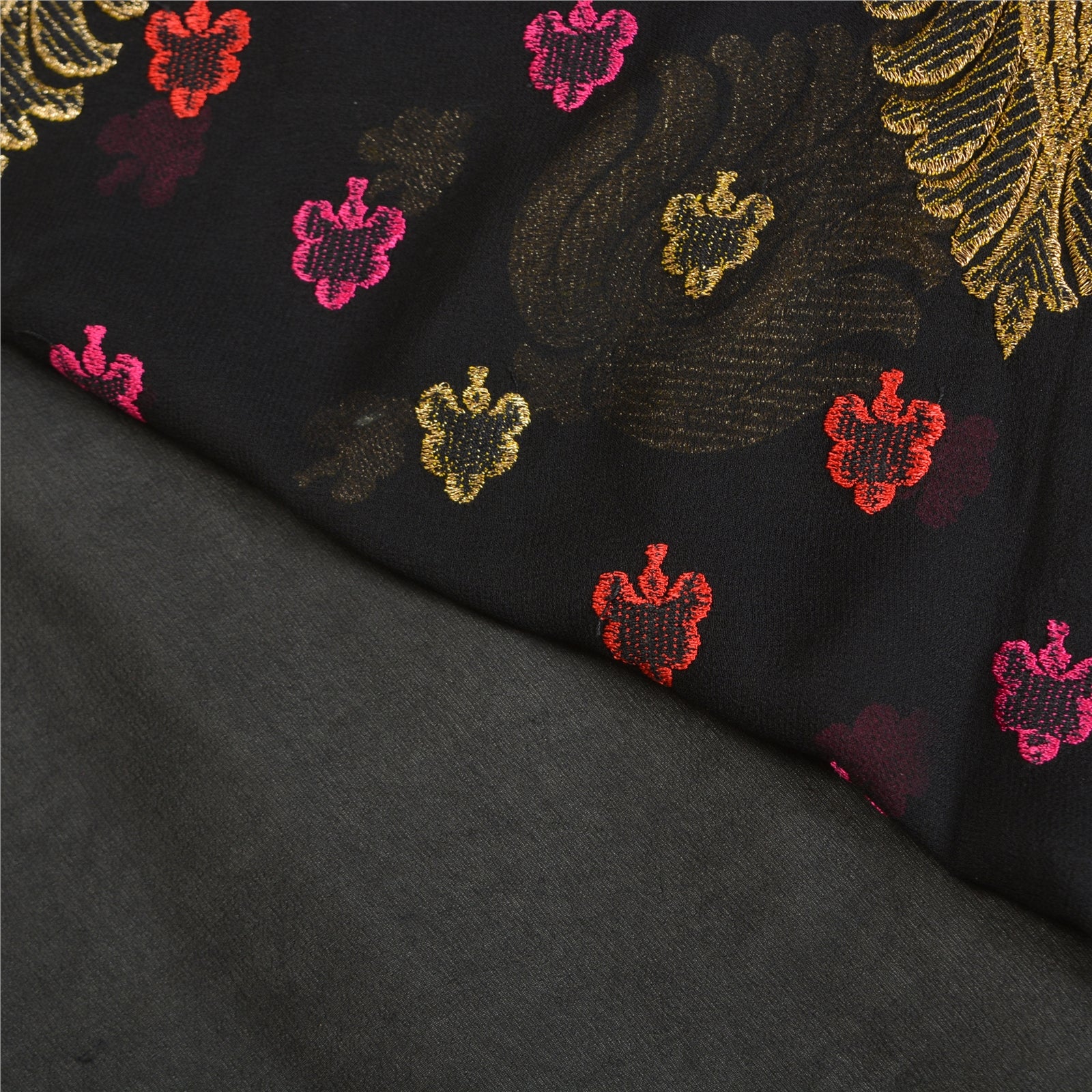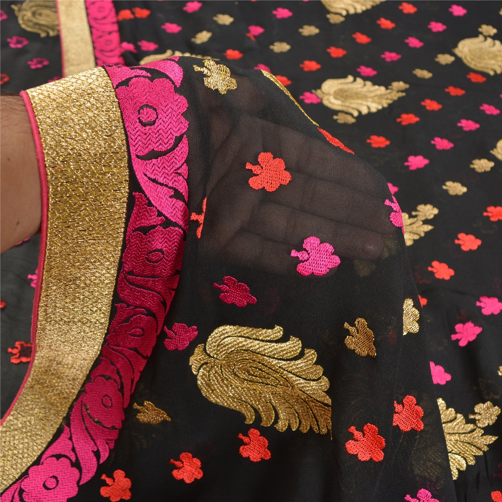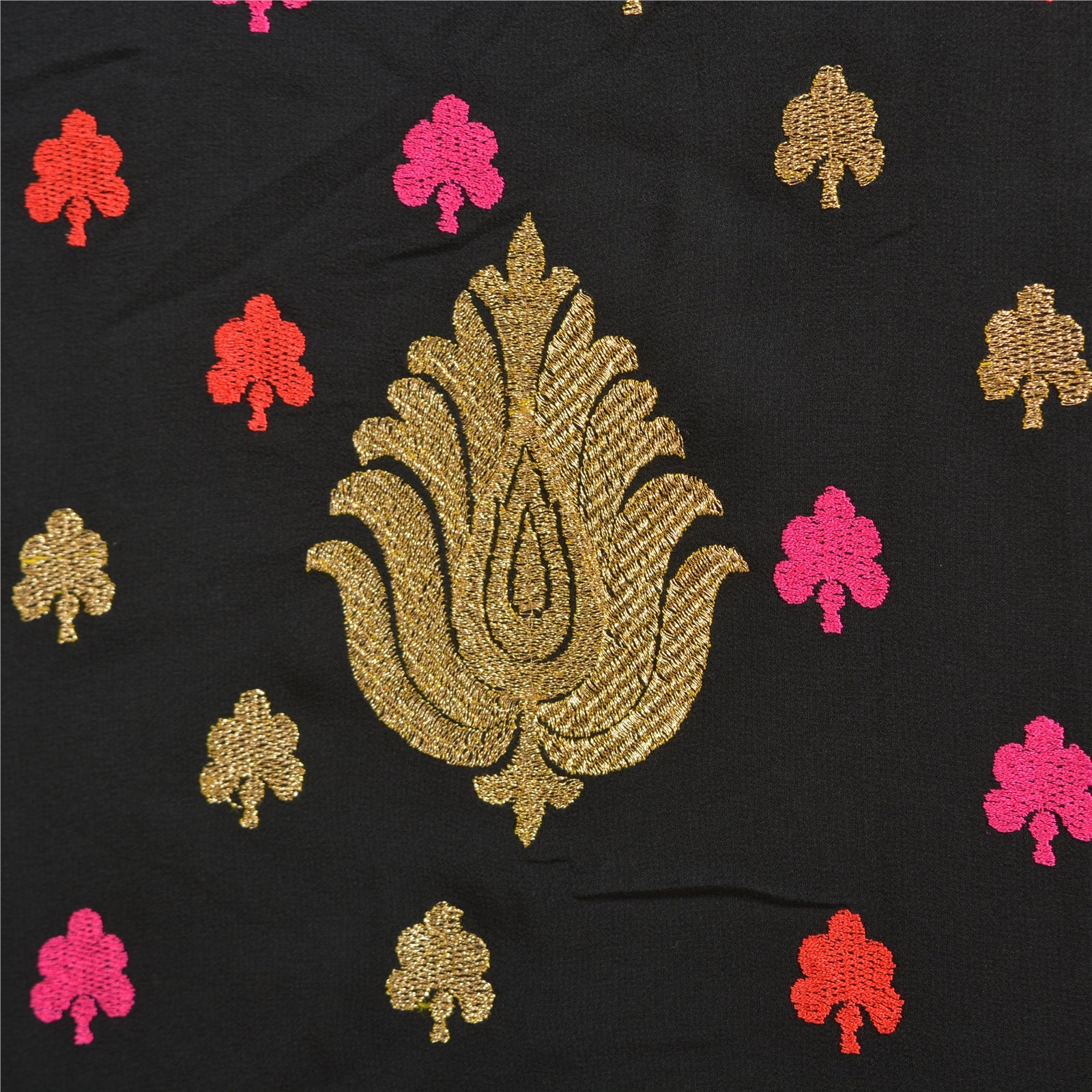 'THE ITEM COLOR OR SHADE MAY BE DARKER OR LIGHTER THAN THE PICTURE.' Beautiful black colored 100% pure georgette embroidered sari. Border has golden/pink thread work with floral design. The center of the saree has similar embroidered thread work with floral design. This saree can be used for various crafting ideas too. Use it for dress designing, as a throw, as window dressing, upholstery, table linen and much more. Let your creative juices flow. 'International buyers please note: Import duties, taxes, and charges are not included in the item price or postage cost. These charges are the buyer's responsibility. Please check with your country's customs office to determine what these additional costs will be prior to bidding or buying. Buyer will pay custom duty/tax. It is calculated and charged differently by every country. As a seller I do not have any control over it. VAT or sales tax is calculated by the platform at the time of checkout. Customs charge is payable at the time of delivery.'