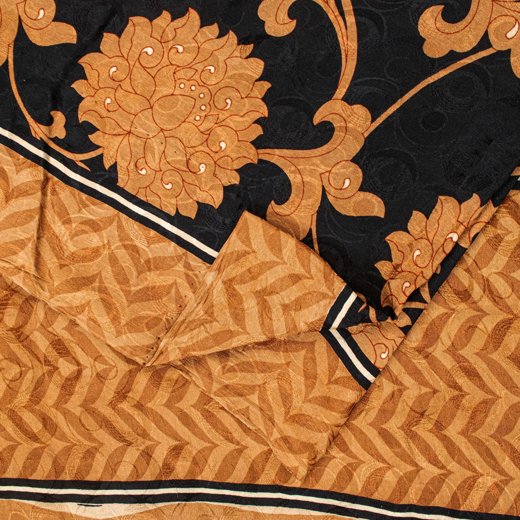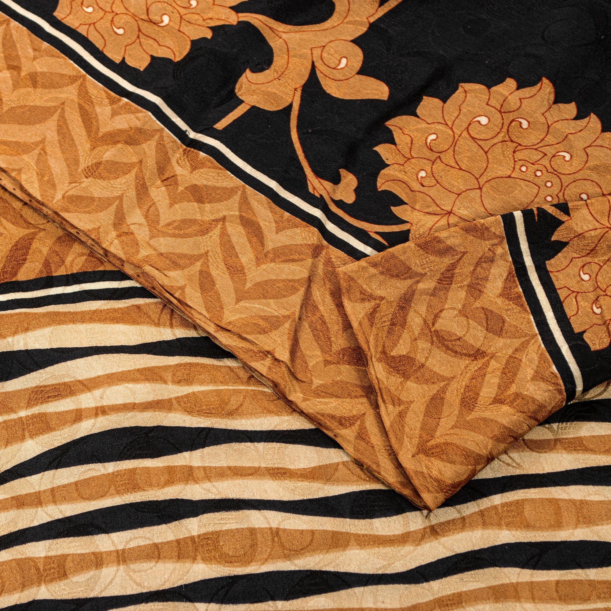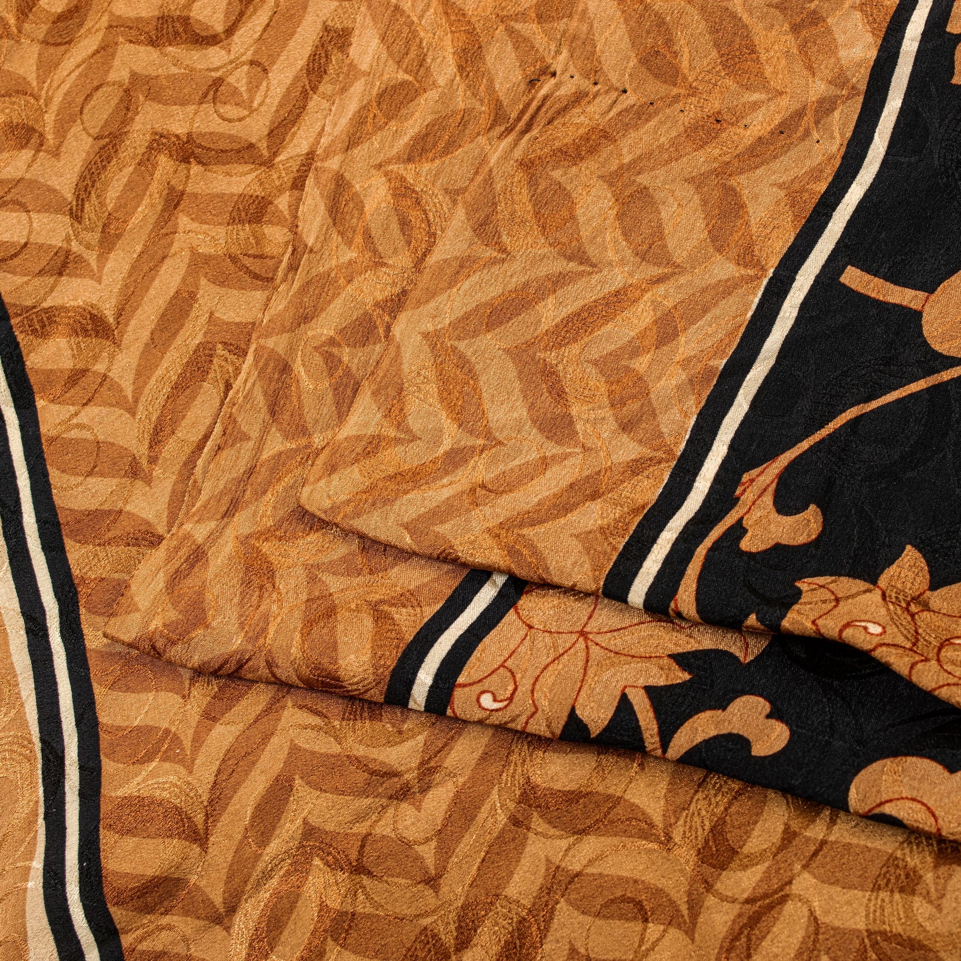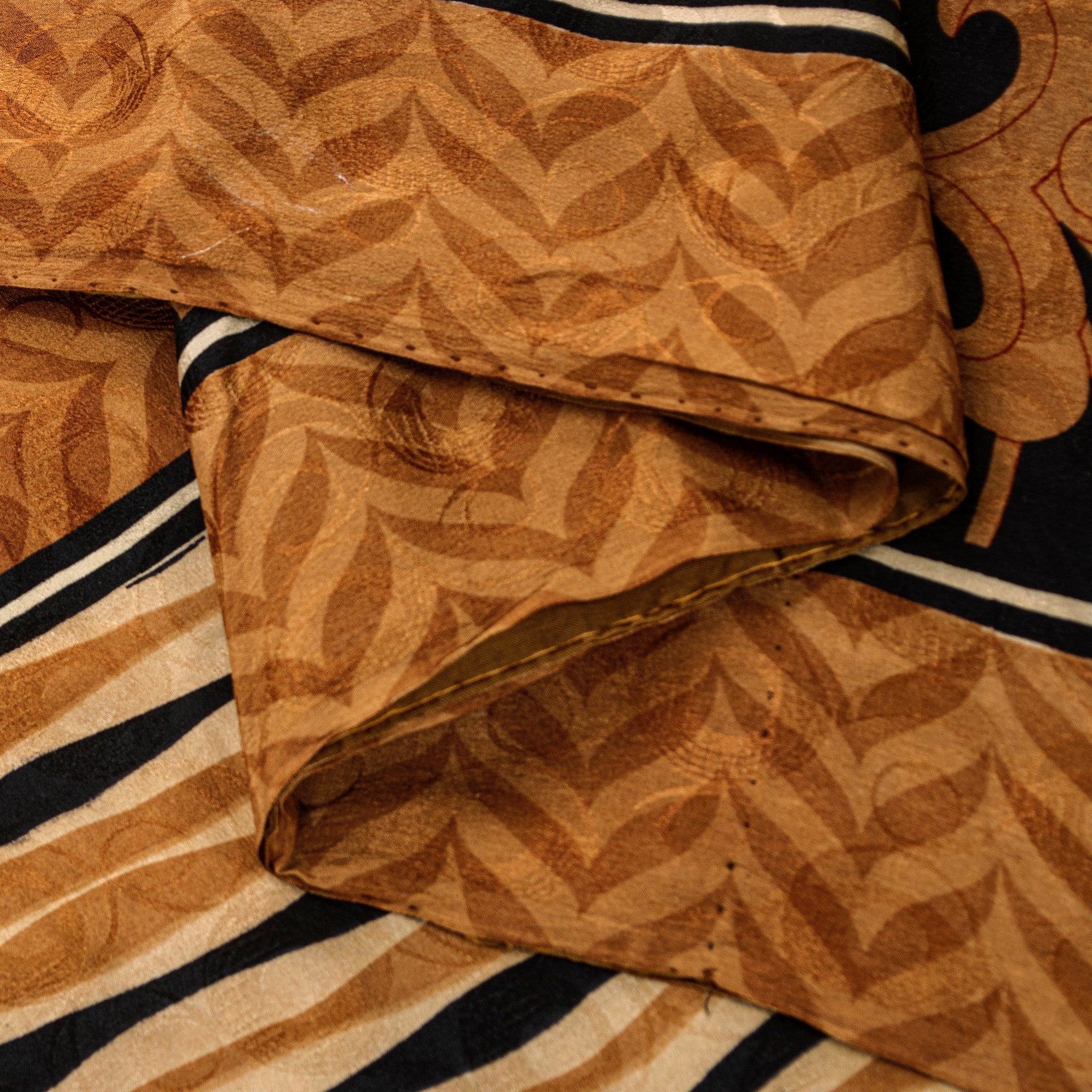 • Material: 100% Pure Crepe Silk • Color: Black & Brown • Design: Printed lines and floral pattern throughout the body and border. Geometric woven pattern allover the sari. • Length: Approximately 5.5+ yards (198-202 inches) • Transparency: Opaque • Texture: Soft and smooth • Condition: Vintage, in excellent condition • Perfect For: • Dressmaking: Create unique dresses, tunics, or blouses • Crafting: Ideal for quilting, fiber art, and bohemian projects • Home Decor: Use as a stylish throw, table linen, or window dressing • Upcycling: Transform into scarves, sarongs, or other accessories THE ITEM COLOR OR SHADE MAY BE DARKER OR LIGHTER THAN THE PICTURE.' International buyers please note: Import duties, taxes, and charges are not included in the item price or postage cost. Buyer will pay custom duty/tax,VAT, and any applicable charges at the time of delivery. PRC-24102
