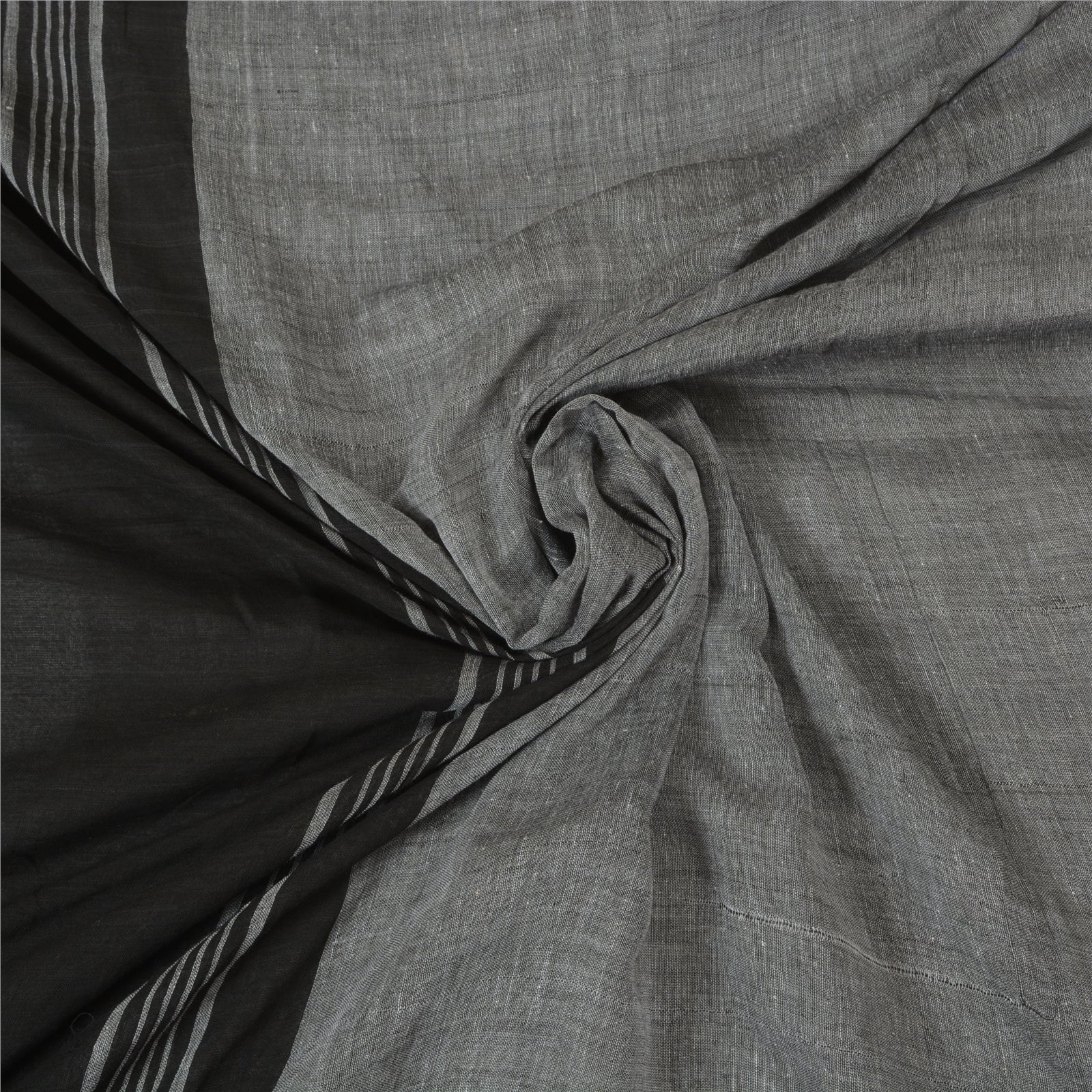 Sanskriti Vintage Black/Grey Sarees Pure Cotton Embroidered Woven Sari Sustainable Fabric