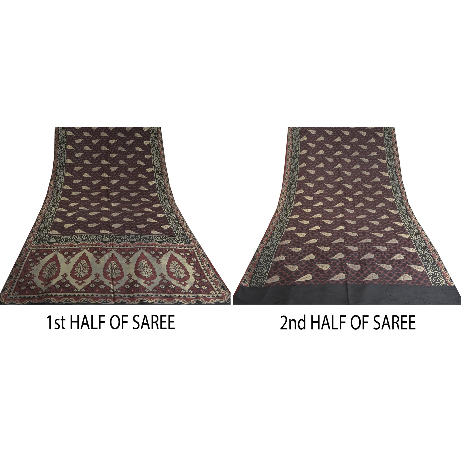 'THE ITEM COLOR OR SHADE MAY BE DARKER OR LIGHTER THAN THE PICTURE.' Outstanding black colored pure silk woven saree/Sustainable Fabric. Pallu & border sari has paisley & floral design with red woven thread work embellished with golden zari work. The center part of the sari has similar woven work with leaf design. Use it for dress designing, as a throw, as window dressing, upholstery, table linen and much more. Let your creative juices flow! 'International buyers please note: Import duties, taxes, and charges are not included in the item price or postage cost. These charges are the buyer's responsibility. Please check with your country's customs office to determine what these additional costs will be prior to bidding or buying. Buyer will pay custom duty/tax. It is calculated and charged differently by every country. As a seller I do not have any control over it. VAT or sales tax is calculated by the platform at the time of checkout. Customs charge is payable at the time of delivery.