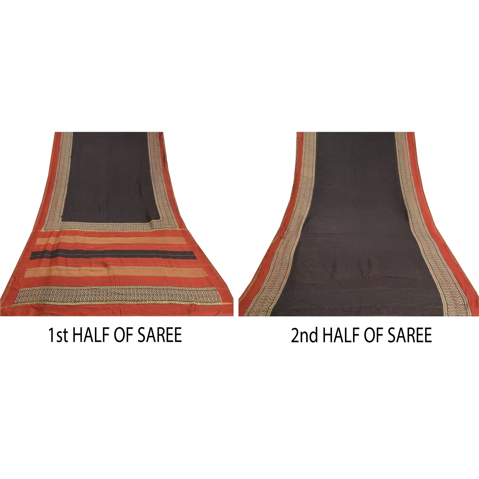 Beautiful Black & Rusty Colored 100% Pure Cotton Printed & Woven Sari. Pallu & Border features printed abstract design with woven work. You can see solid plan black color in center part of the sari. As the item is Vintage, some minor stains and defects are expected. This saree can be used for various crafting ideas too. Use it for dress designing, as a throw, as window dressing, upholstery, table linen and much more. Let your creative juices flow. For USA buyers - Single item ships via registered air mail, buy 1 more to get FedEx.