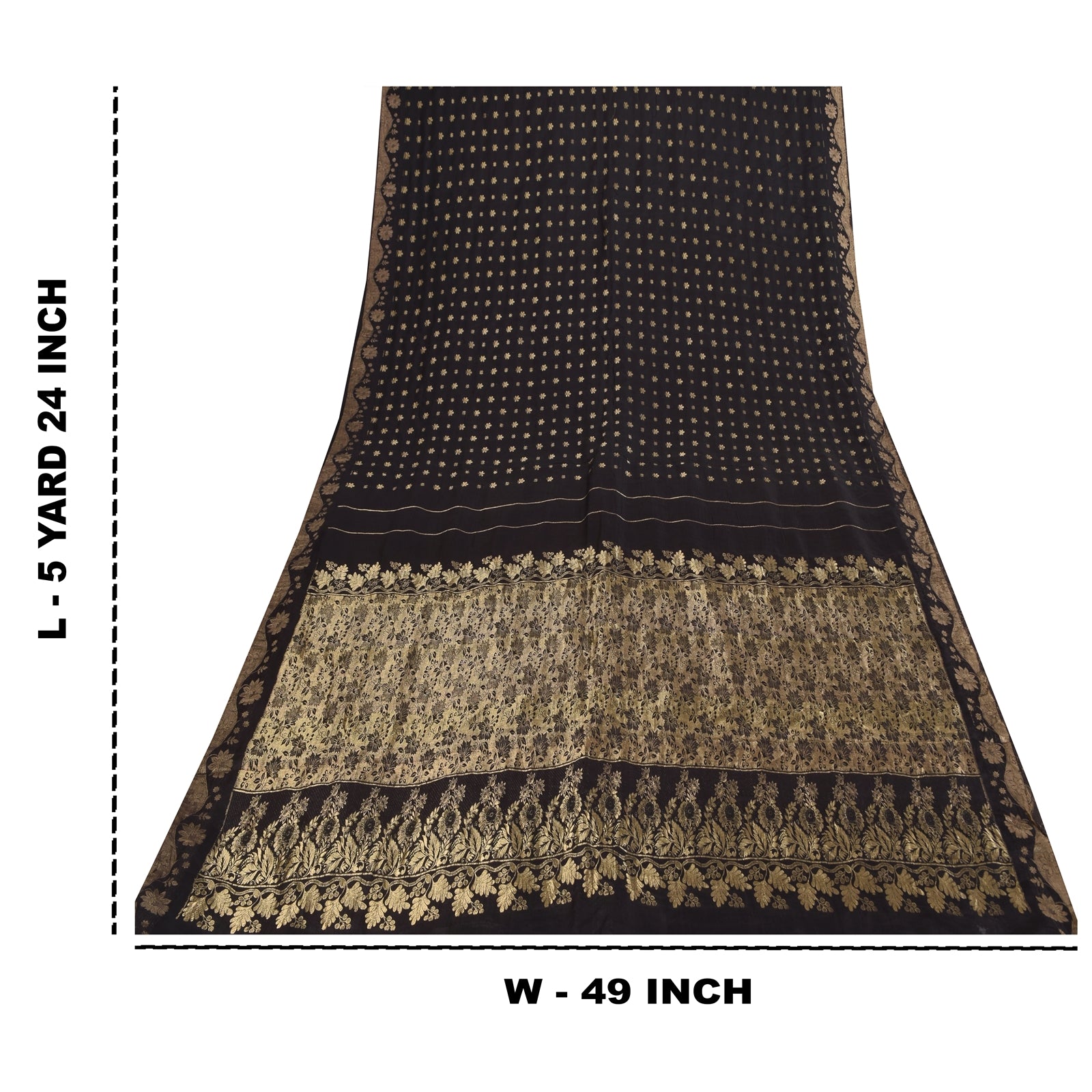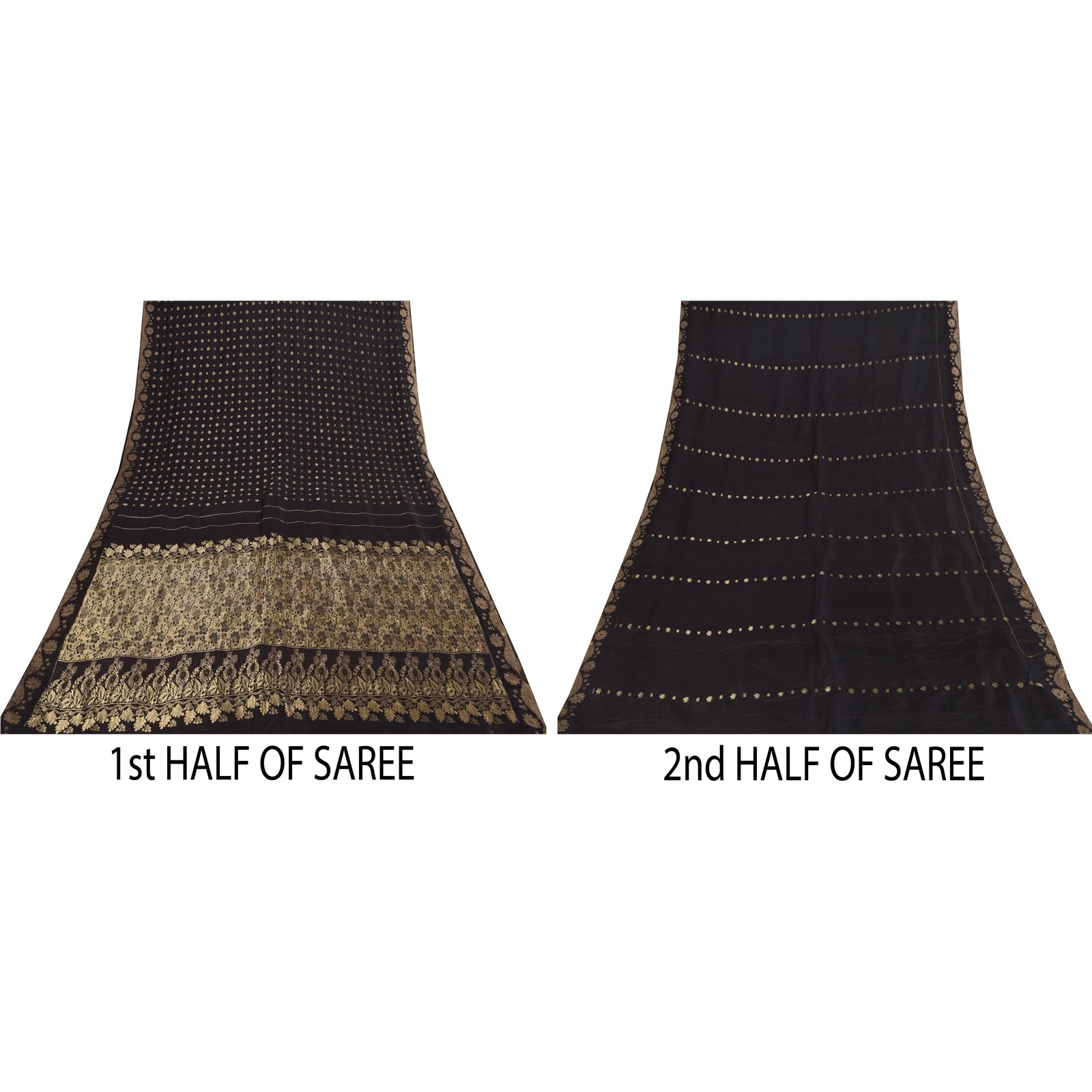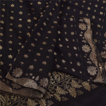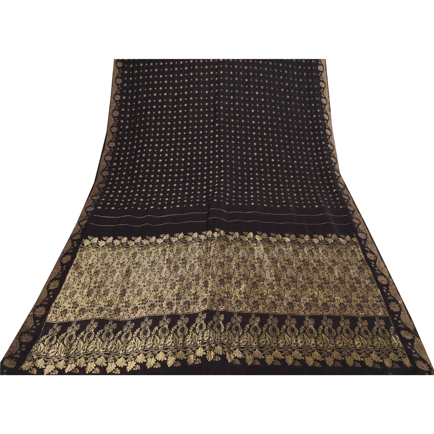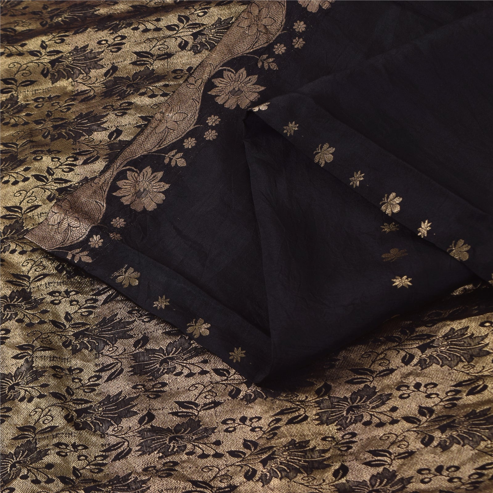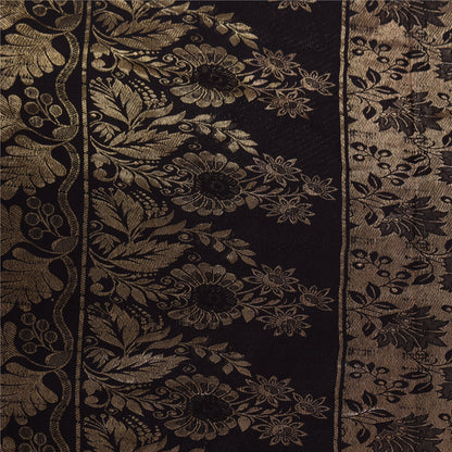 Sanskriti Vintage Black Sarees Pure Silk Brocade/Banarasi Woven Sari 5+yd Sustainable Fabric