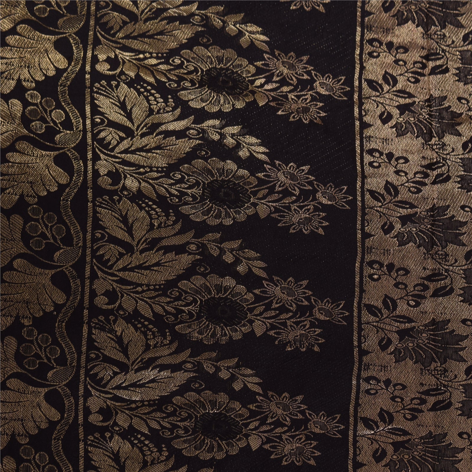 THE ITEM COLOR OR SHADE MAY BE DARKER OR LIGHTER THAN THE PICTURE.' An Awesome Sari In 100% Pure Silk Black Colored Brocade Banarasi Zari Woven Sari/Sustainable Fabric. Pallu & Border Features floral design embellished with metallic golden zari work. You Can See Center Portion Of The Sari Has Similar Work With Floral Design This unique vintage saree can be used for various crafting ideas for example design a dress, use it as a throw, as window dressing, upholstery, table linen and much more. Let your creative juices flow and use this decorated Sustainable Fabric in multiple fashion Shipping note: International buyers please note: Import duties, taxes, and charges are not included in the item price or postage cost. These charges are the buyer's responsibility. Please check with your country's customs office to determine what these additional costs will be prior to bidding or buying. Buyer will pay custom duty/tax. It is calculated and charged differently by every country. As a seller I do not have any control over it. VAT or sales tax is calculated by the platform at the time of checkout. Customs charge is payable at the time of delivery. SKU: BHS-2785