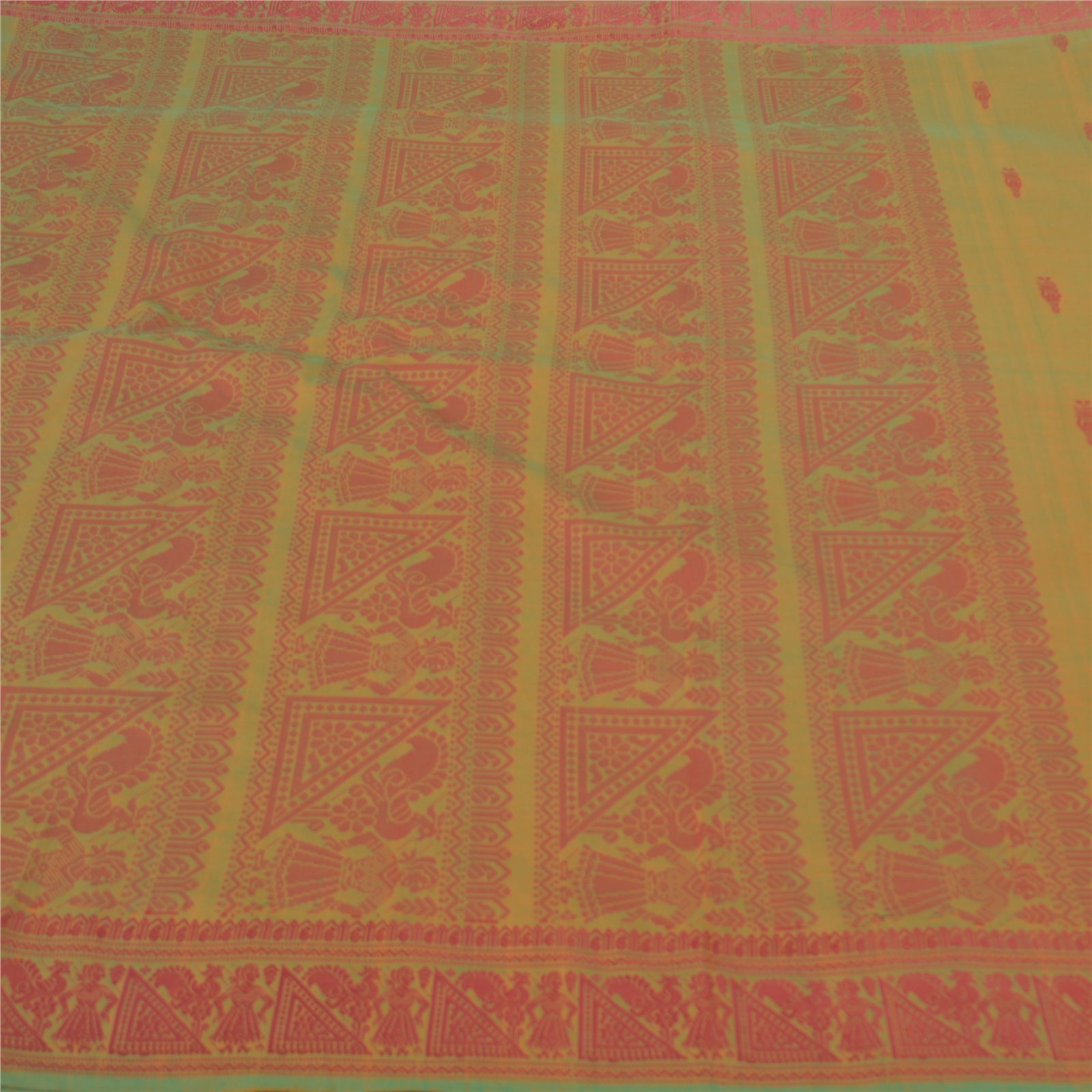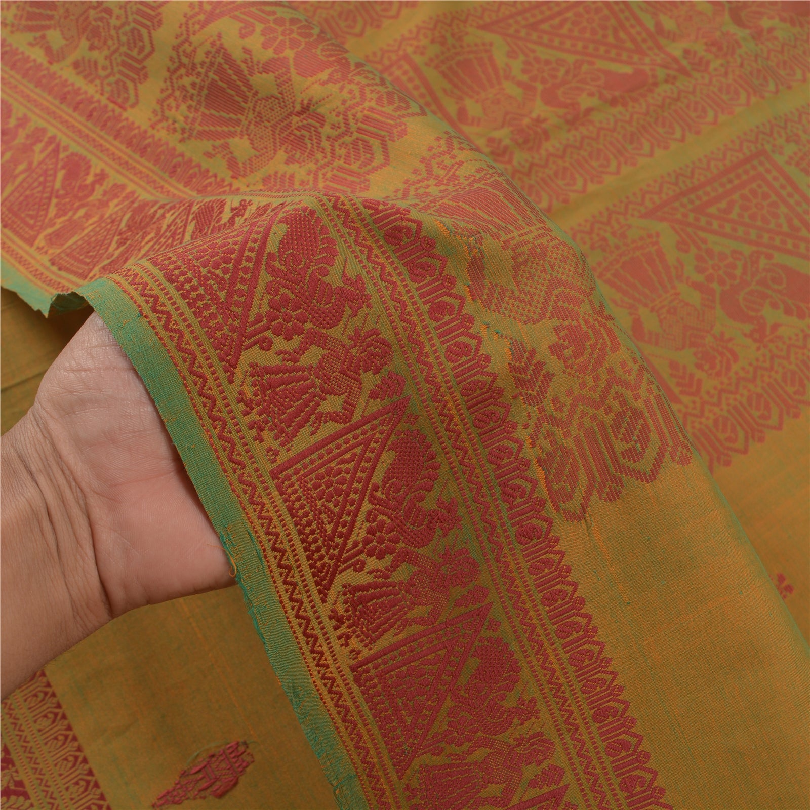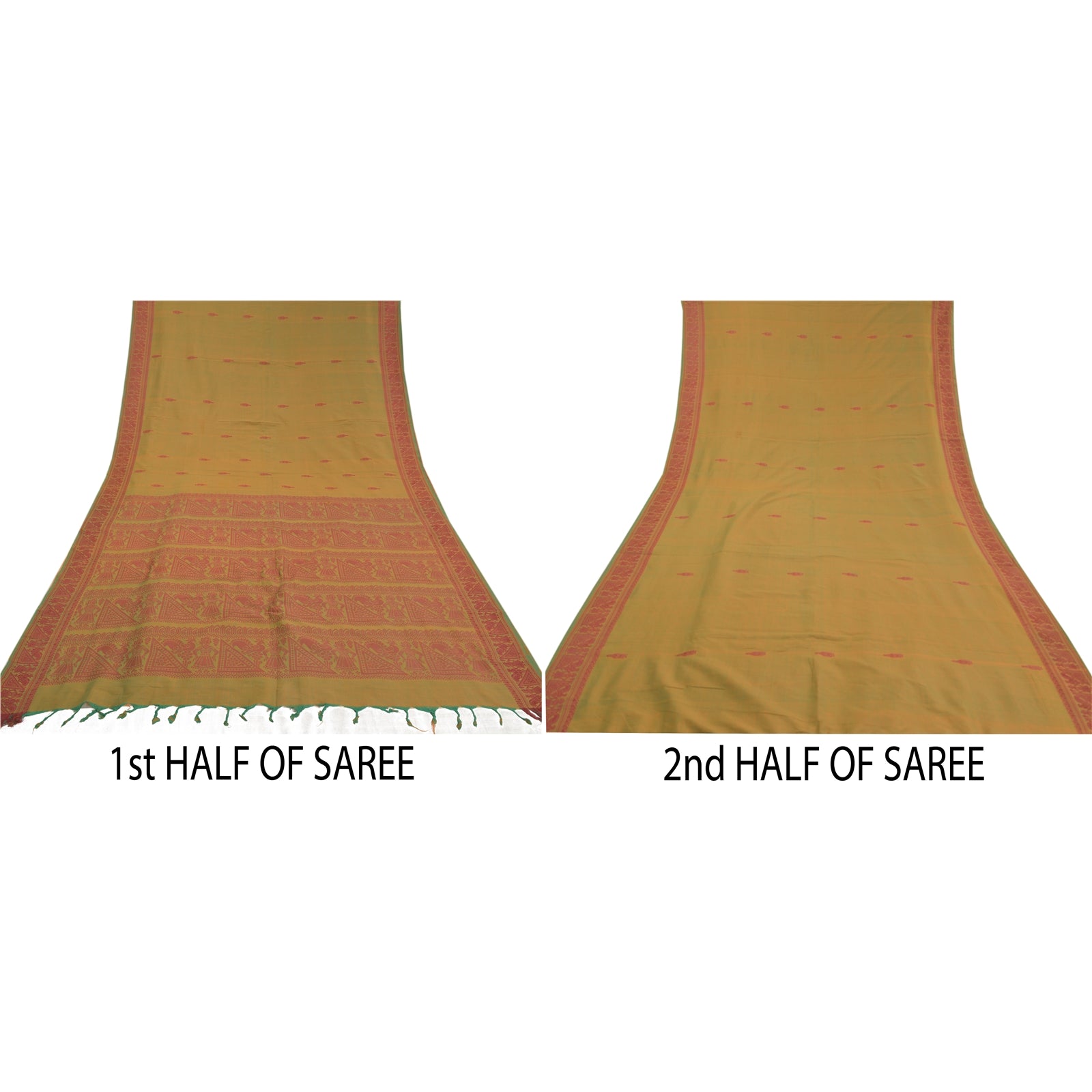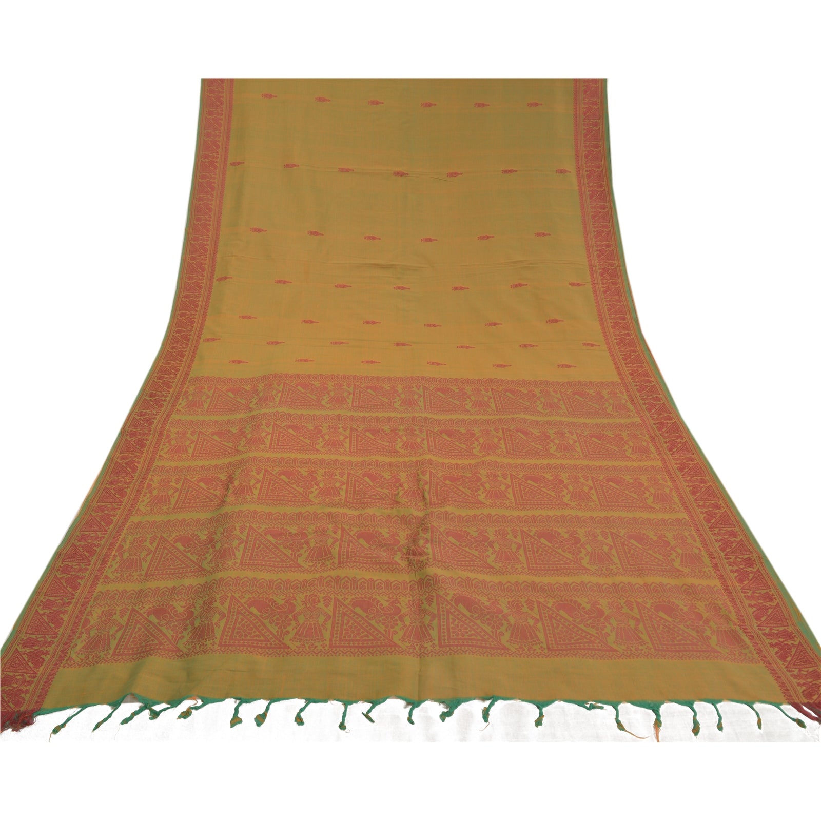 Sanskriti Vintage Blend Cotton Woven Baluchari Sarees Green Premium Sari Sustainable Fabric