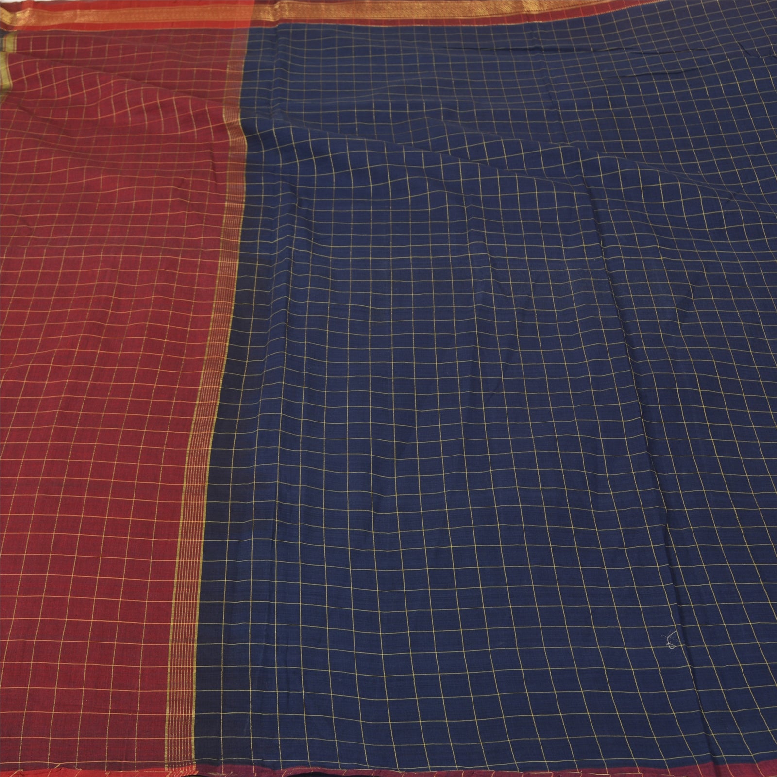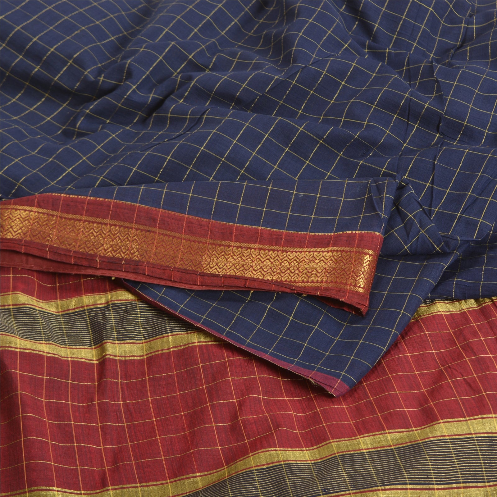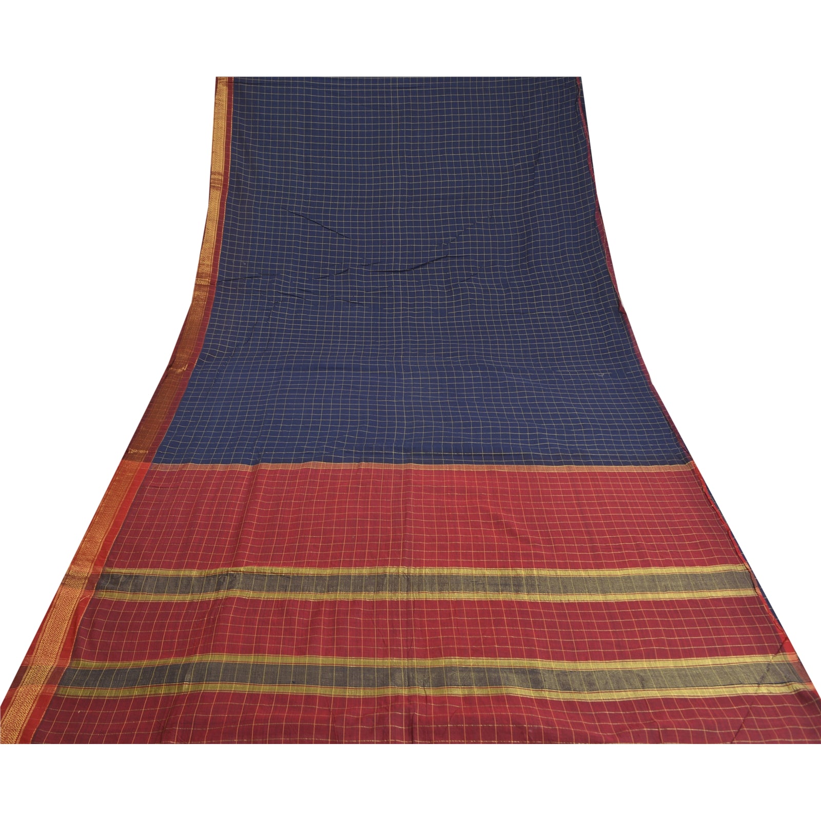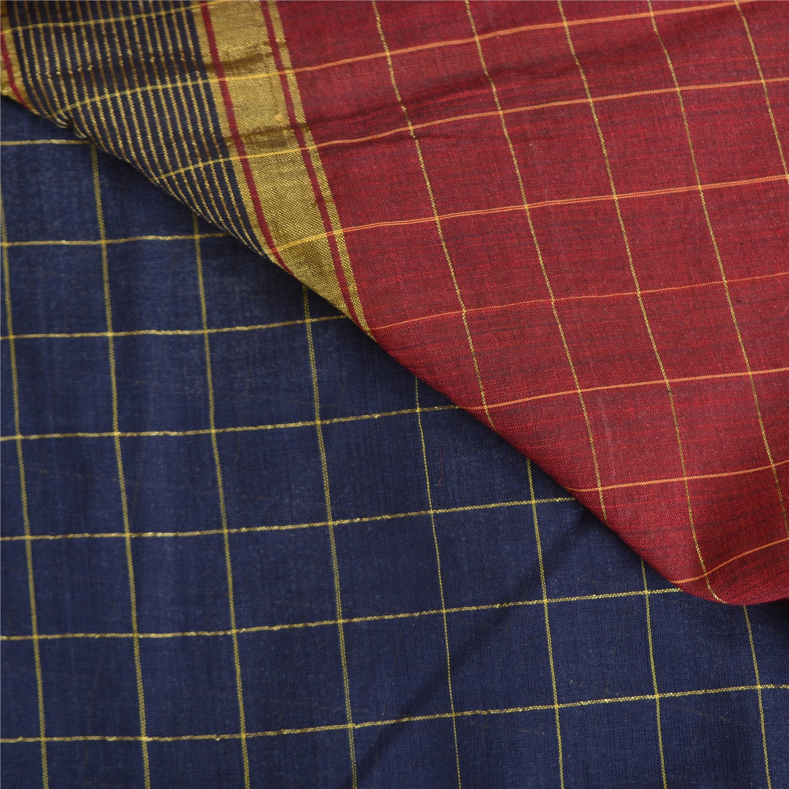'THE ITEM COLOR OR SHADE MAY BE DARKER OR LIGHTER THAN THE PICTURE.' Beautiful blue & dark red colored blend silk woven sari/Sustainable Fabric. Pallu has woven thread work with grid design . Also you can see golden zari floral design on borders. The center of the saree has woven grid design. This saree can be used for various crafting ideas too. Use it for dress designing, as a throw, as window dressing, upholstery, table linen and much more. Let your creative juices flow. 'International buyers please note: Import duties, taxes, and charges are not included in the item price or postage cost. These charges are the buyer's responsibility. Please check with your country's customs office to determine what these additional costs will be prior to bidding or buying. Buyer will pay custom duty/tax. It is calculated and charged differently by every country. As a seller I do not have any control over it. VAT or sales tax is calculated by the platform at the time of checkout. Customs charge is payable at the time of delivery.'