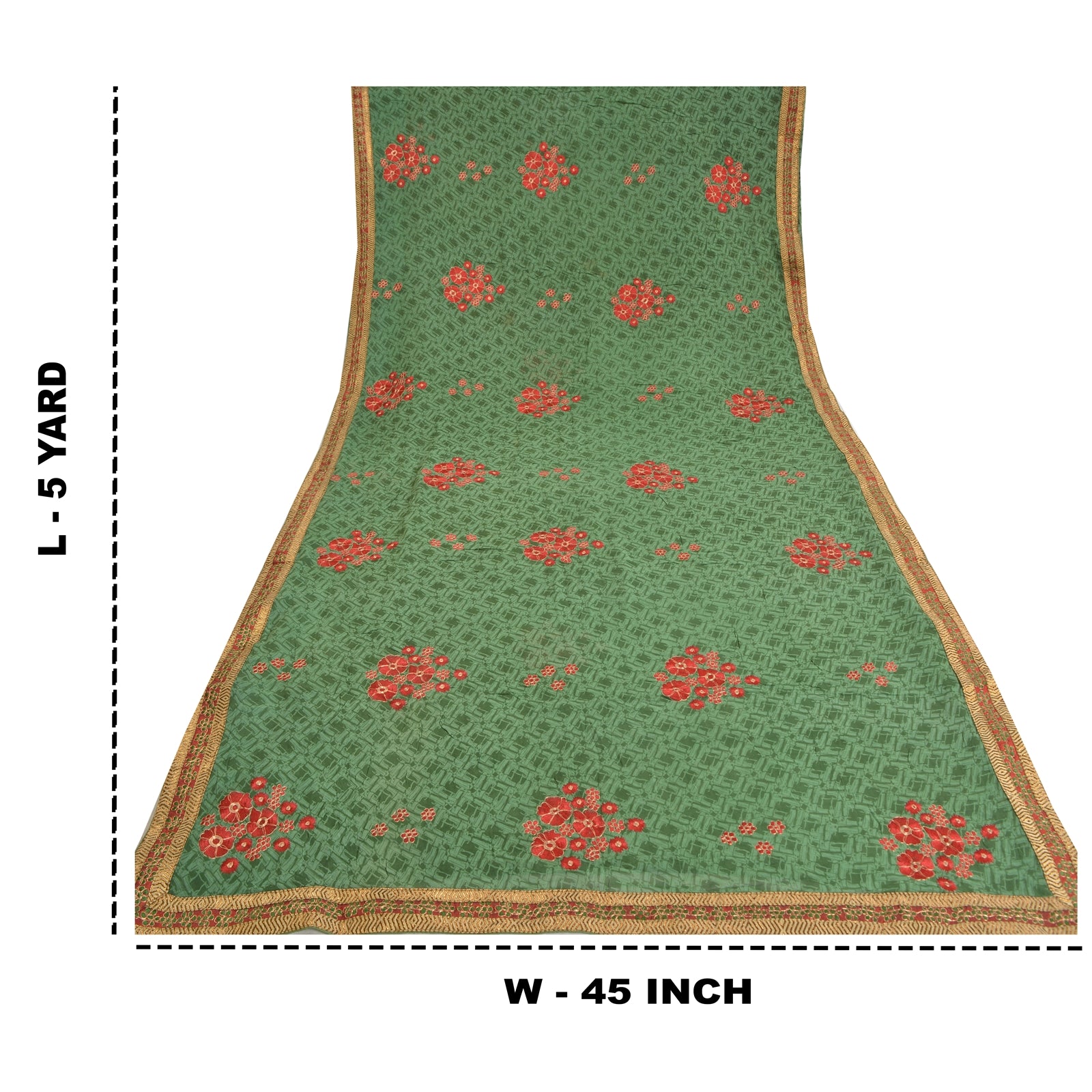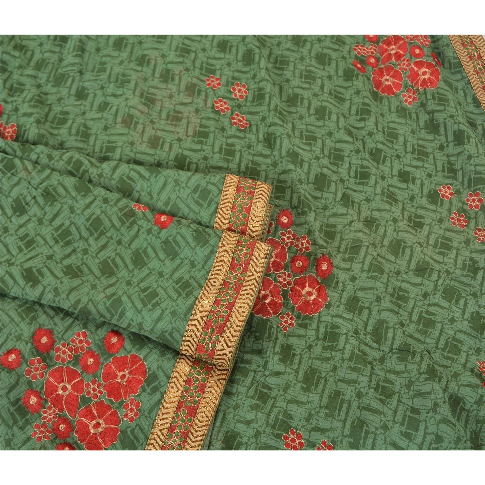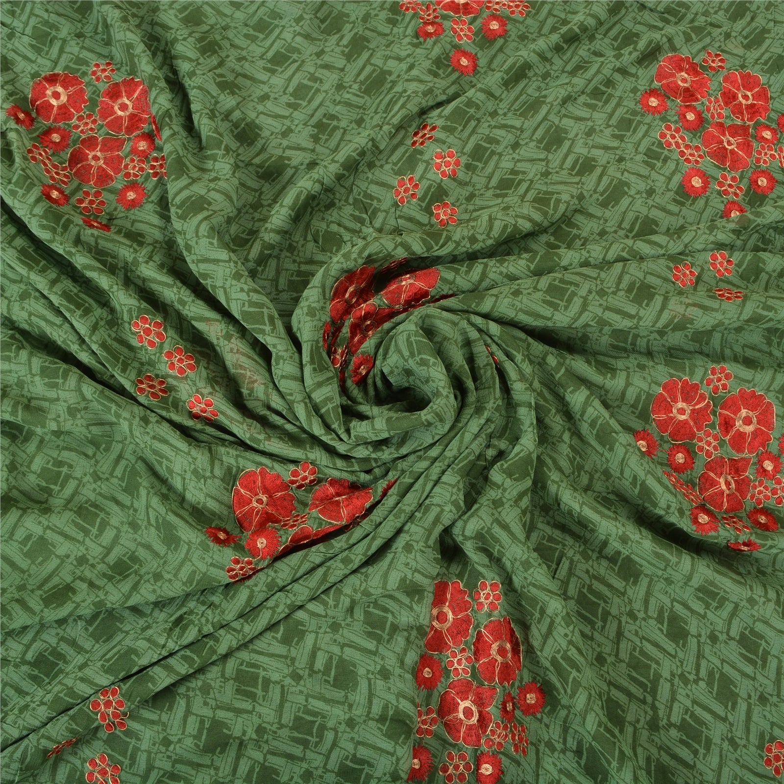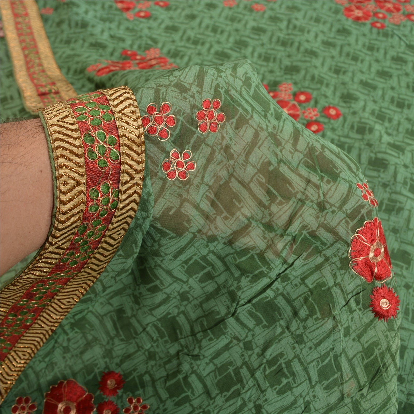 'THE ITEM COLOR OR SHADE MAY BE DARKER OR LIGHTER THAN THE PICTURE.' Beautiful green colored pure georgette silk embroidered sari. All over sari printed floral & abstract pattern with thread work. Also you can see golden/red embroidered Sustainable Fabric patch work on borders. This saree can be used for various crafting ideas too. Use it for dress designing, as a throw, as window dressing, upholstery, table linen and much more. Let your creative juices flow. 'International buyers please note: Import duties, taxes, and charges are not included in the item price or postage cost. These charges are the buyer's responsibility. Please check with your country's customs office to determine what these additional costs will be prior to bidding or buying. Buyer will pay custom duty/tax. It is calculated and charged differently by every country. As a seller I do not have any control over it. VAT or sales tax is calculated by the platform at the time of checkout. Customs charge is payable at the time of delivery.'