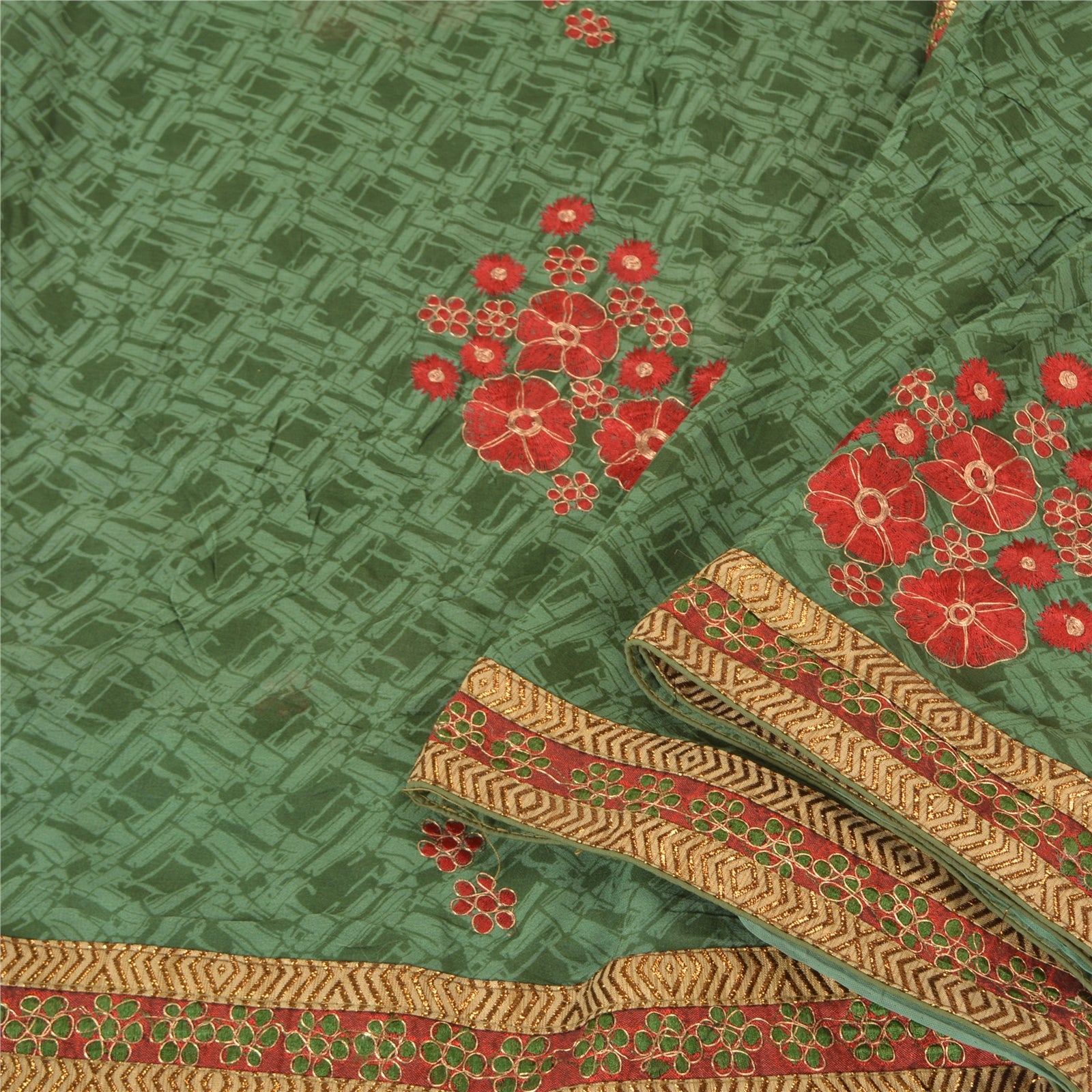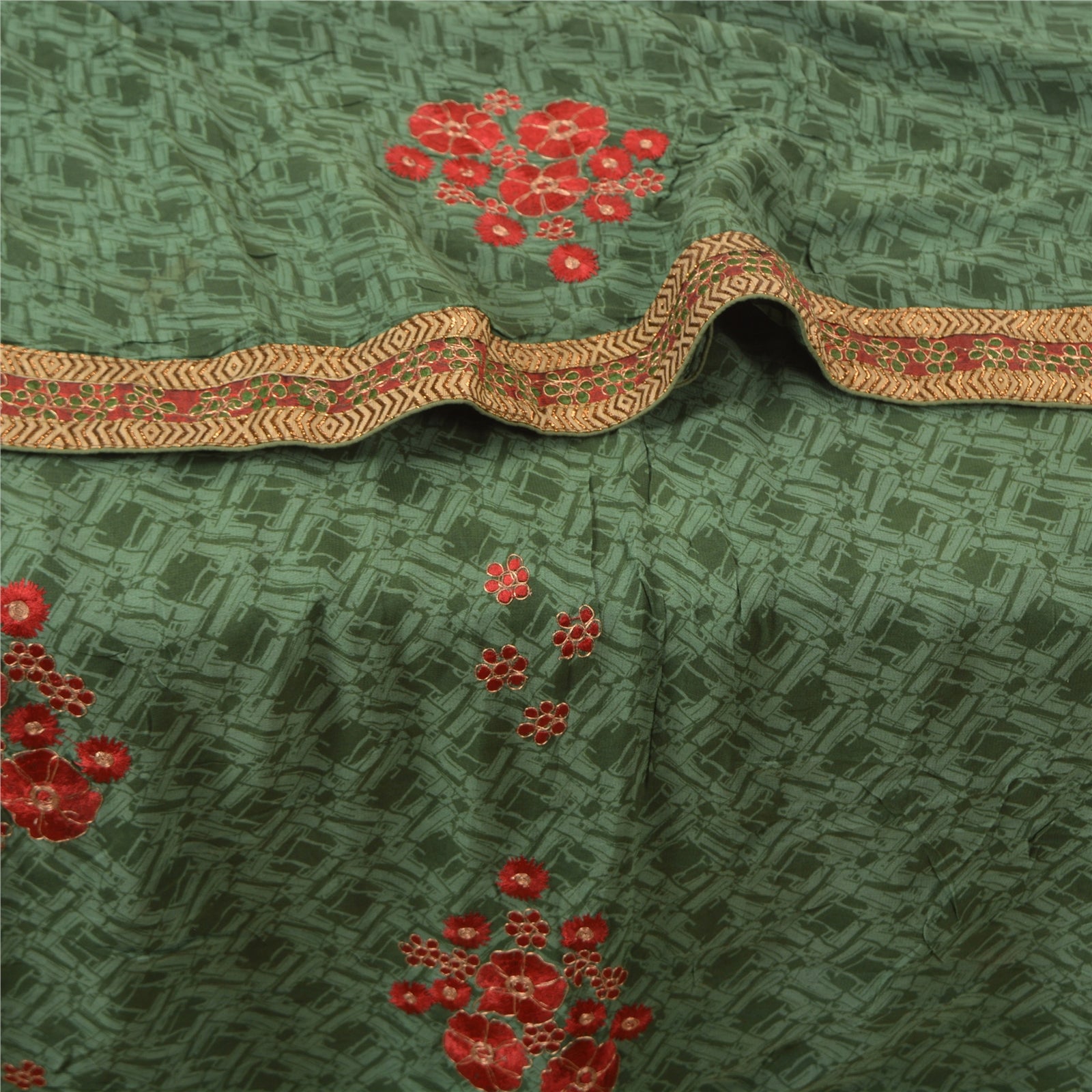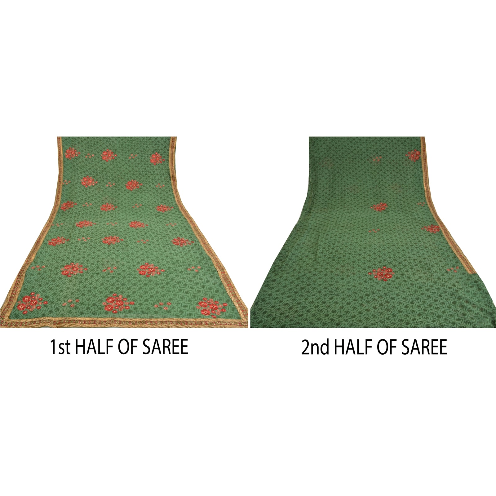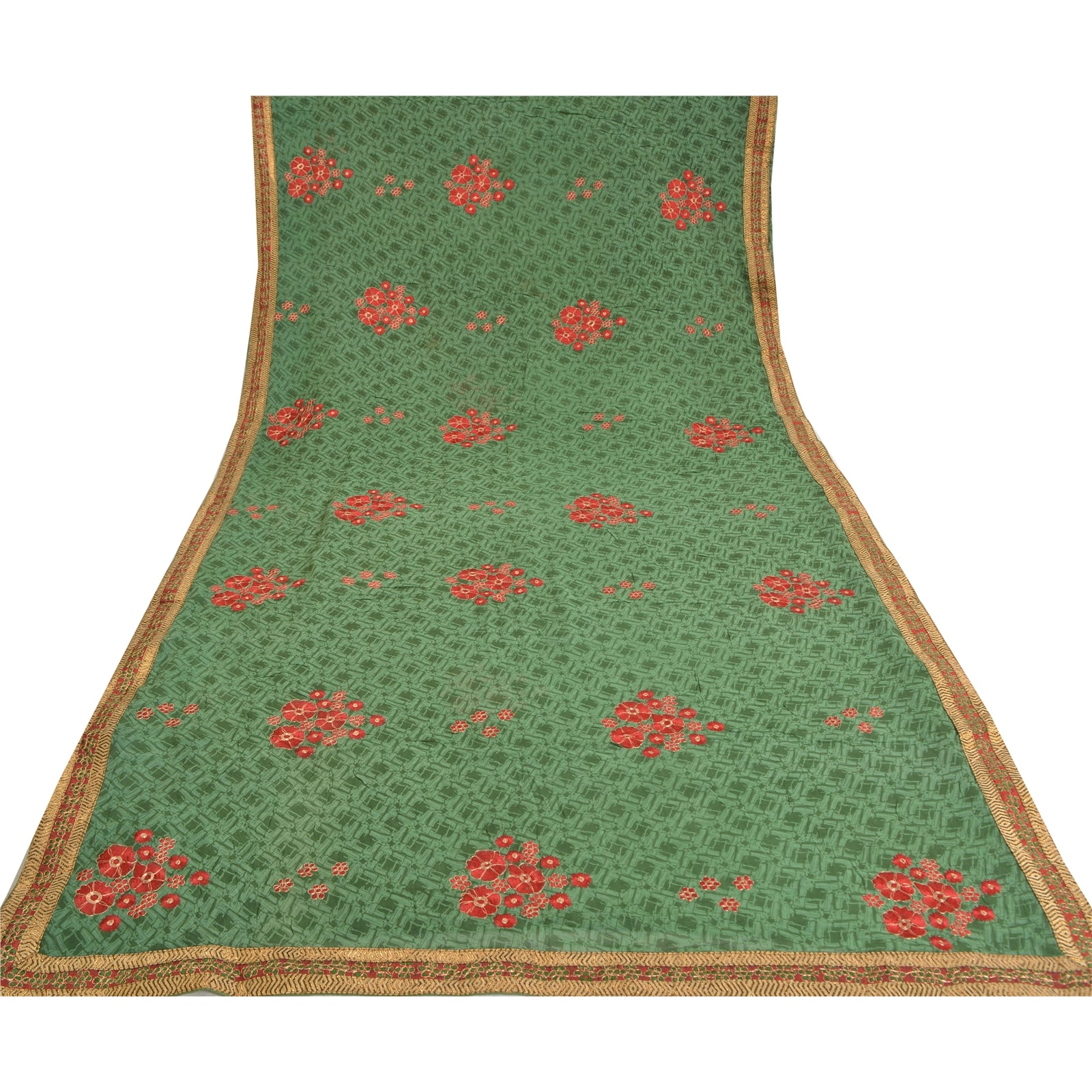 'THE ITEM COLOR OR SHADE MAY BE DARKER OR LIGHTER THAN THE PICTURE.' Beautiful green colored pure georgette silk embroidered sari. All over sari printed floral & abstract pattern with thread work. Also you can see golden/red embroidered Sustainable Fabric patch work on borders. This saree can be used for various crafting ideas too. Use it for dress designing, as a throw, as window dressing, upholstery, table linen and much more. Let your creative juices flow. 'International buyers please note: Import duties, taxes, and charges are not included in the item price or postage cost. These charges are the buyer's responsibility. Please check with your country's customs office to determine what these additional costs will be prior to bidding or buying. Buyer will pay custom duty/tax. It is calculated and charged differently by every country. As a seller I do not have any control over it. VAT or sales tax is calculated by the platform at the time of checkout. Customs charge is payable at the time of delivery.'
