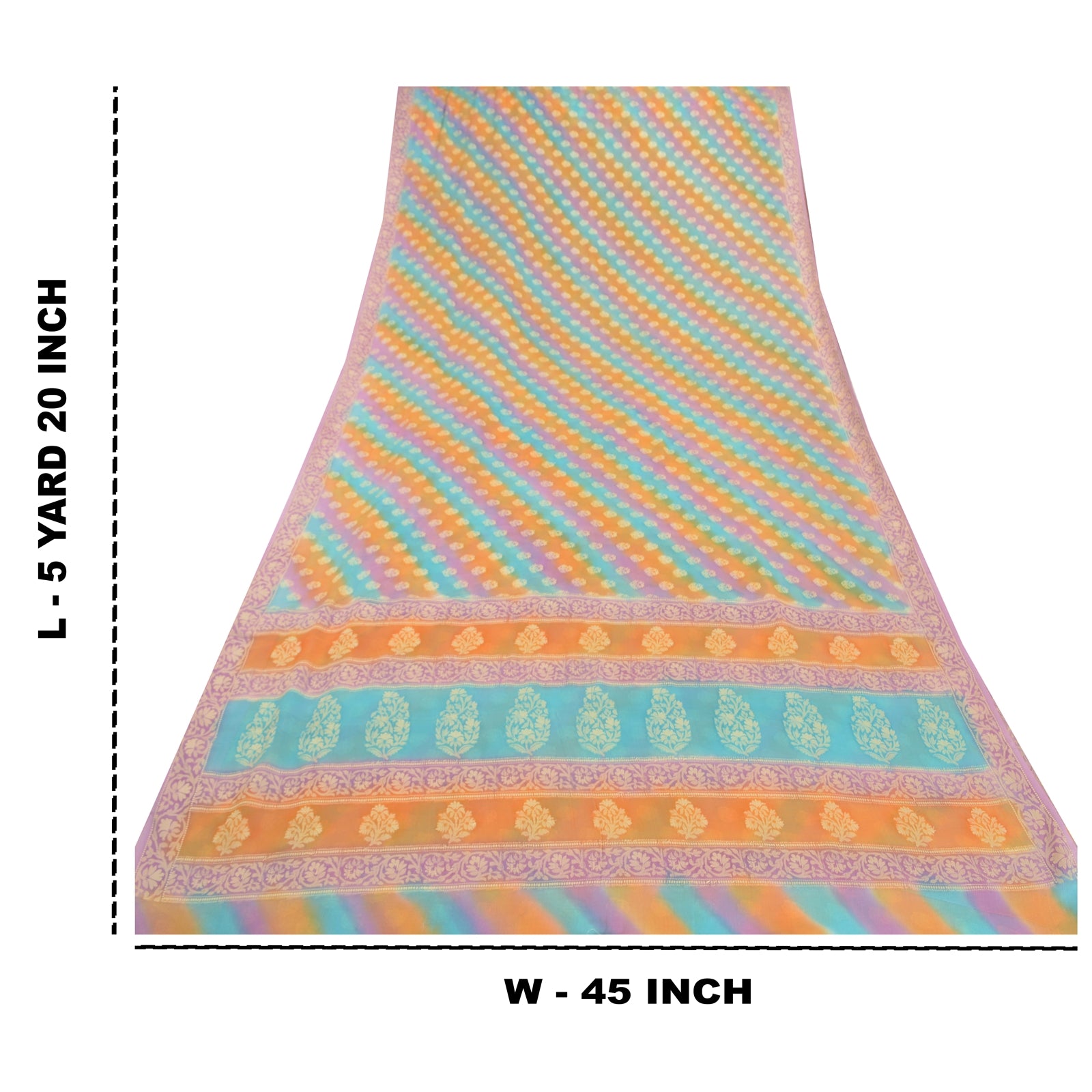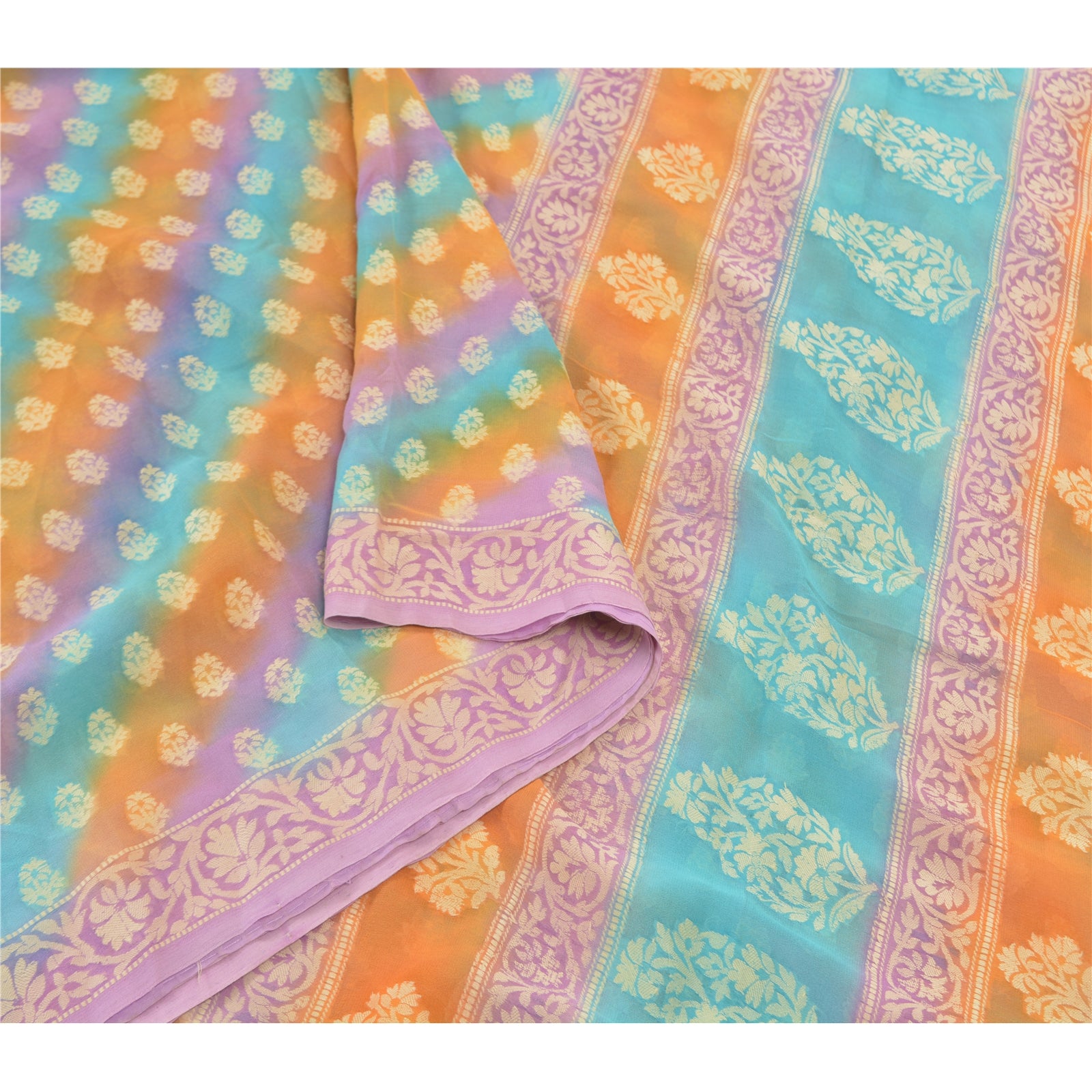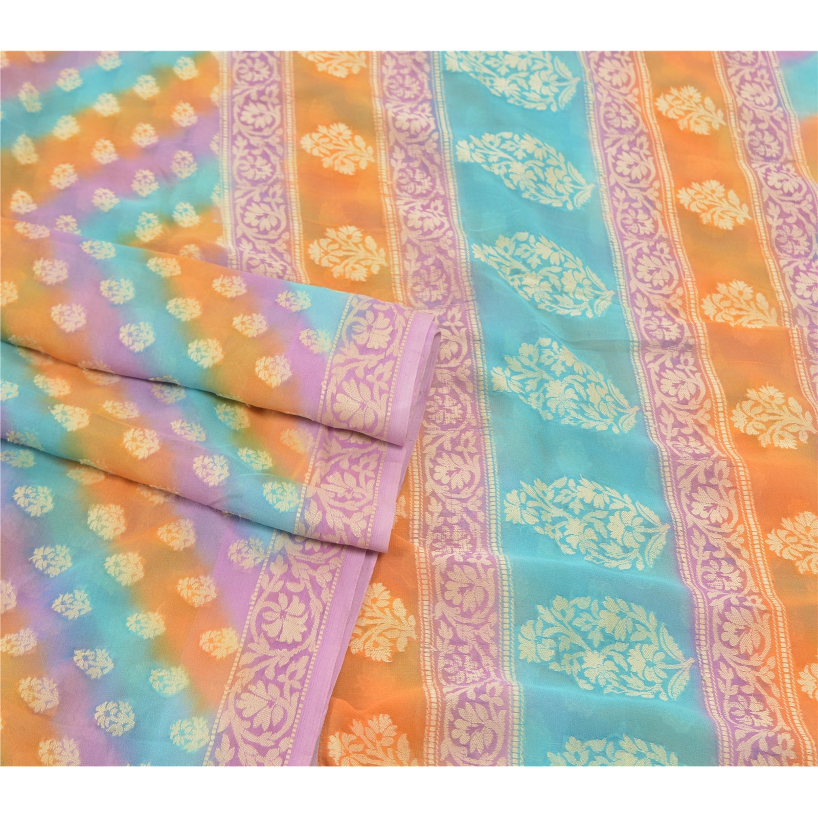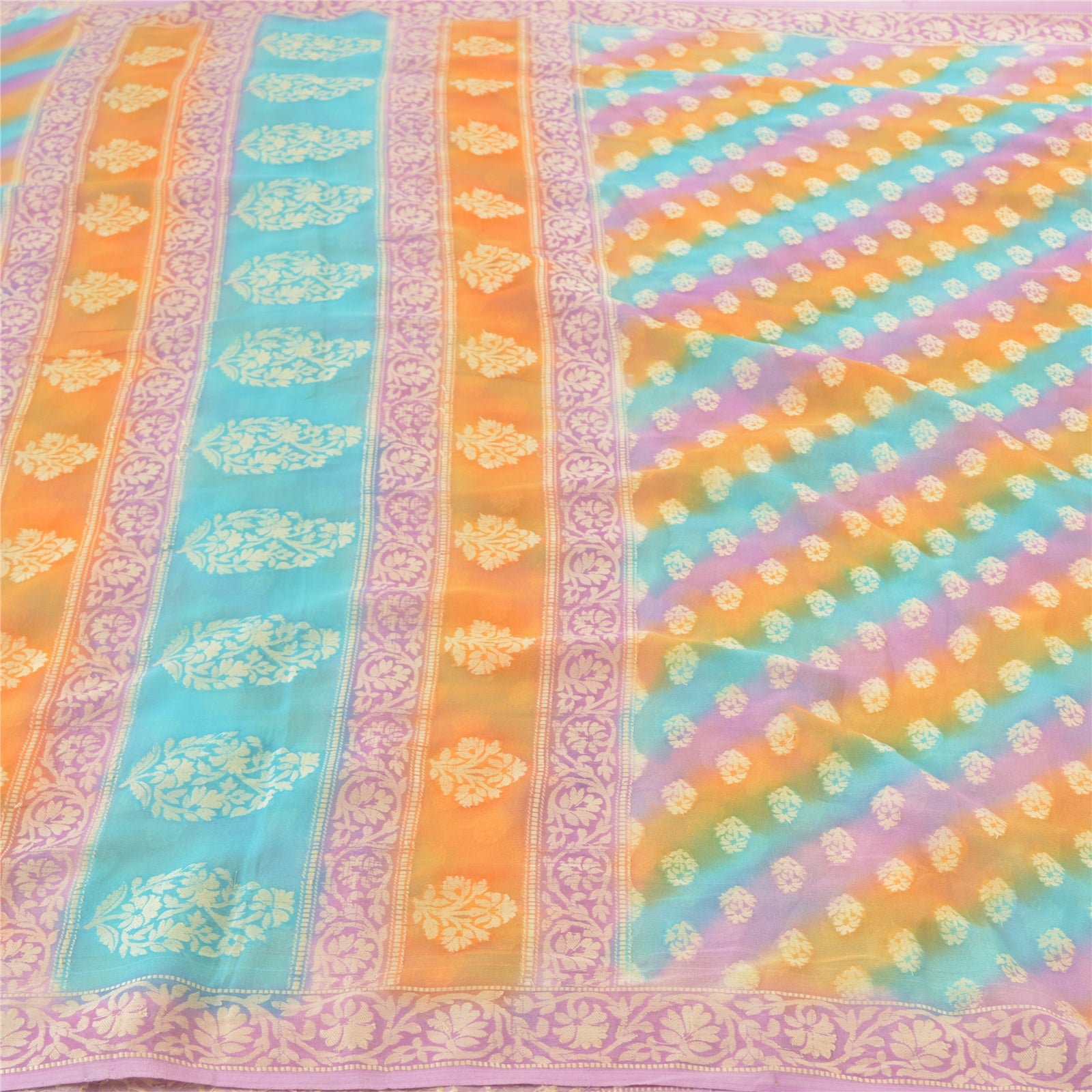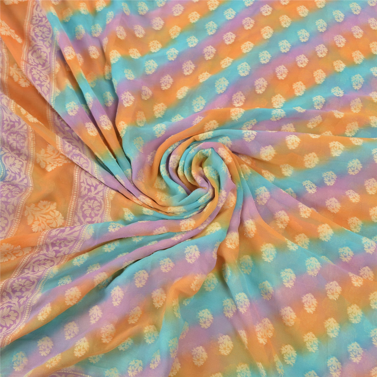 Beautiful Multi Color Colored 100% Pure Georgette Silk Hand-Woven Sari. Pallu & Border features is hand-woven cream thread work with floral design. Center part of the sari has similar woven floral design. This saree can be used for various crafting ideas too. Use it for dress designing, as a throw, as window dressing, upholstery, table linen and much more. Let your creative juices flow. For USA buyers - Single item ships via registered air mail, buy 1 more to get FedEx.