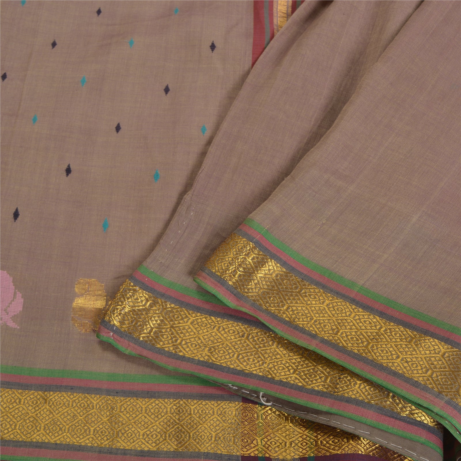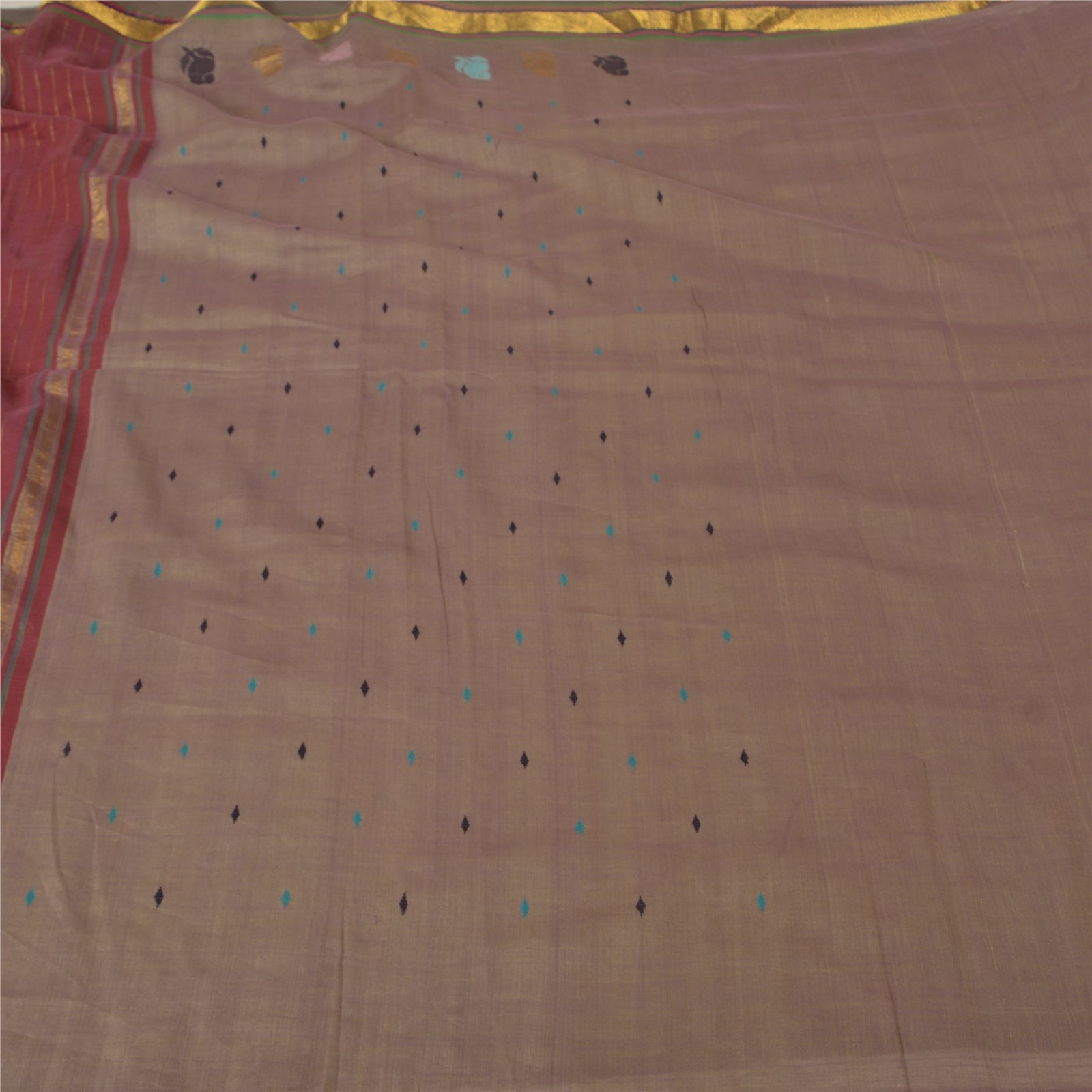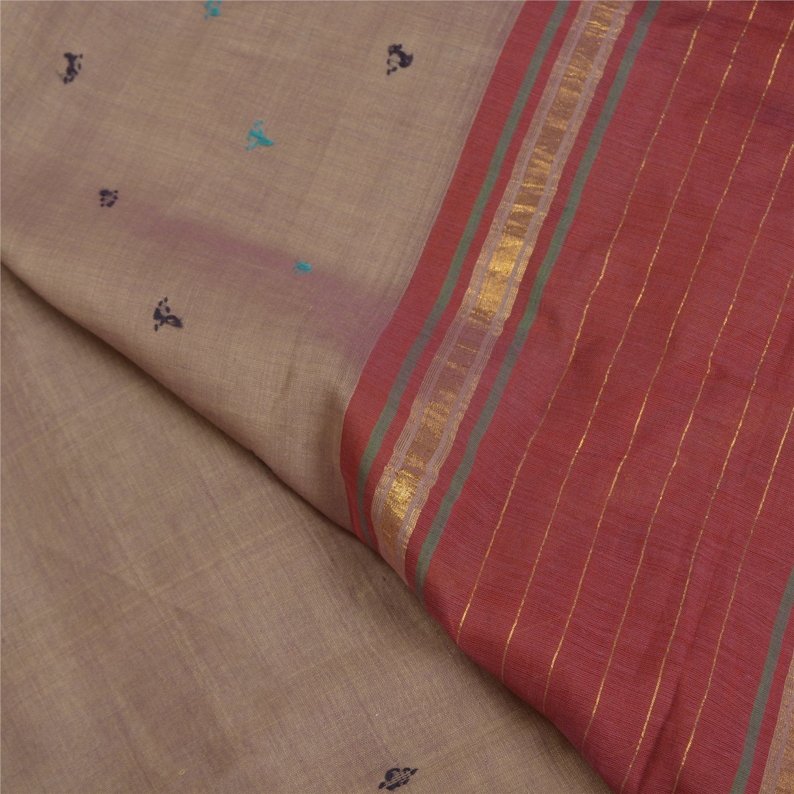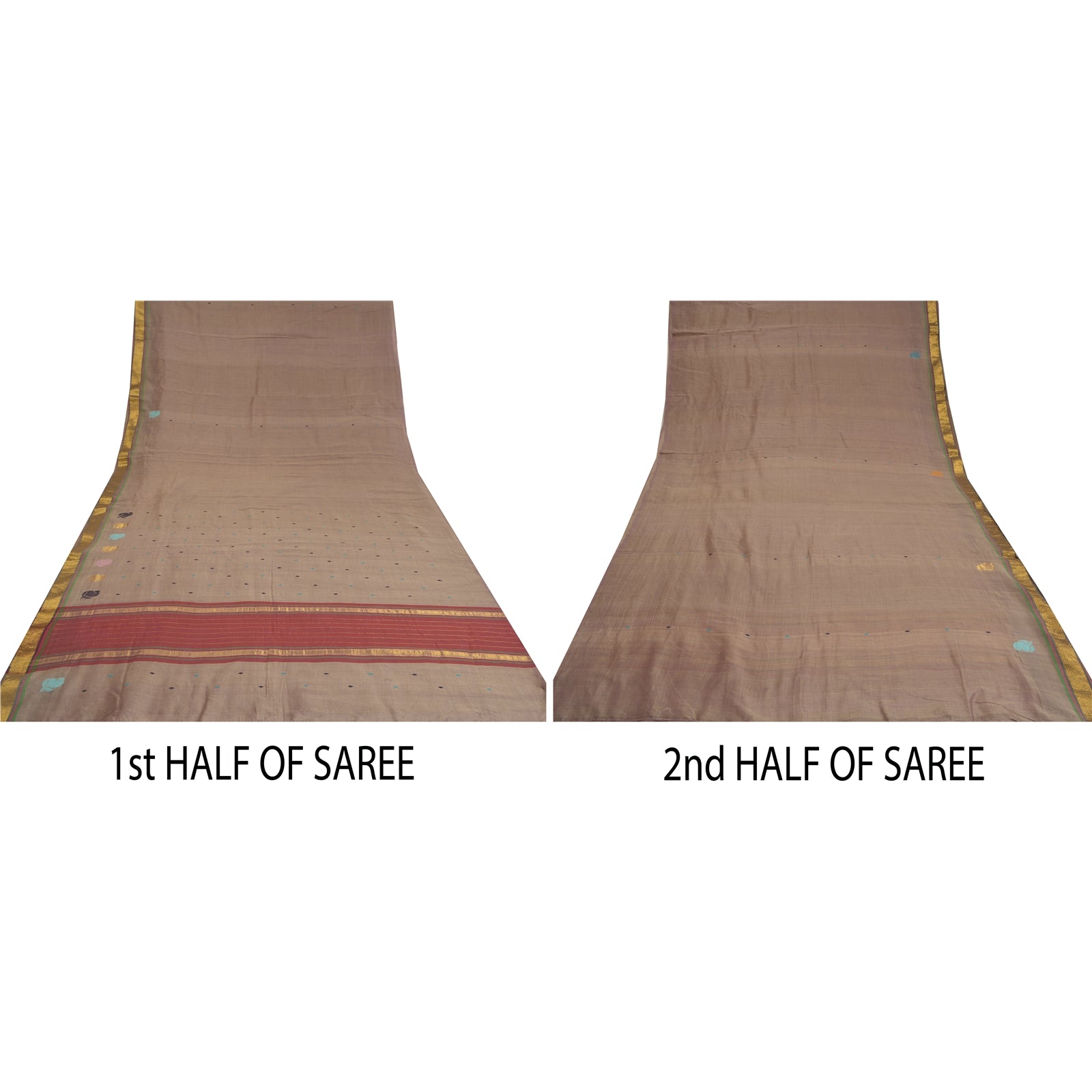Sanskriti Vintage Brown Indian Sarees 100% Pure Cotton Woven Zari Sari Sustainable Fabric