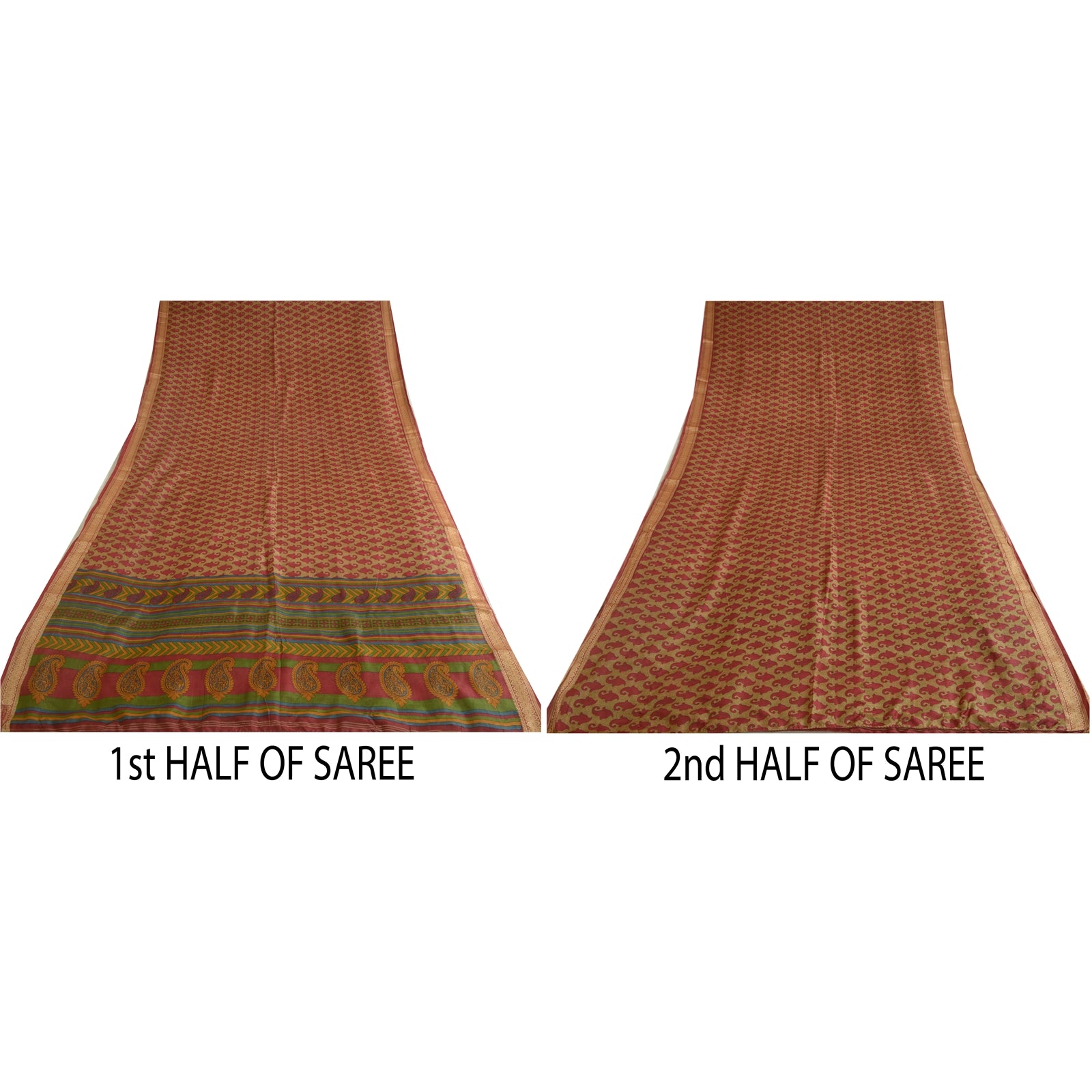 THE ITEM COLOR OR SHADE MAY BE DARKER OR LIGHTER THAN THE PICTURE.' Beautiful Shade of Brown Colored 100% Pure Silk Printed Sari/Sustainable Fabric. Pallu has printed floral & paisley design. Border has woven floral design. The center part of the sari has similar printed paisley pattern. This unique vintage saree can be used for various crafting ideas even if you don't want to use it as a sari. Design a dress, use it as a as window dressing, upholstery, sarongs, throw, dress making and table linen much more. Let your creative juices flow and use this decorated Sustainable Fabric in multiple fashion. International buyers please note: Import duties, taxes, and charges are not included in the item price or postage cost. These charges are the buyer's responsibility. Please check with your country's customs office to determine what these additional costs will be prior to bidding or buying. Buyer will pay custom duty/tax. It is calculated and charged differently by every country. As a seller I do not have any control over it.VAT or sales tax is calculated by the platform at the time of checkout. Customs charge is payable at the time of delivery.
