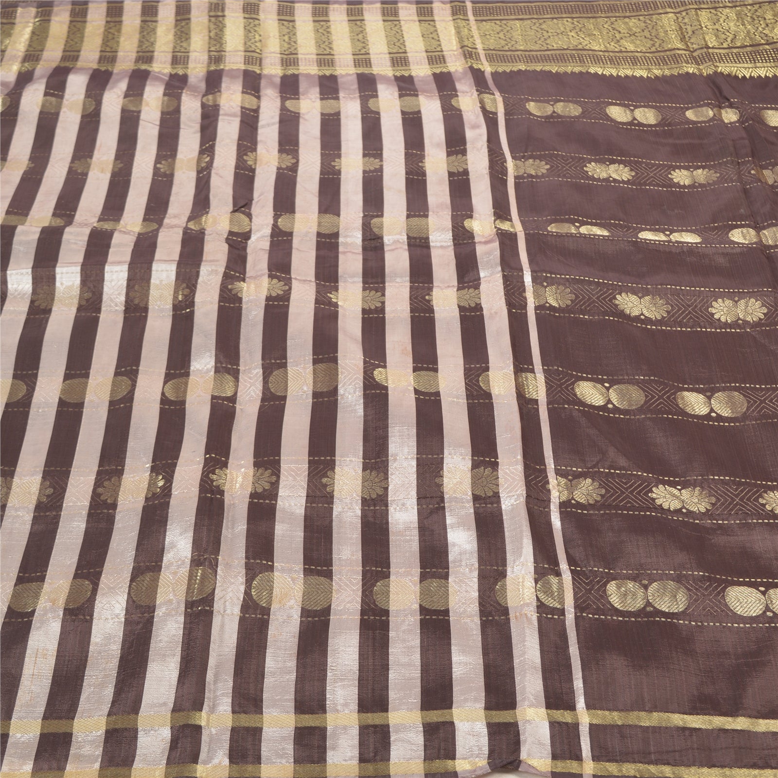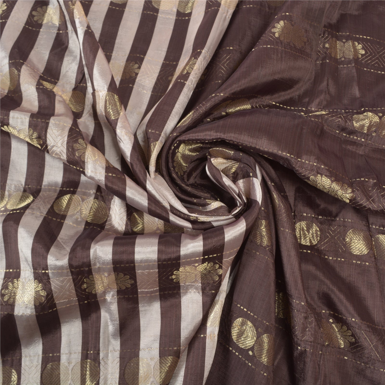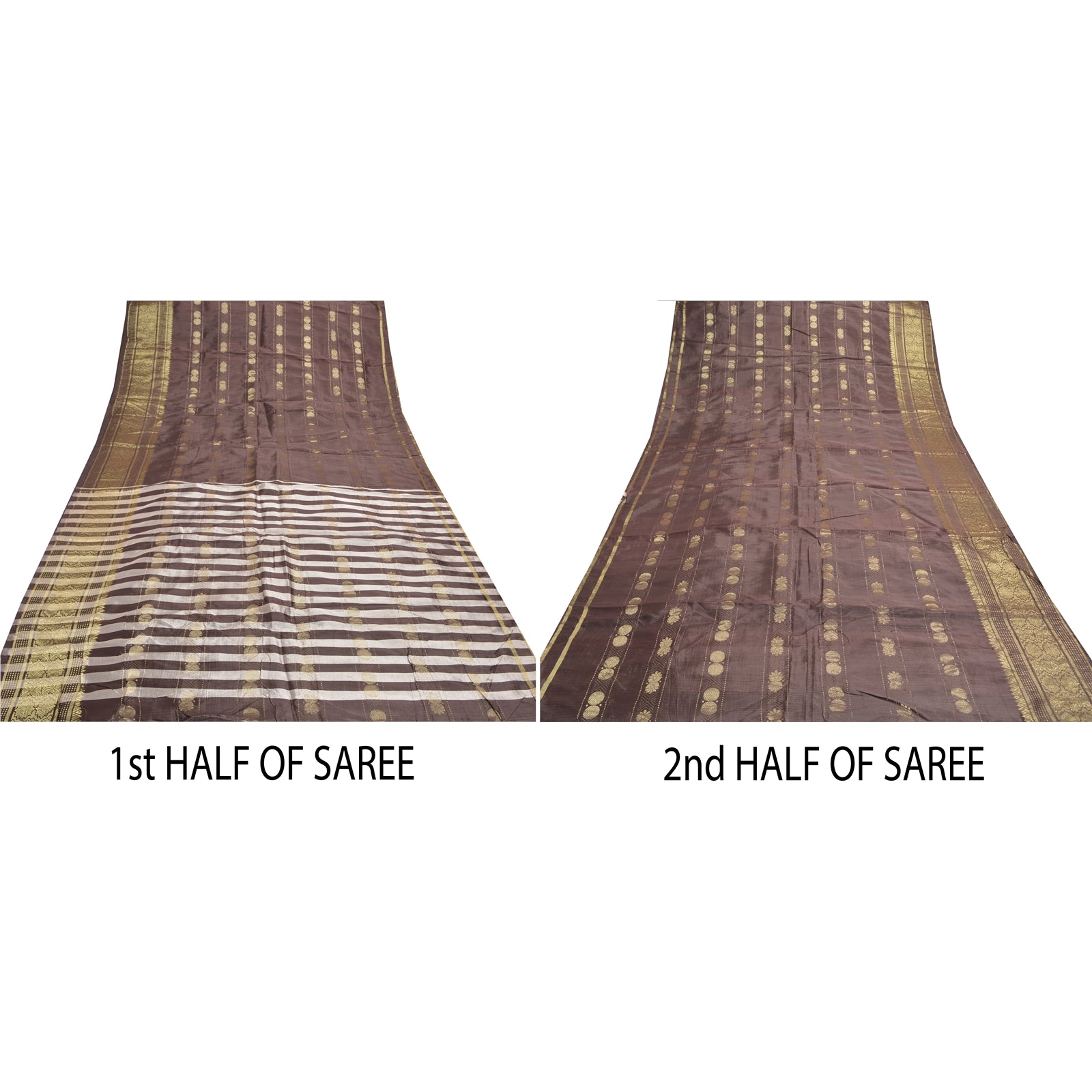 Sanskriti Vintage Brown Indian Sarees Art Silk Woven Zari Sari 5 Yard Sustainable Fabric
