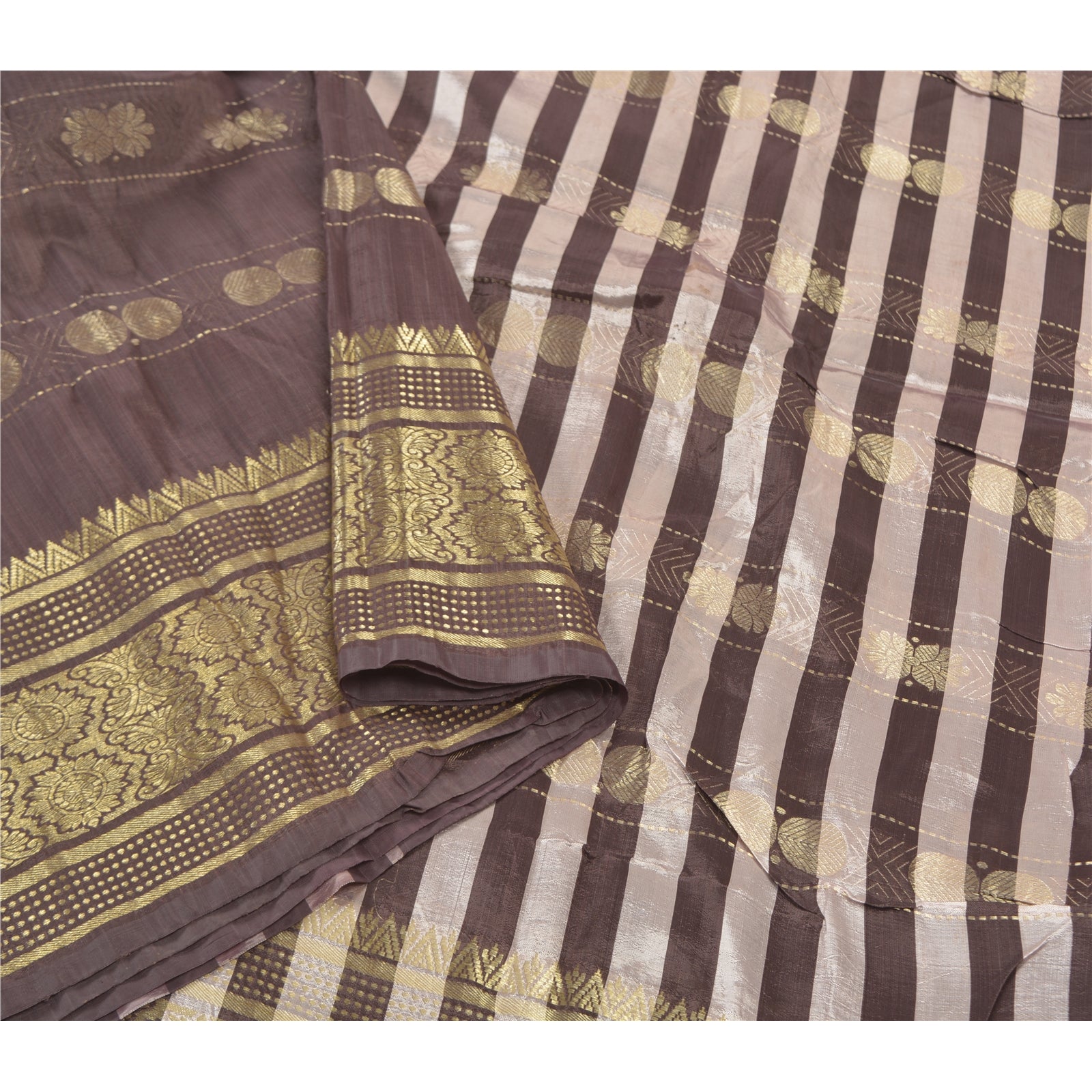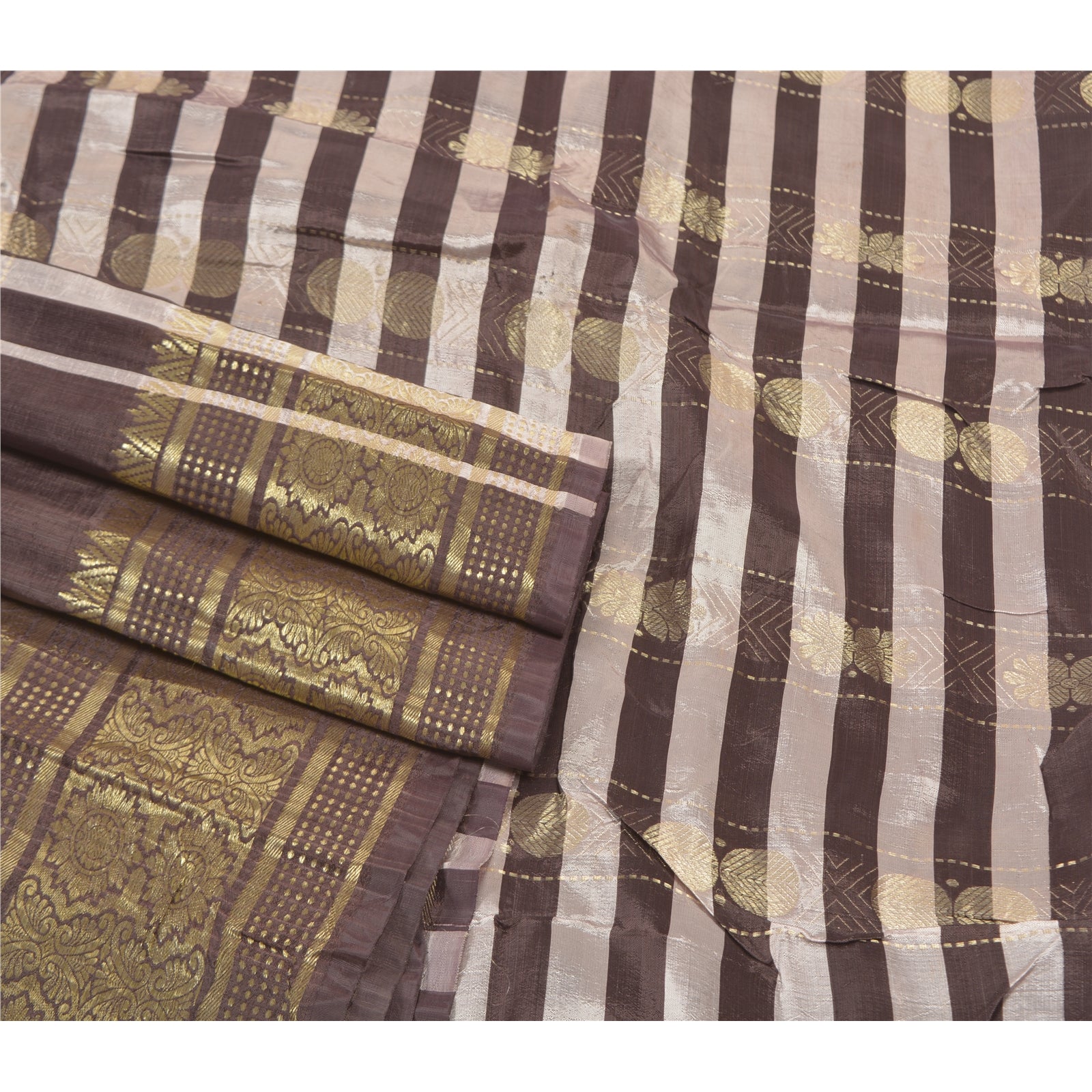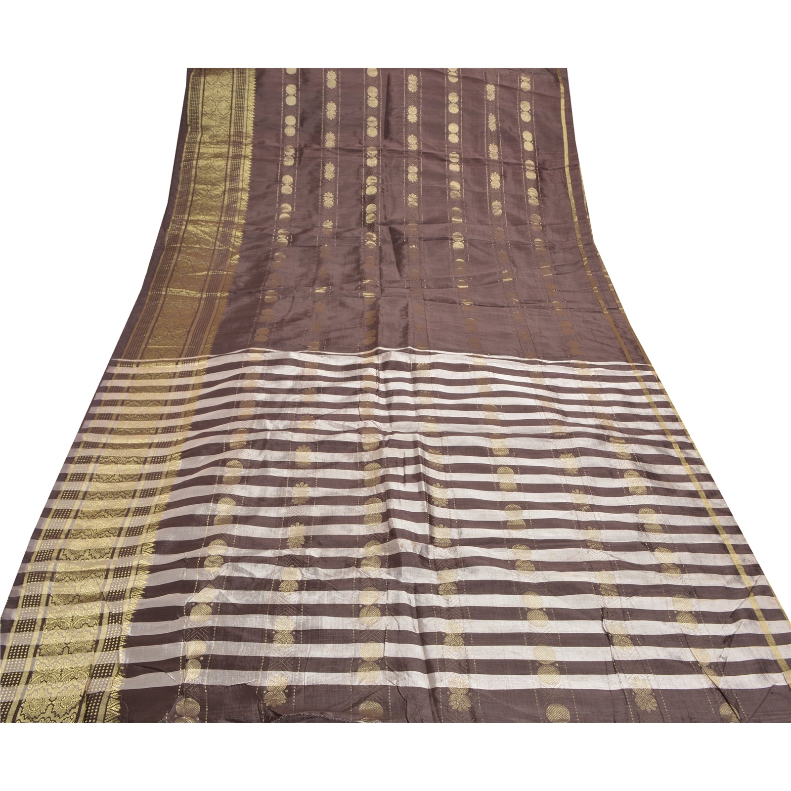 Sanskriti Vintage Brown Indian Sarees Art Silk Woven Zari Sari 5 Yard Sustainable Fabric
