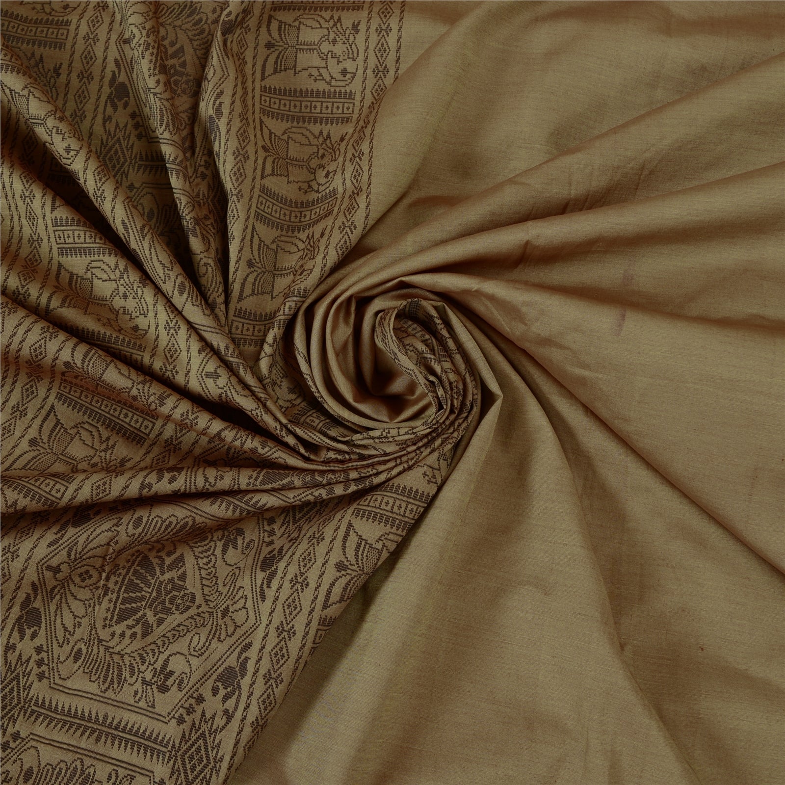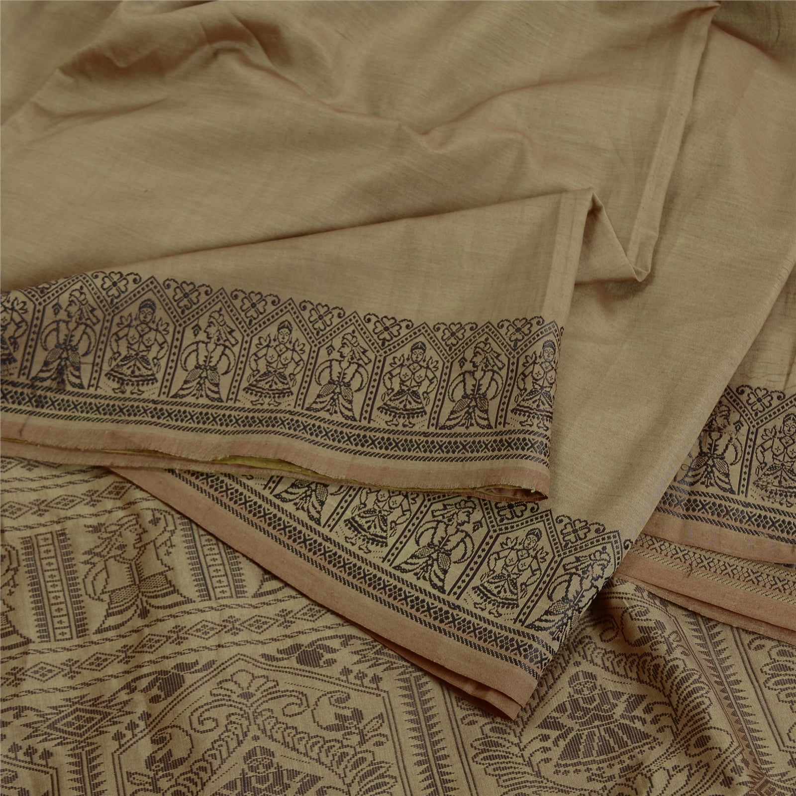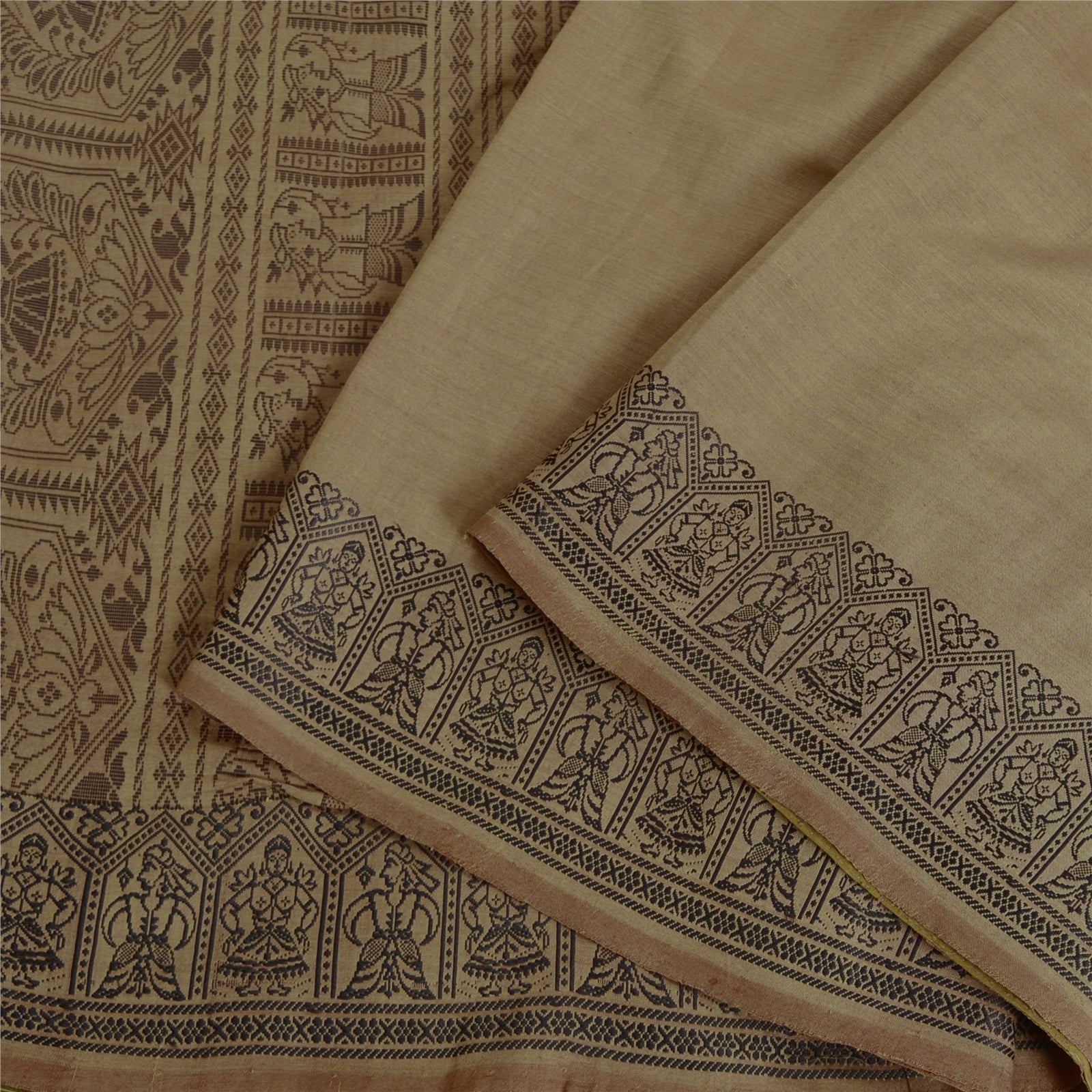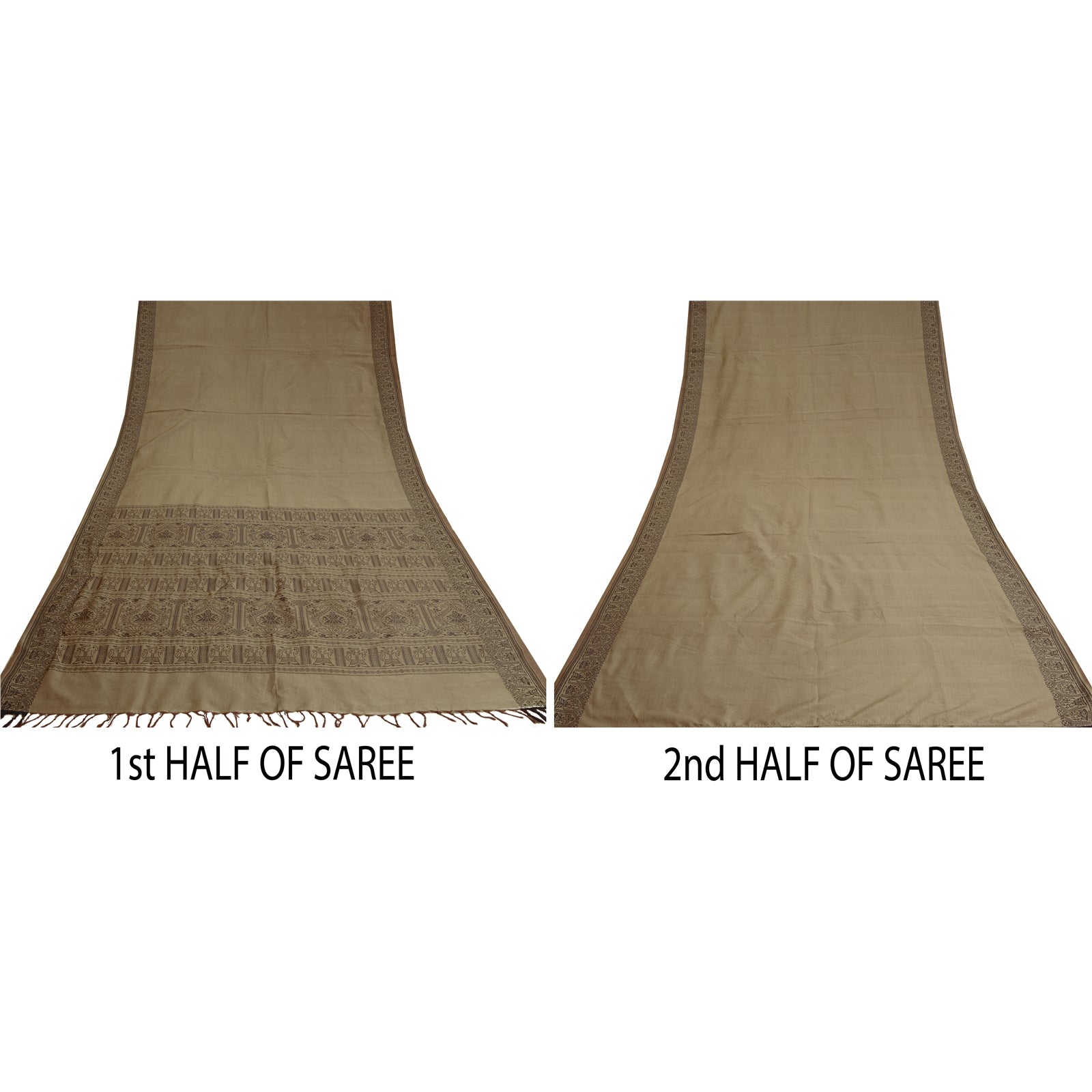 'THE ITEM COLOR OR SHADE MAY BE DARKER OR LIGHTER THAN THE PICTURE.' Beautiful Shade Brown Colored Woven Baluchari Sari. Pallu & Border has black woven thread work with floral & human design. Also you can see matching fringes on pallu. The center of the saree has plain solid color. As the item is Vintage, some minor stains and defects are expected. This saree can be used for various crafting ideas too. Use it for dress designing, as a throw, as window dressing, upholstery, table linen and much more. Let your creative juices flow. 'International buyers please note: Import duties, taxes, and charges are not included in the item price or postage cost. These charges are the buyer's responsibility. Please check with your country's customs office to determine what these additional costs will be prior to bidding or buying. Buyer will pay custom duty/tax. It is calculated and charged differently by every country. As a seller I do not have any control over it. VAT or sales tax is calculated by the platform at the time of checkout. Customs charge is payable at the time of delivery.'