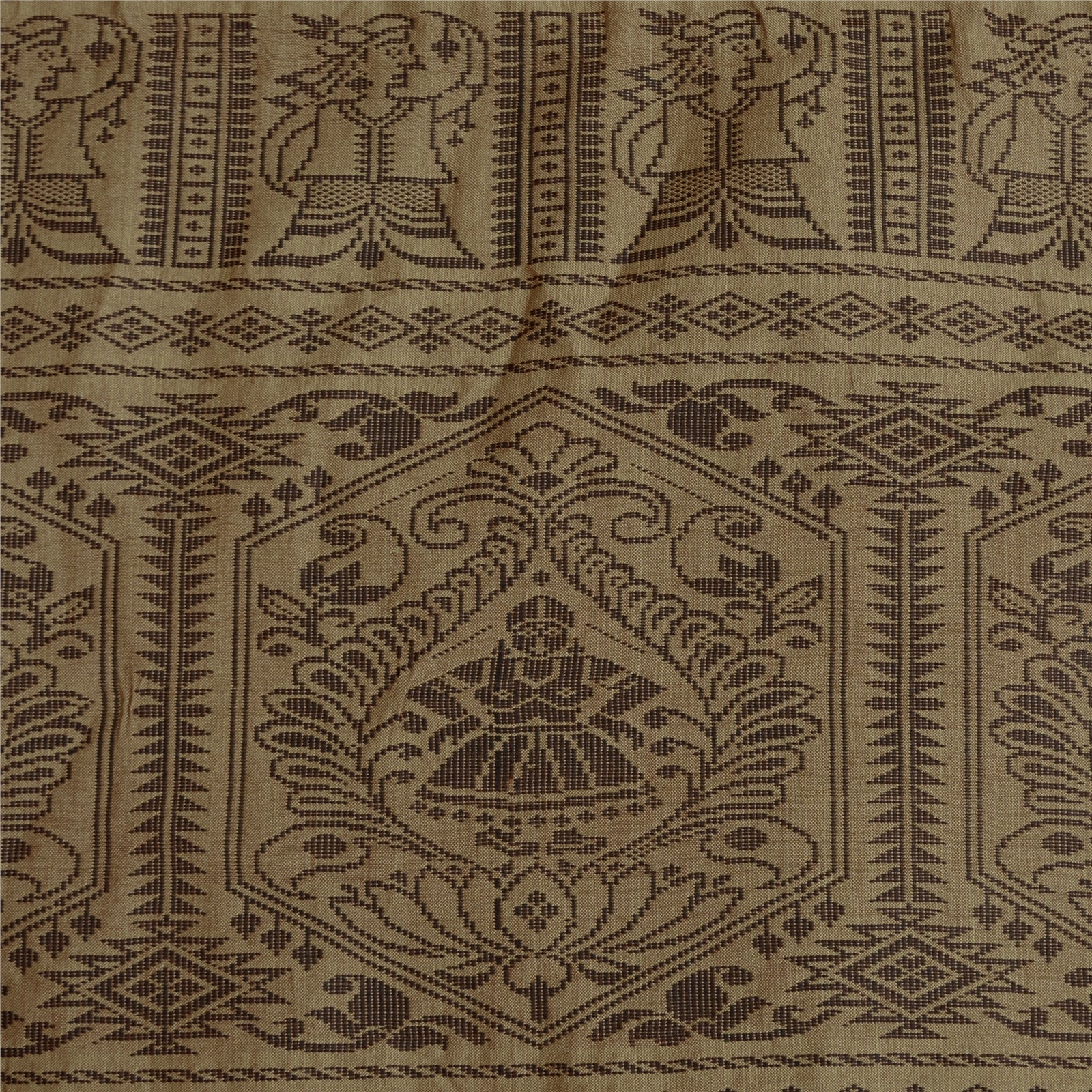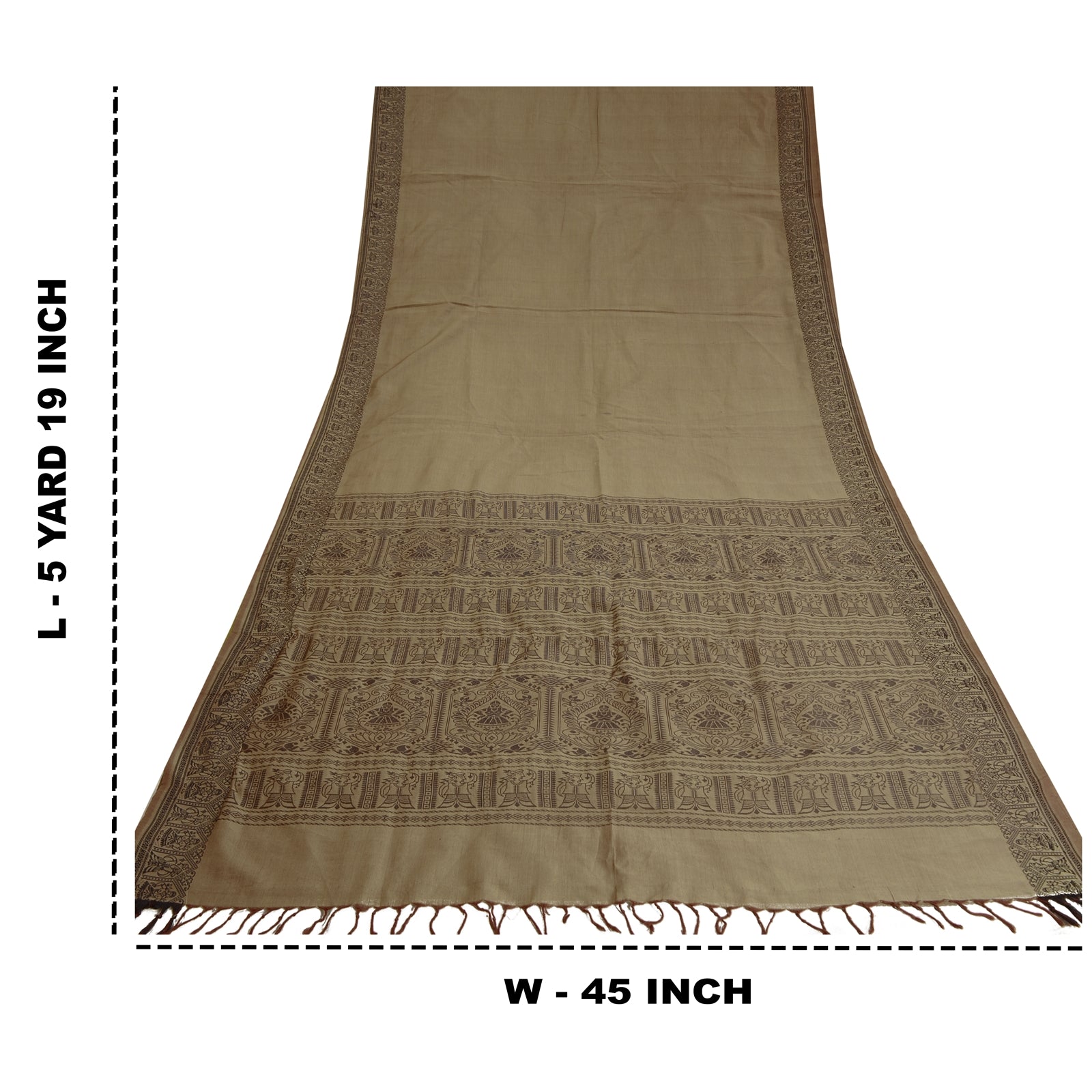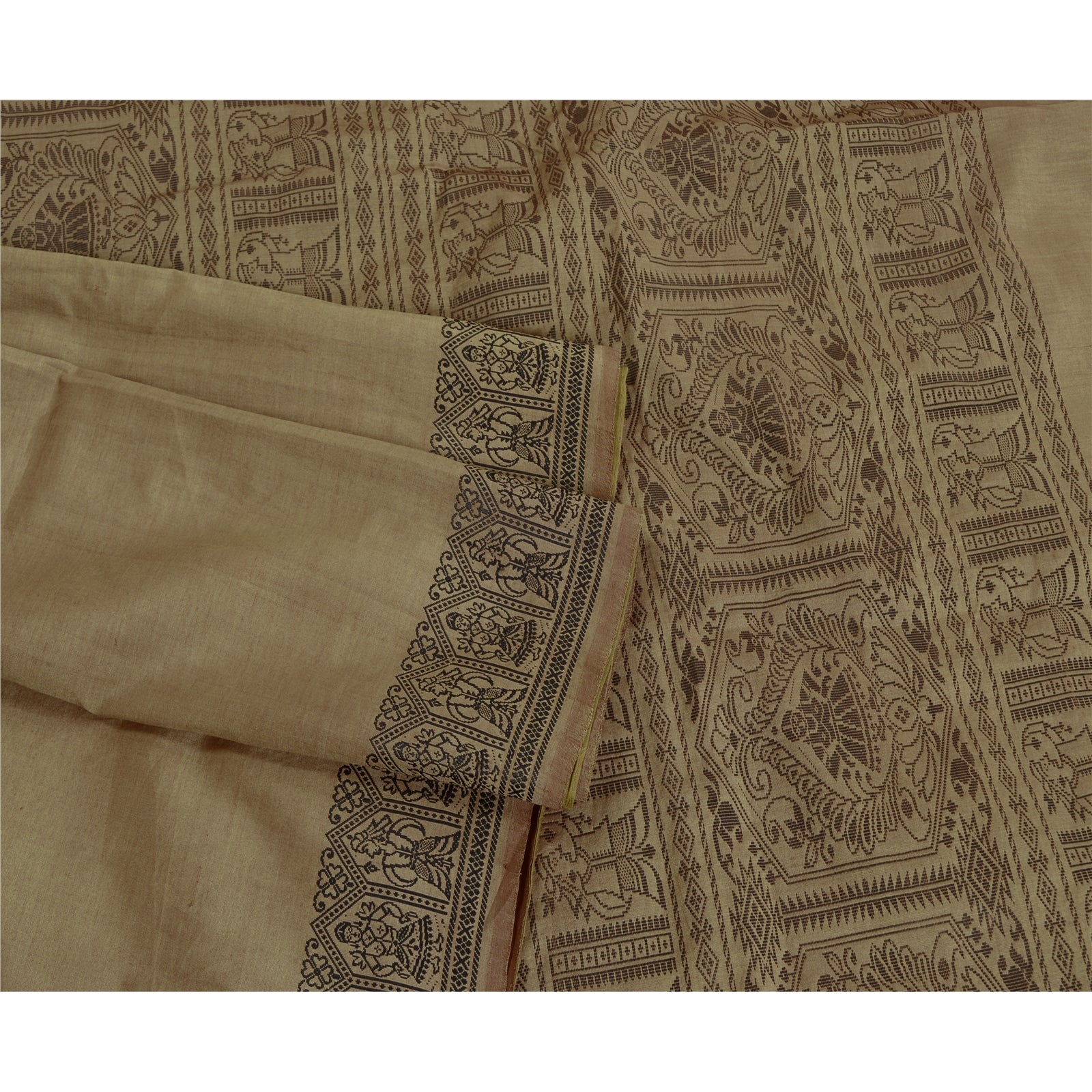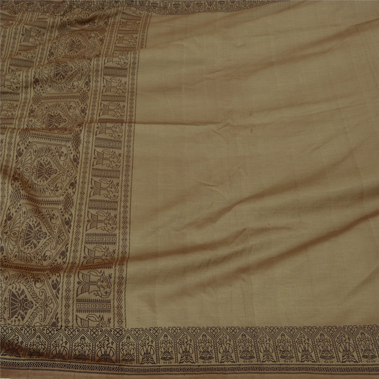 'THE ITEM COLOR OR SHADE MAY BE DARKER OR LIGHTER THAN THE PICTURE.' Beautiful Shade Brown Colored Woven Baluchari Sari. Pallu & Border has black woven thread work with floral & human design. Also you can see matching fringes on pallu. The center of the saree has plain solid color. As the item is Vintage, some minor stains and defects are expected. This saree can be used for various crafting ideas too. Use it for dress designing, as a throw, as window dressing, upholstery, table linen and much more. Let your creative juices flow. 'International buyers please note: Import duties, taxes, and charges are not included in the item price or postage cost. These charges are the buyer's responsibility. Please check with your country's customs office to determine what these additional costs will be prior to bidding or buying. Buyer will pay custom duty/tax. It is calculated and charged differently by every country. As a seller I do not have any control over it. VAT or sales tax is calculated by the platform at the time of checkout. Customs charge is payable at the time of delivery.'