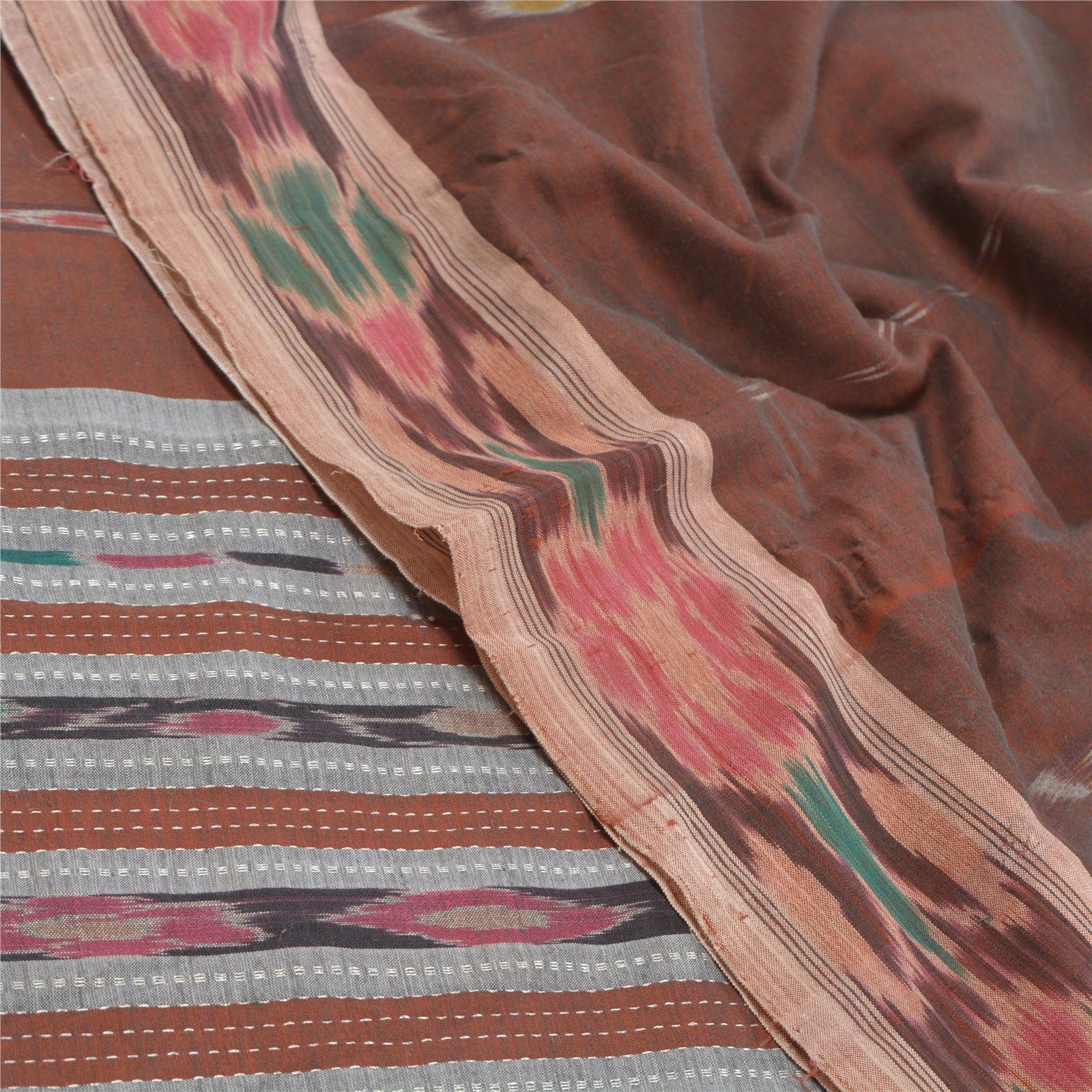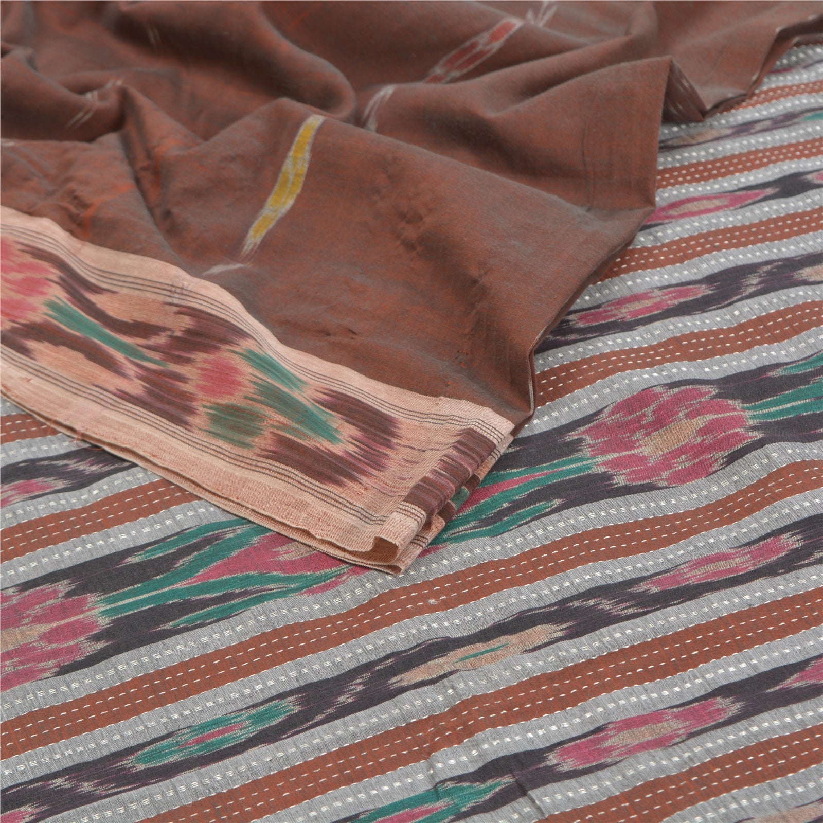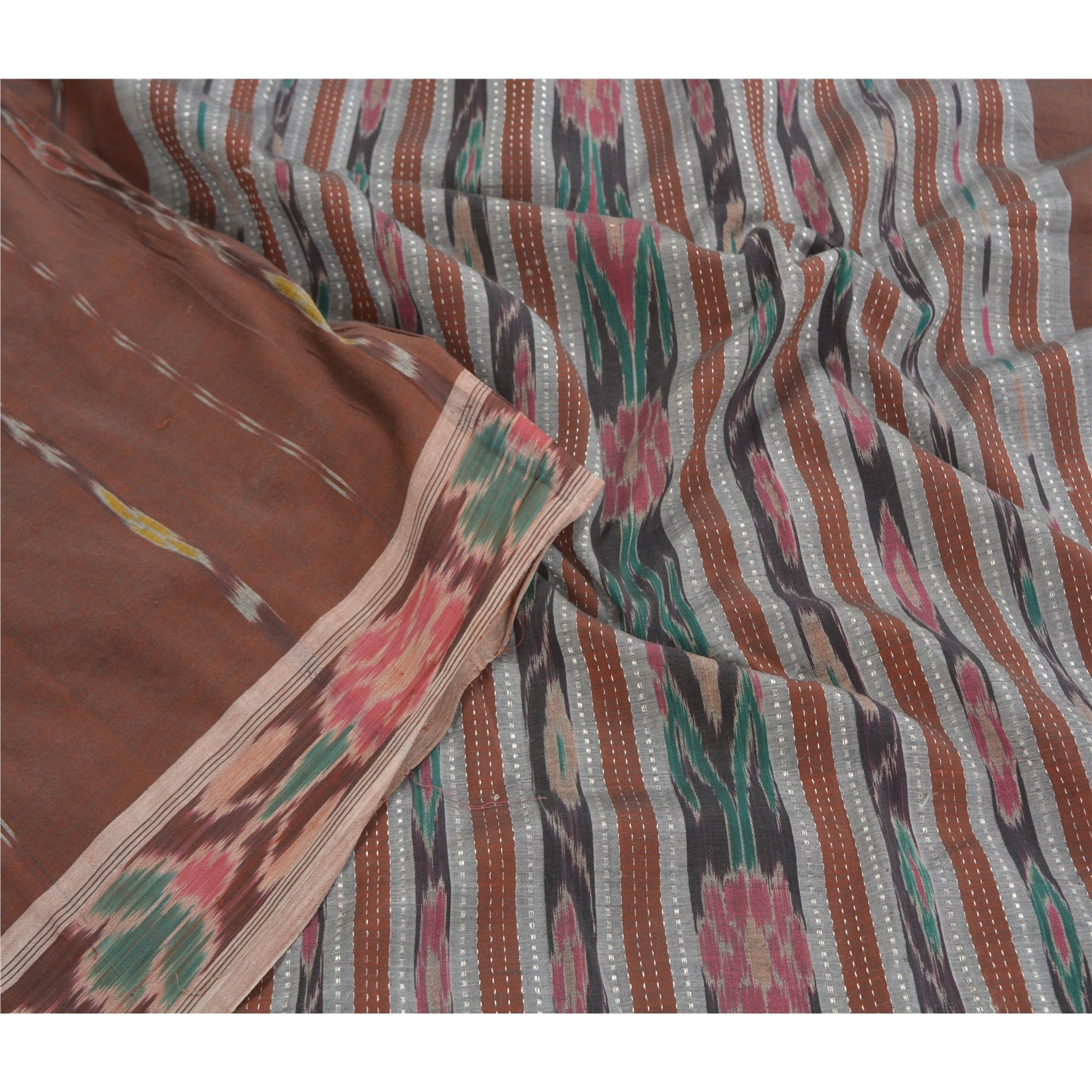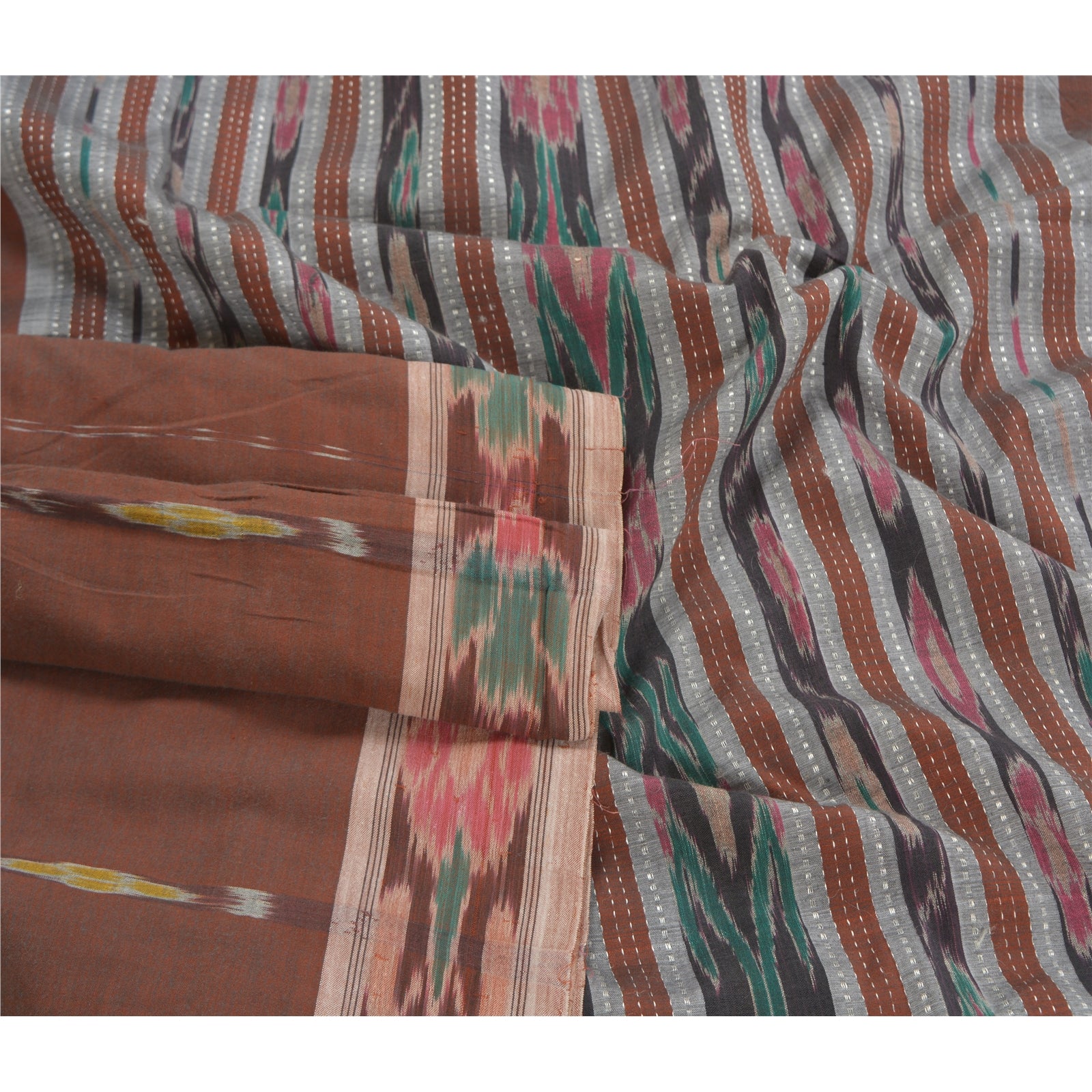 Sanskriti Vintage Brown Odisha Saree Hand Woven Ikat Blend Cotton Sari Sustainable Fabric