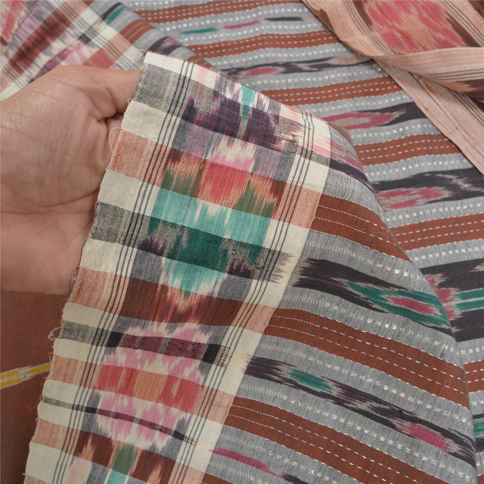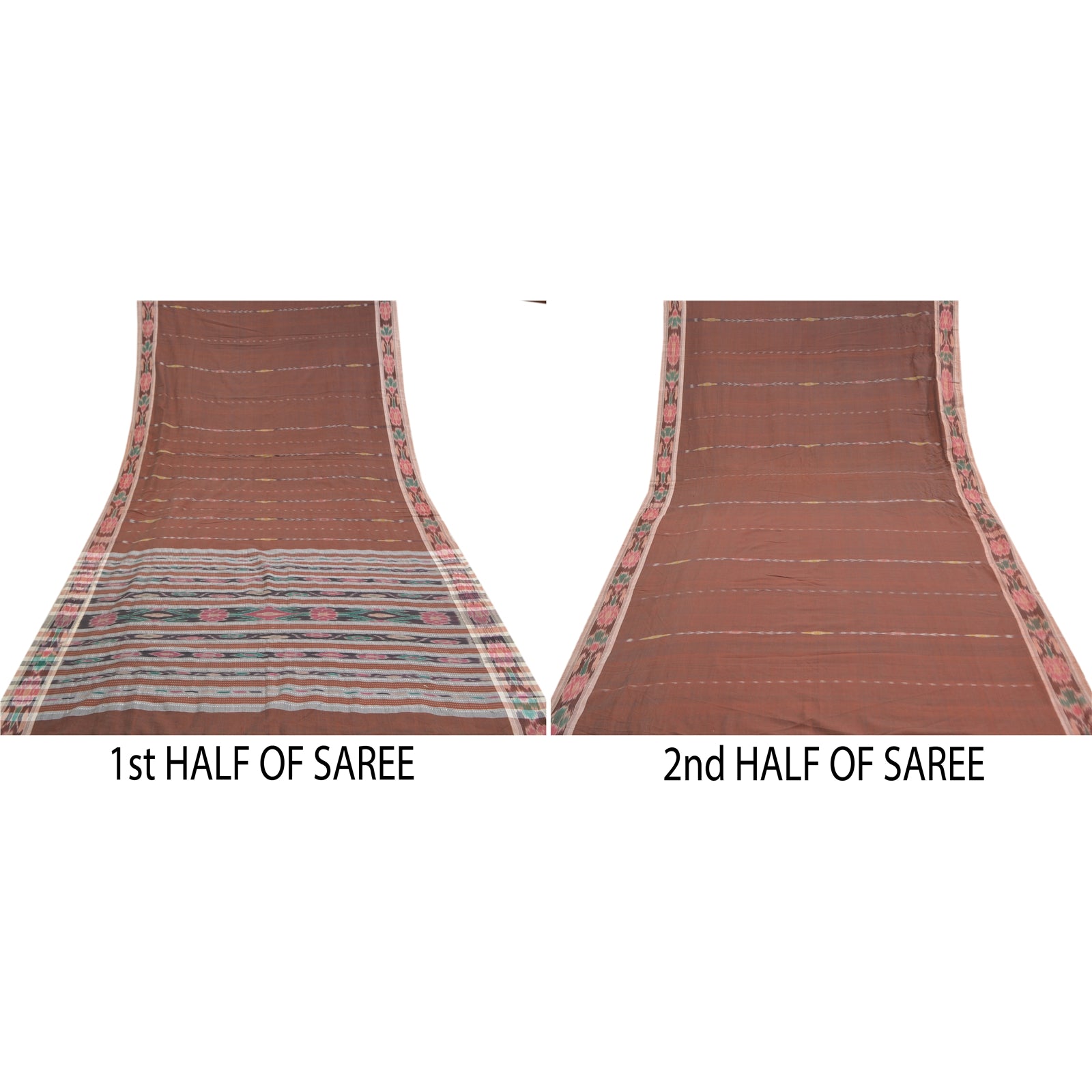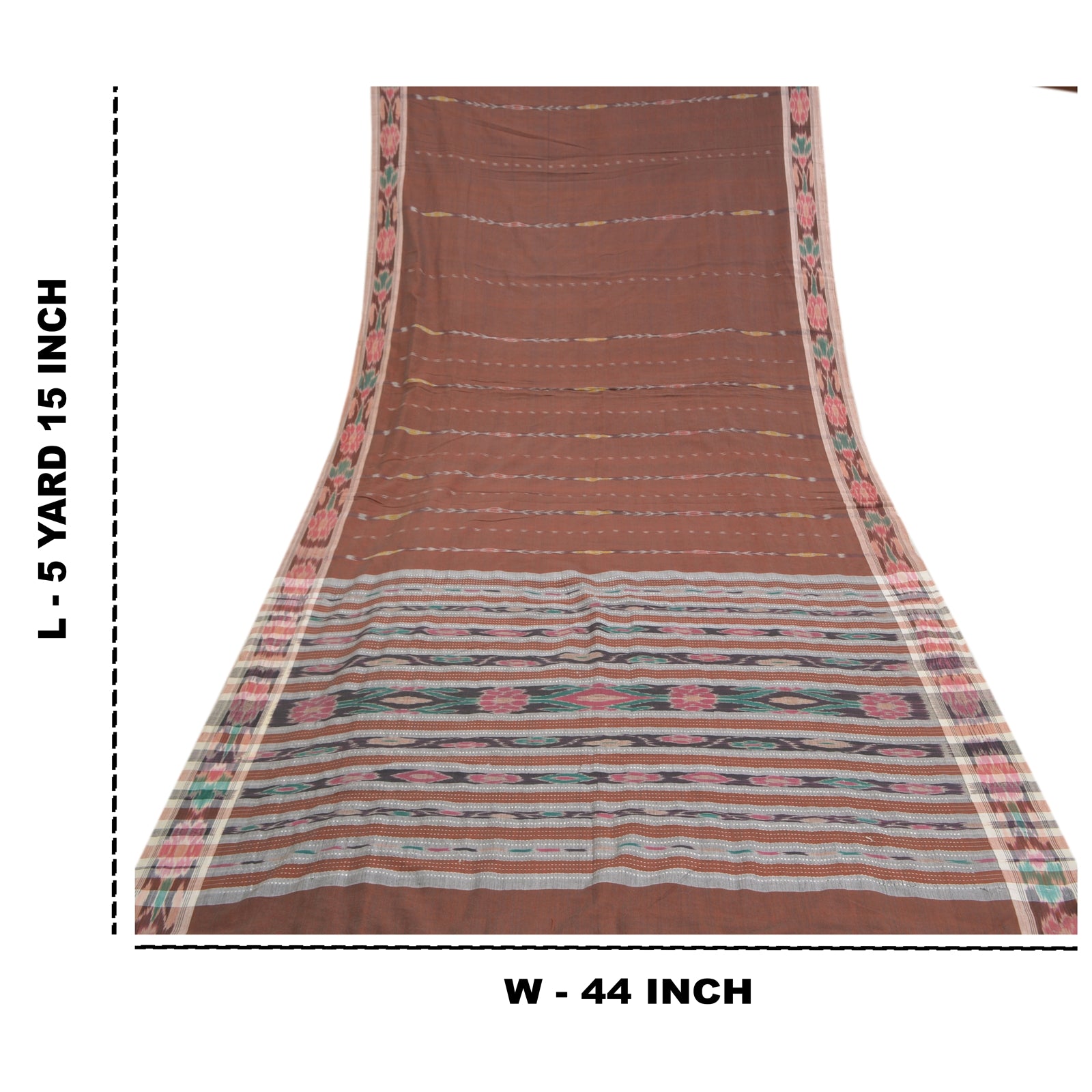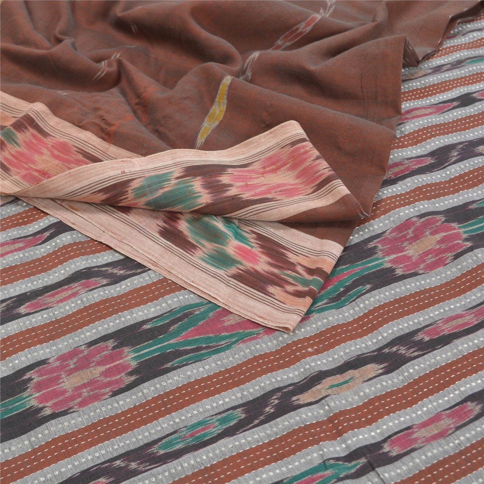 Sanskriti Vintage Brown Odisha Saree Hand Woven Ikat Blend Cotton Sari Sustainable Fabric