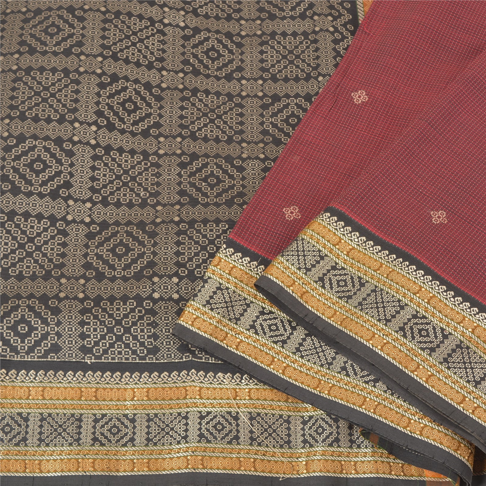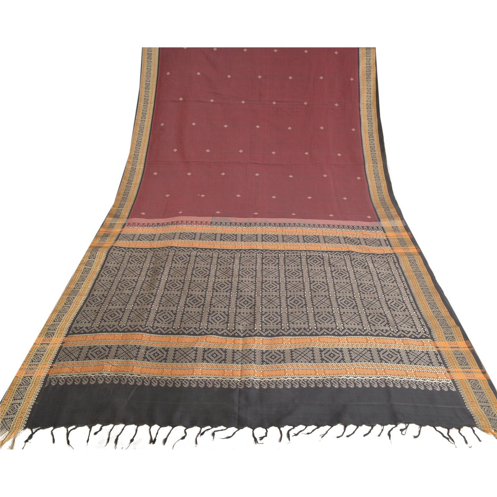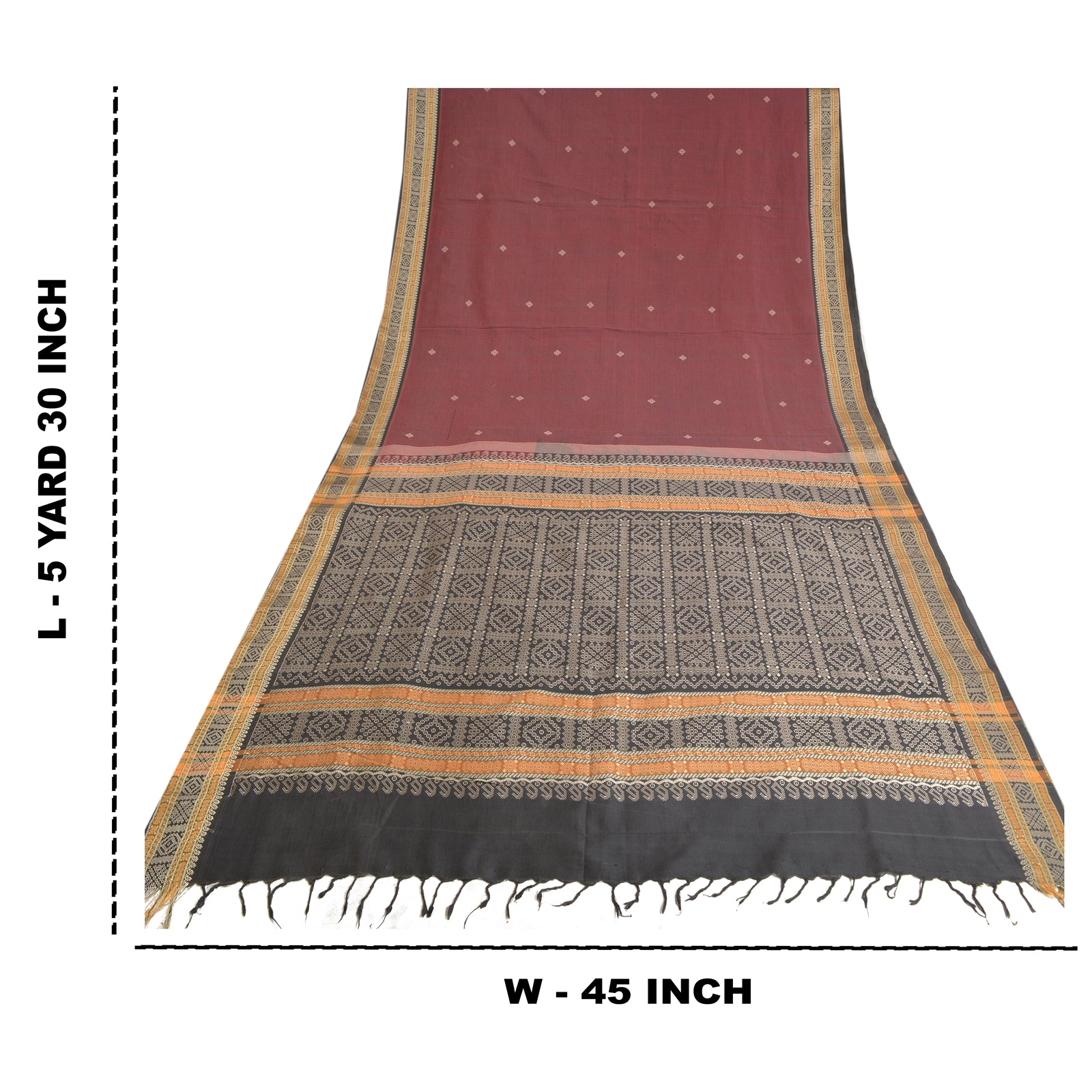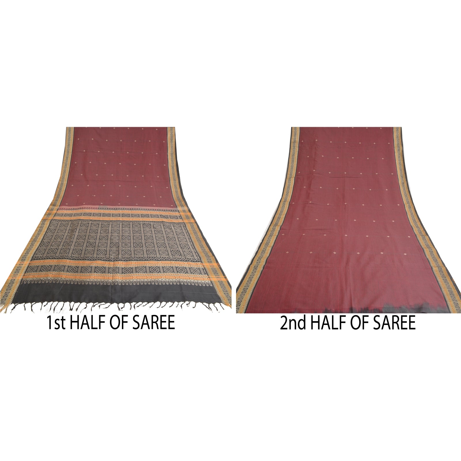 'THE ITEM COLOR OR SHADE MAY BE DARKER OR LIGHTER THAN THE PICTURE.' Beautiful shade of dark red & black colored cotton silk woven sari. Pallu & border has woven thread work with floral & paisley design. The center of the saree has similar woven design. This saree can be used for various crafting ideas too. Use it for dress designing, as a throw, as window dressing, upholstery, table linen and much more. Let your creative juices flow. 'International buyers please note: Import duties, taxes, and charges are not included in the item price or postage cost. These charges are the buyer's responsibility. Please check with your country's customs office to determine what these additional costs will be prior to bidding or buying. Buyer will pay custom duty/tax. It is calculated and charged differently by every country. As a seller I do not have any control over it. VAT or sales tax is calculated by the platform at the time of checkout. Customs charge is payable at the time of delivery.'
