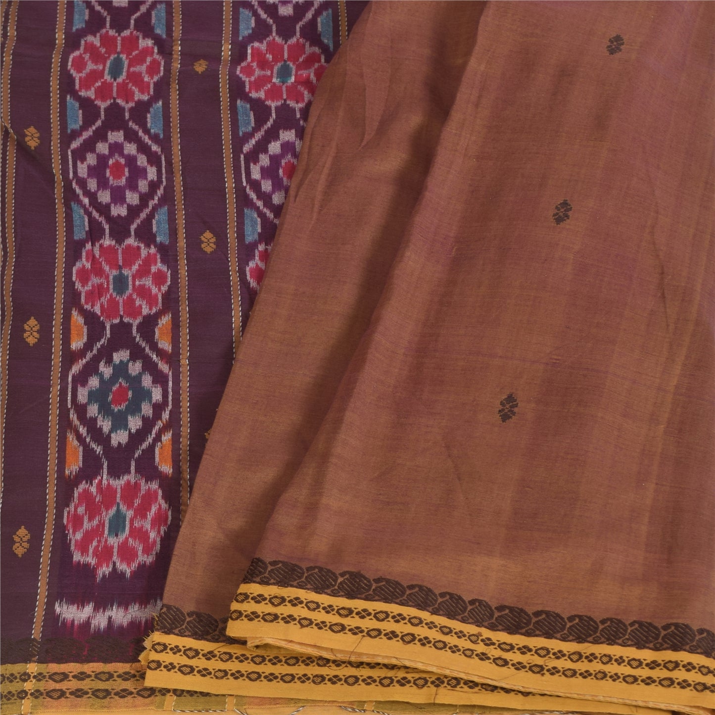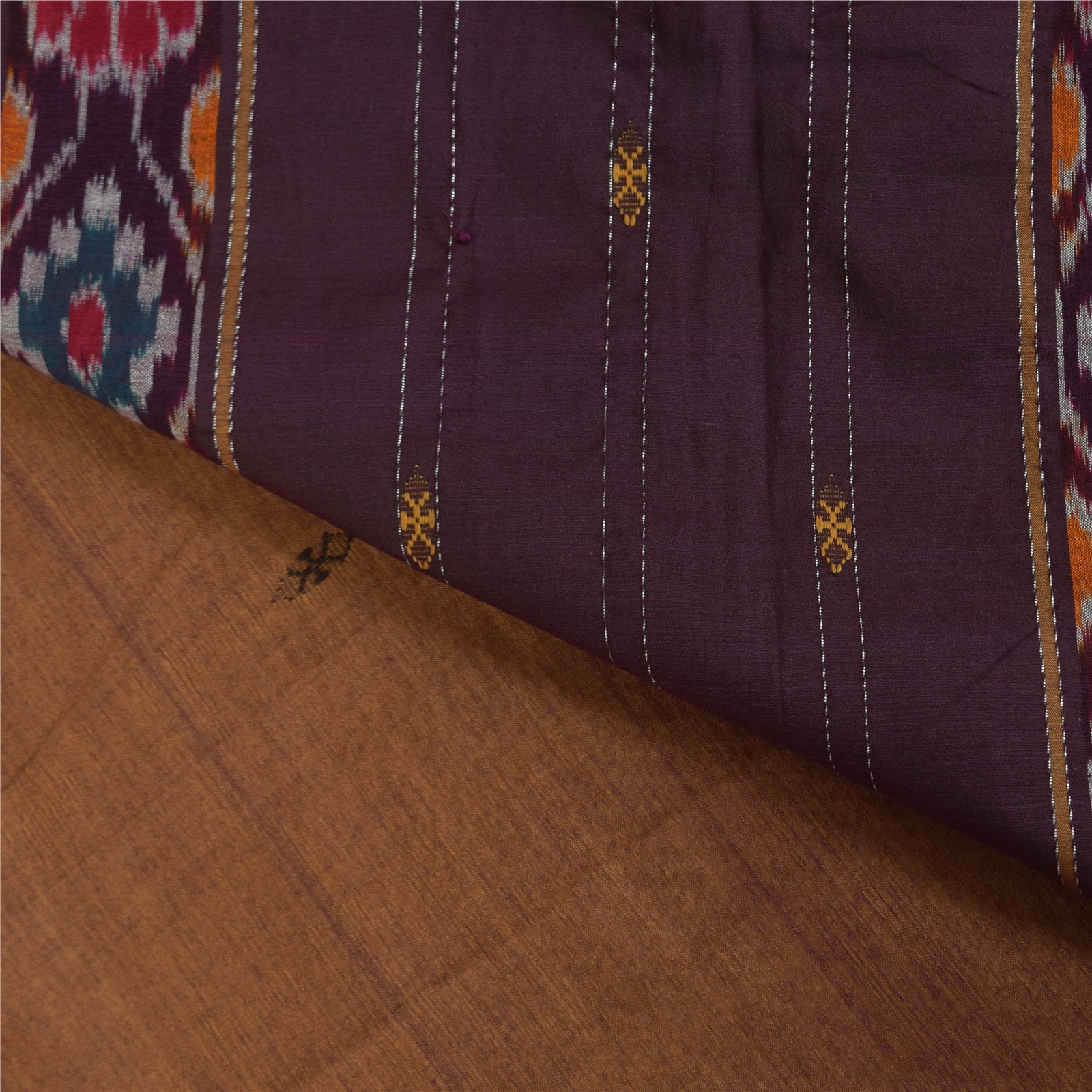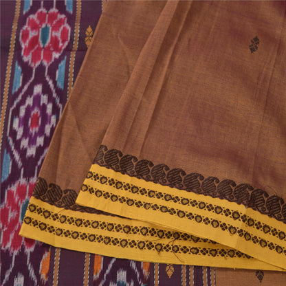 Sanskriti Vintage Brown Sarees Pure Cotton Woven Ikat Sari Premium Craft Sustainable Fabric