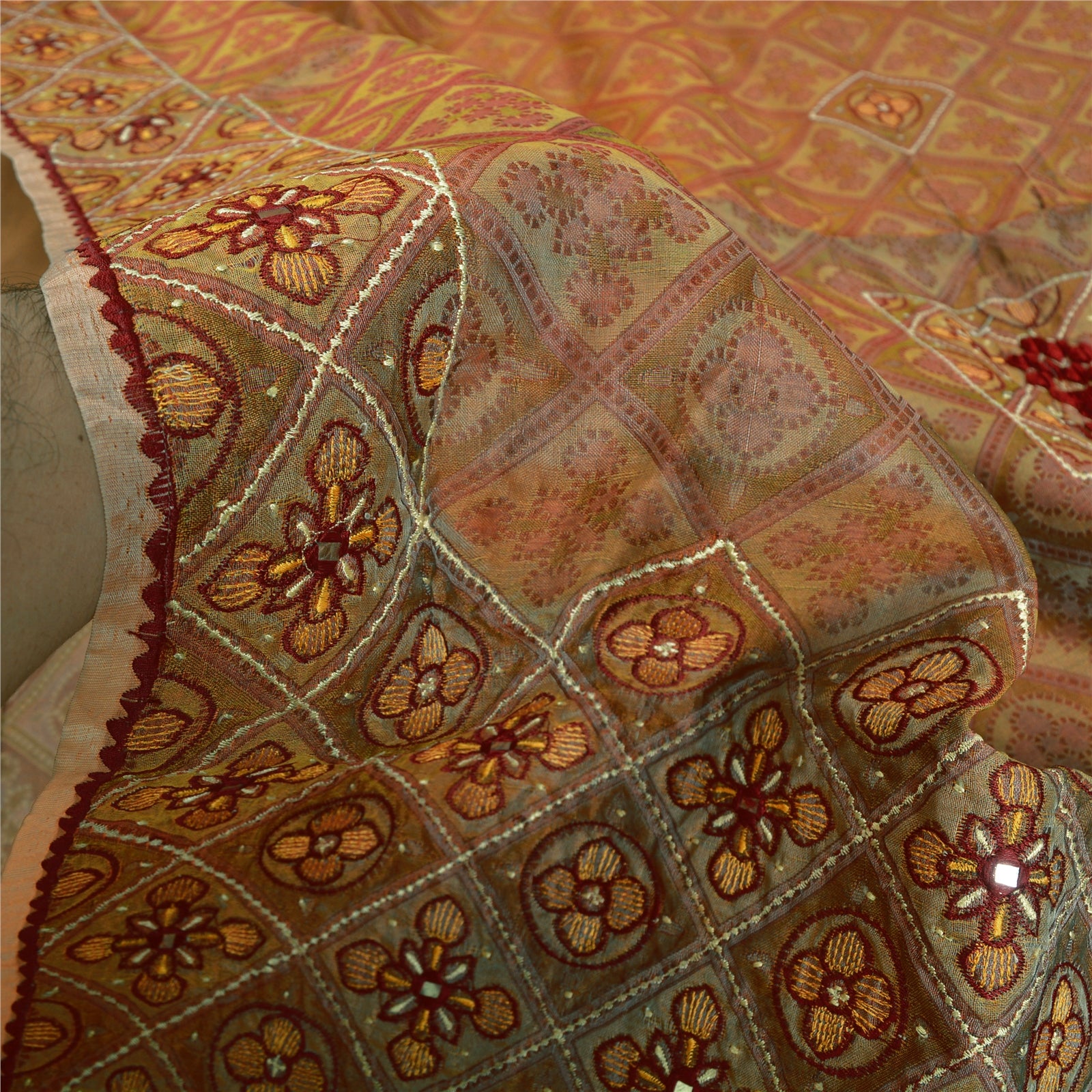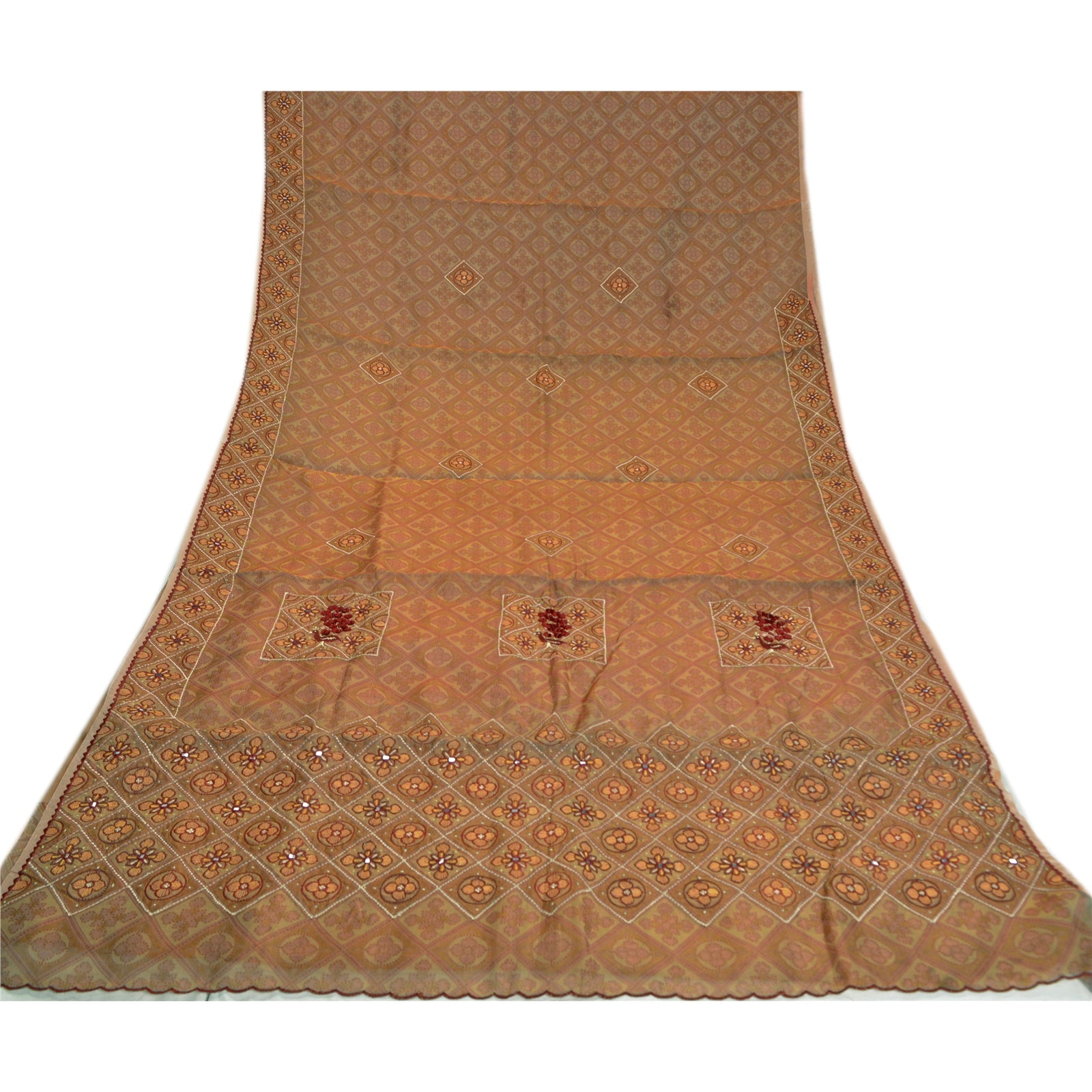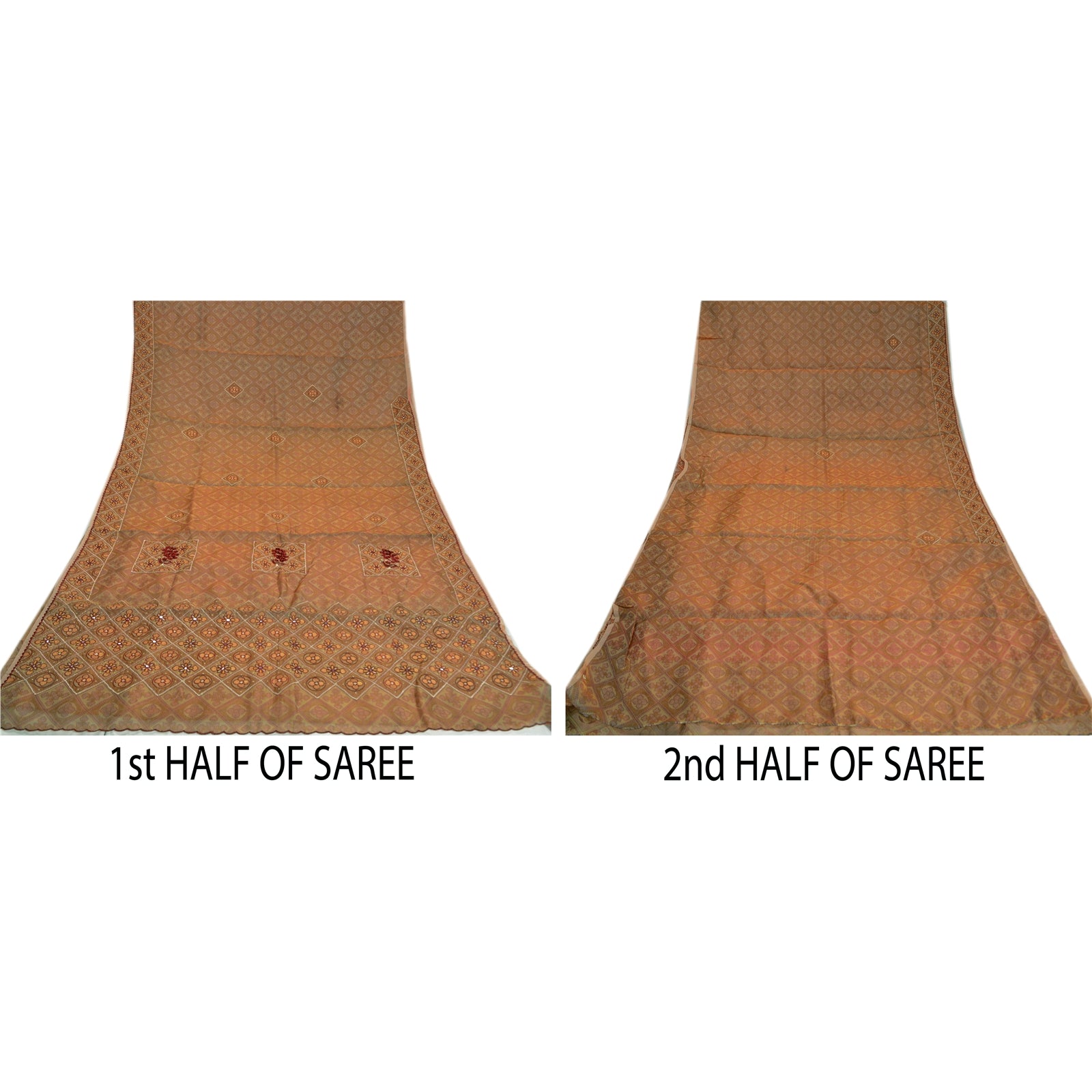 'THE ITEM COLOR OR SHADE MAY BE DARKER OR LIGHTER THAN THE PICTURE.' Beautiful shade of brown colored 100% pure silk embroidered woven sari. Pallu & border features woven geometric & floral design with embroidered thread, maroon velvet Sustainable Fabric patch, mirror work. The center of the saree has woven floral work with thread work. This saree can be used for various crafting ideas too. Use it for dress designing, as a throw, as window dressing, upholstery, table linen and much more. Let your creative juices flow. 'International buyers please note: Import duties, taxes, and charges are not included in the item price or postage cost. These charges are the buyer's responsibility. Please check with your country's customs office to determine what these additional costs will be prior to bidding or buying. Buyer will pay custom duty/tax. It is calculated and charged differently by every country. As a seller I do not have any control over it. VAT or sales tax is calculated by the platform at the time of checkout. Customs charge is payable at the time of delivery.'