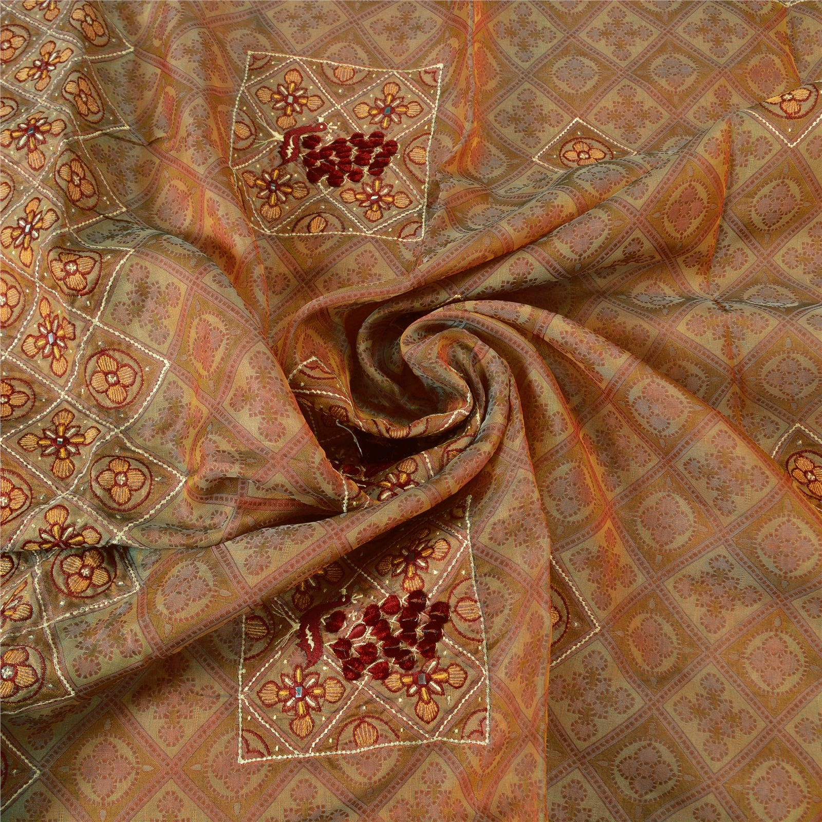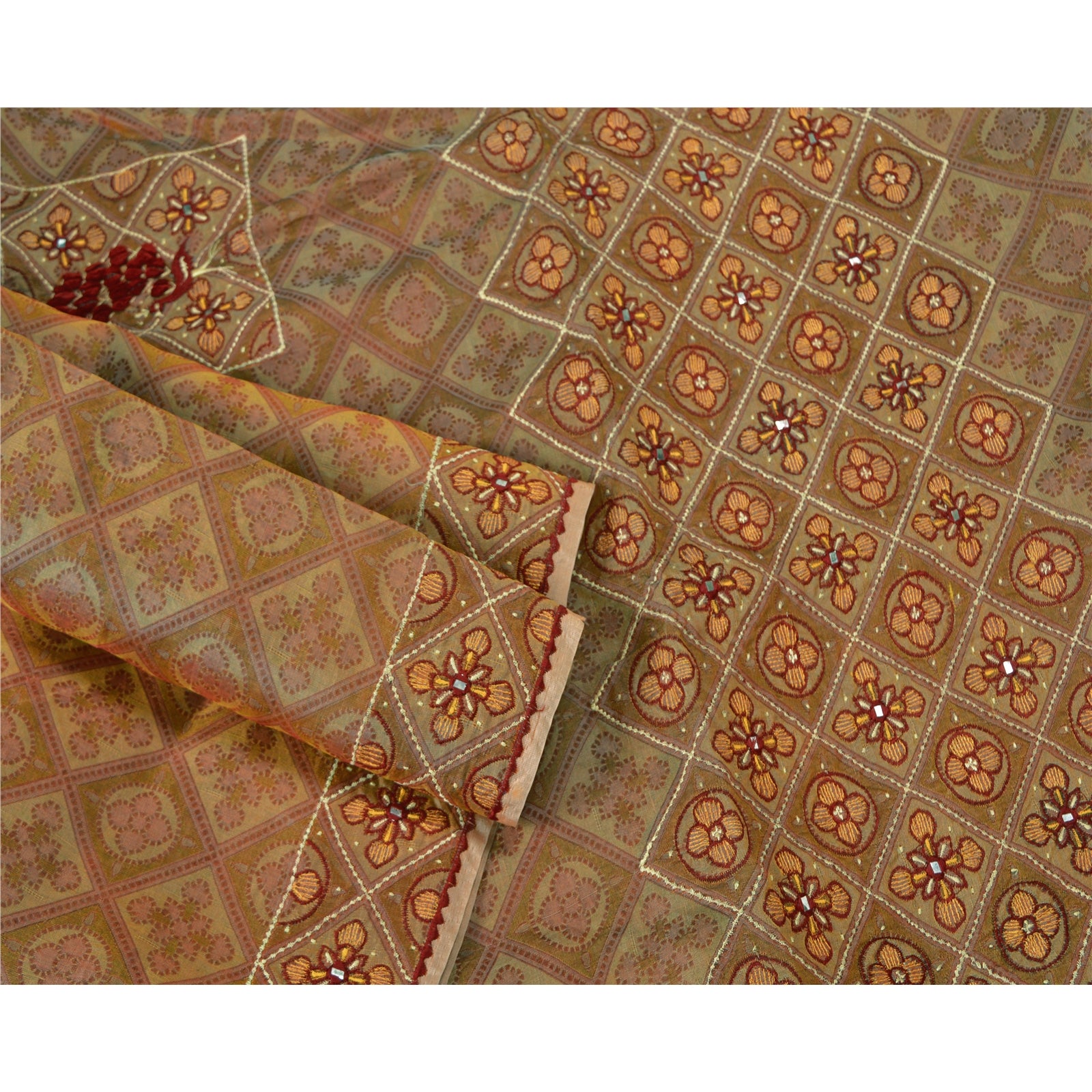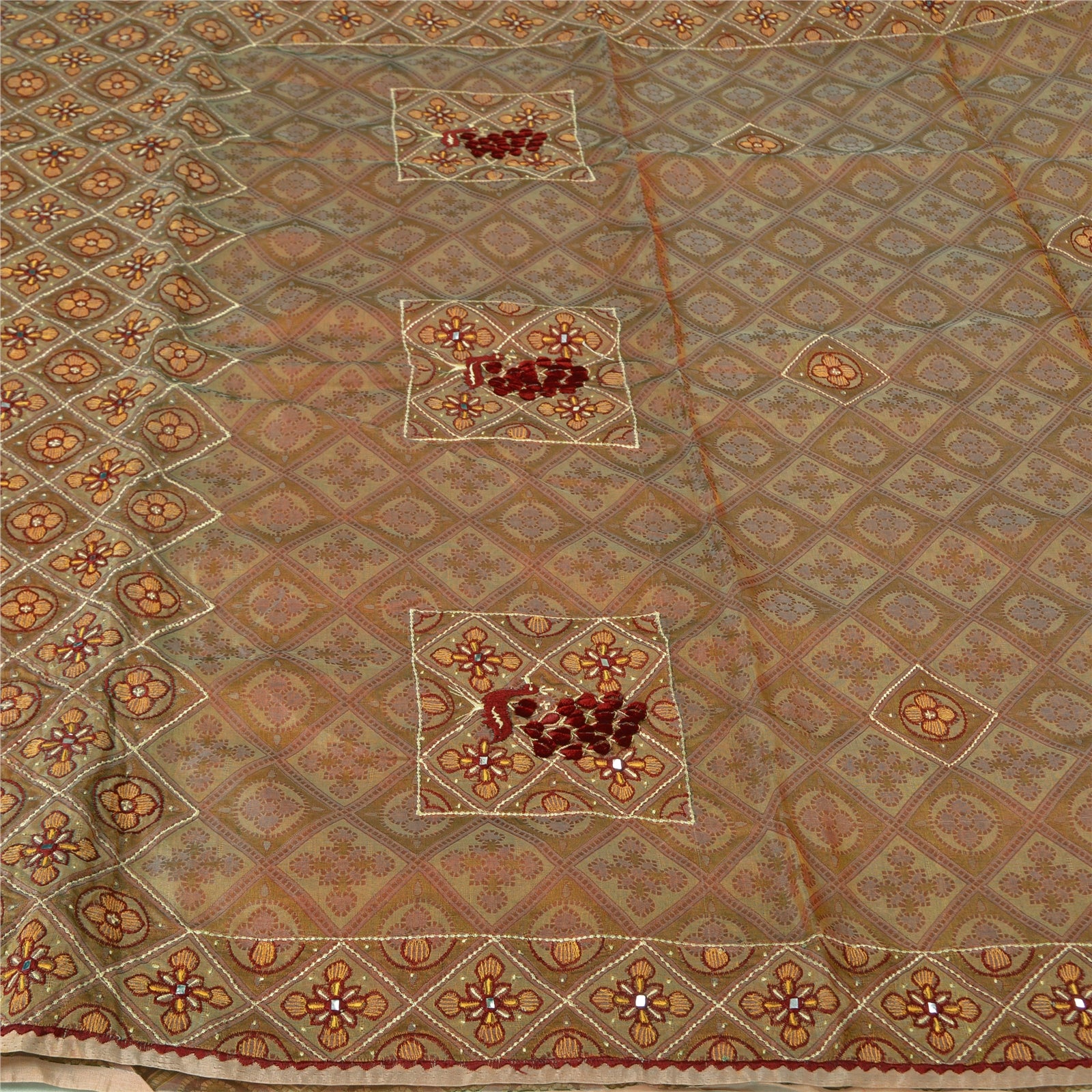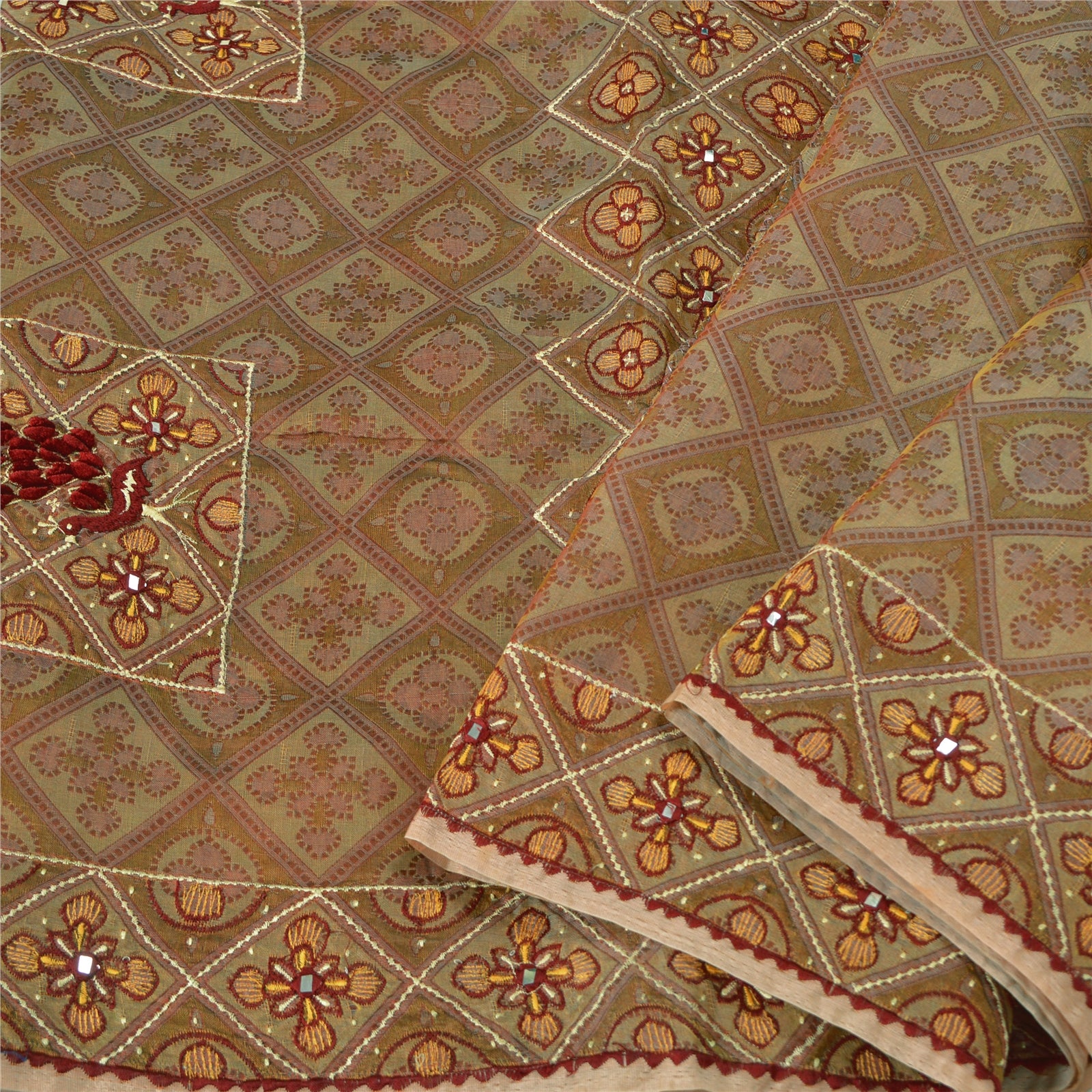 'THE ITEM COLOR OR SHADE MAY BE DARKER OR LIGHTER THAN THE PICTURE.' Beautiful shade of brown colored 100% pure silk embroidered woven sari. Pallu & border features woven geometric & floral design with embroidered thread, maroon velvet Sustainable Fabric patch, mirror work. The center of the saree has woven floral work with thread work. This saree can be used for various crafting ideas too. Use it for dress designing, as a throw, as window dressing, upholstery, table linen and much more. Let your creative juices flow. 'International buyers please note: Import duties, taxes, and charges are not included in the item price or postage cost. These charges are the buyer's responsibility. Please check with your country's customs office to determine what these additional costs will be prior to bidding or buying. Buyer will pay custom duty/tax. It is calculated and charged differently by every country. As a seller I do not have any control over it. VAT or sales tax is calculated by the platform at the time of checkout. Customs charge is payable at the time of delivery.'