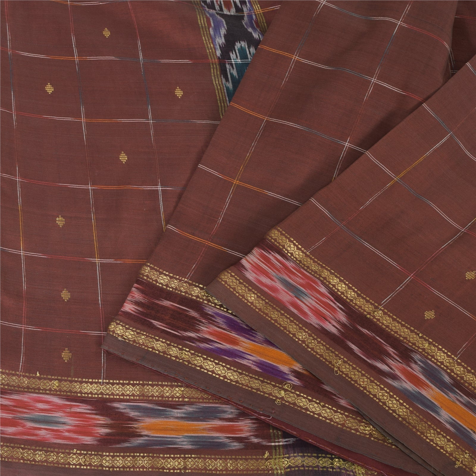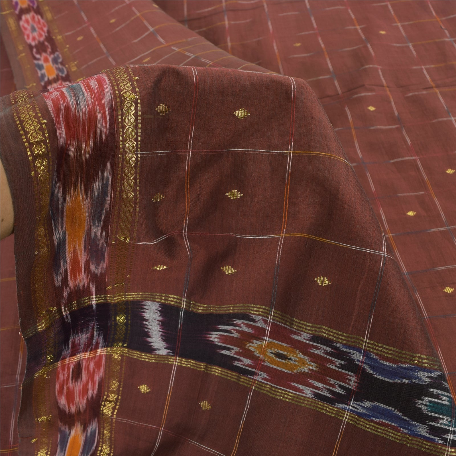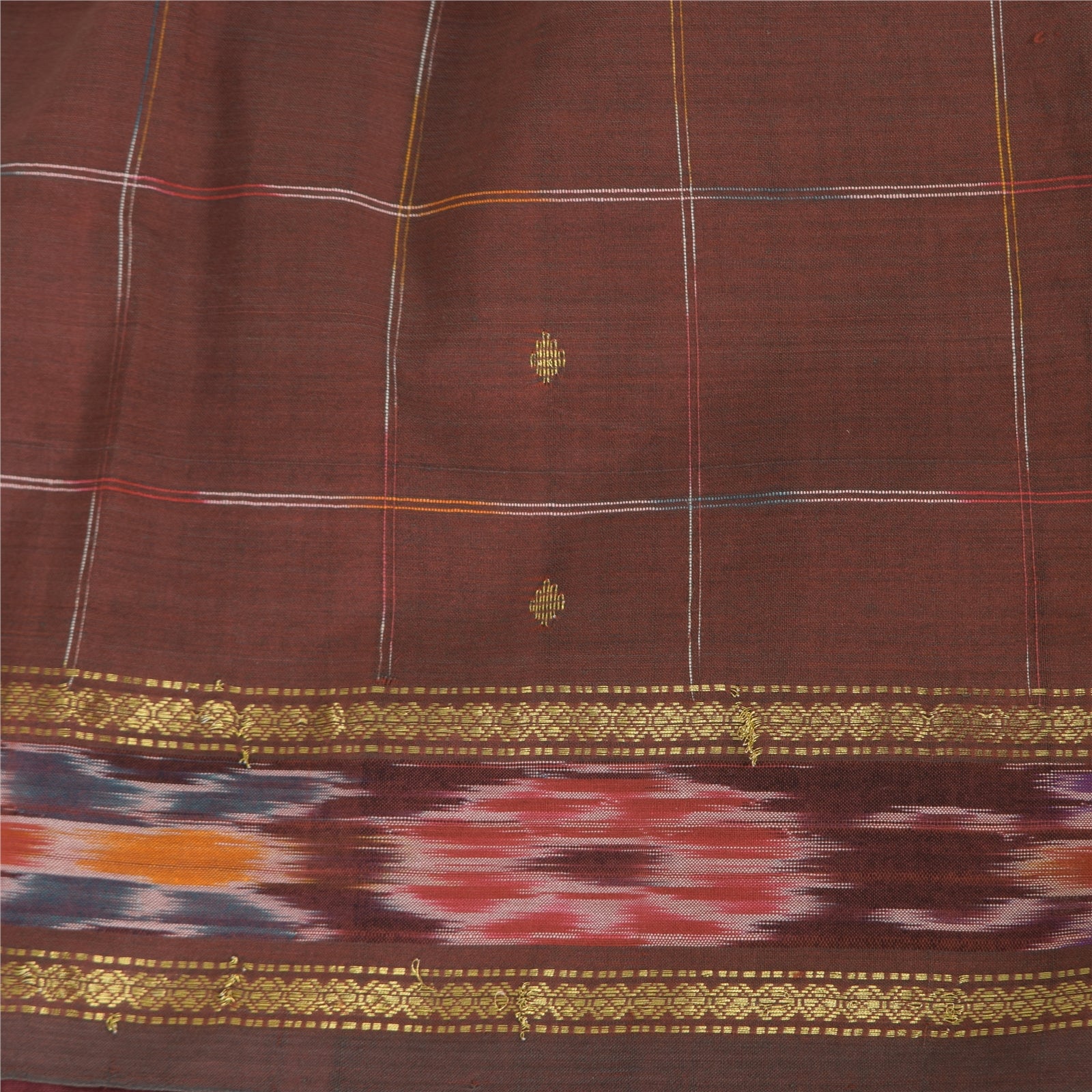THE ITEM COLOR OR SHADE MAY BE DARKER OR LIGHTER THAN THE PICTURE.' An Awesome Sari In 100% Pure Silk Woven Ikat Brown Colored Sari/Sustainable Fabric. Pallu & Border Features floral design embellished with golden zari woven work & multi color woven work. You Can See Center Portion Of The Sari Has Similar Woven Work With Checks Design. This unique vintage saree can be used for various crafting ideas for example design a dress, use it as a throw, as window dressing, upholstery, table linen and much more. Let your creative juices flow and use this decorated Sustainable Fabric in multiple fashion Shipping note: International buyers please note: Import duties, taxes, and charges are not included in the item price or postage cost. These charges are the buyer's responsibility. Please check with your country's customs office to determine what these additional costs will be prior to bidding or buying. Buyer will pay custom duty/tax. It is calculated and charged differently by every country. As a seller I do not have any control over it. VAT or sales tax is calculated by the platform at the time of checkout. Customs charge is payable at the time of delivery. SKU: PS-64132