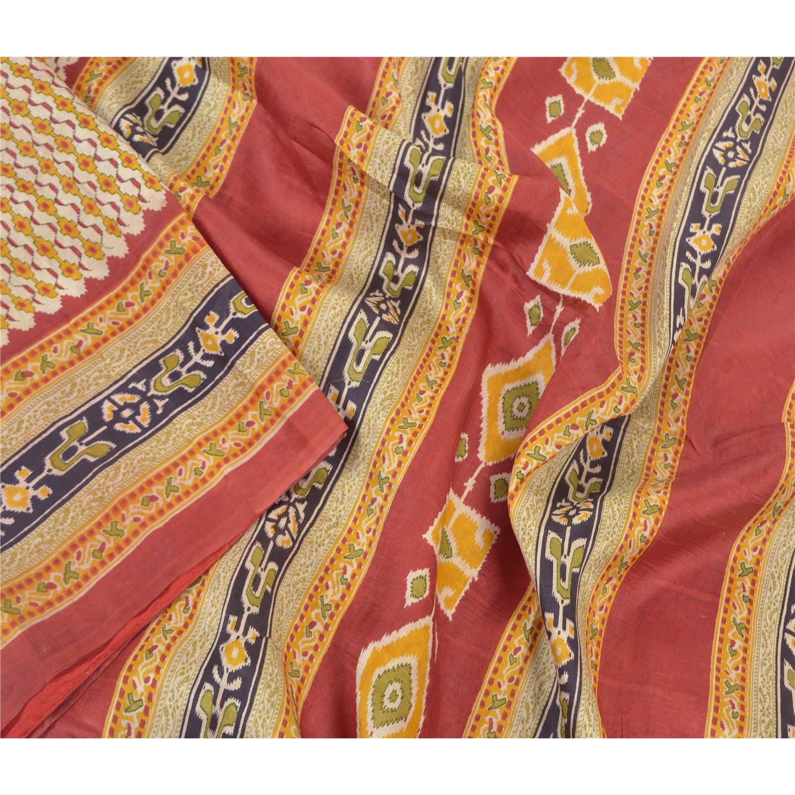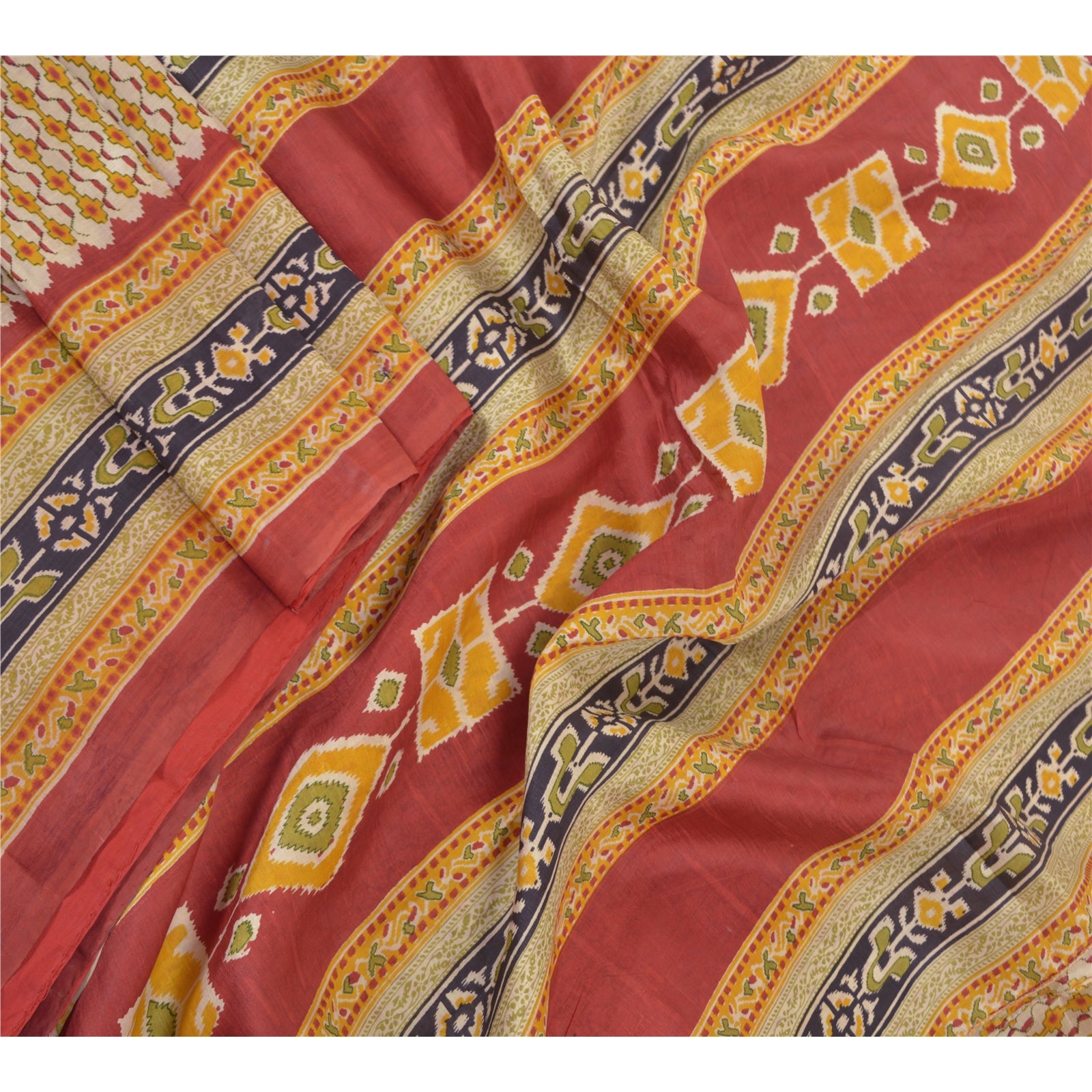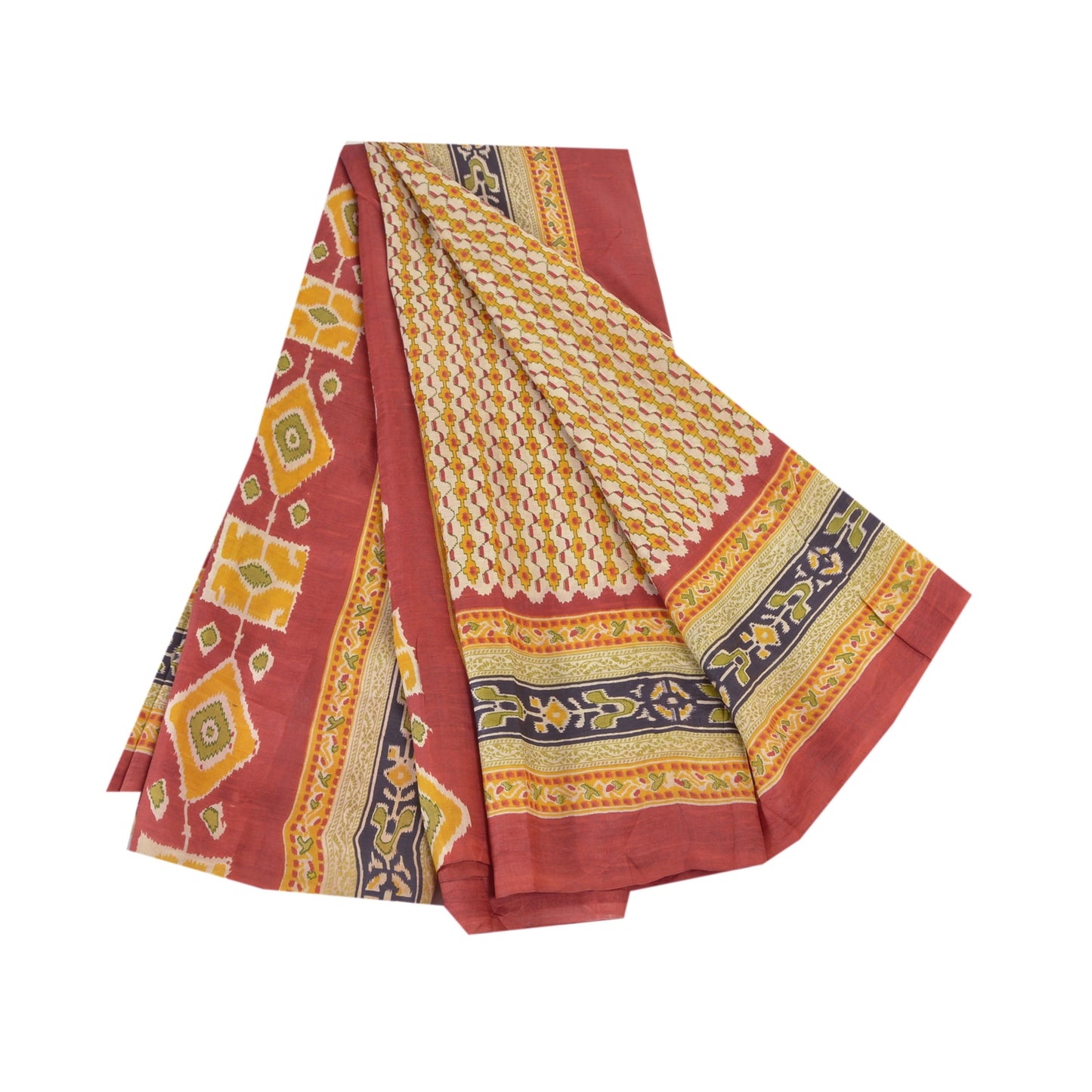 Beautiful Cream & Red Colored Saree 100% Pure Silk Printed Saree. Pallu & Border has printed floral pattern. The center part of sari boasts printed floral design. This unique vintage saree can be used for various crafting ideas even if you don't want to use it as a sari. Design a dress, use it as a throw, as window dressing, upholstery, sarongs, table linen and much more. Let your creative juices flow and use this decorated Sustainable Fabric in multiple fashion. For USA buyers - Single item ships via registered air mail, buy 1 more to get FedEx.