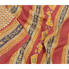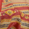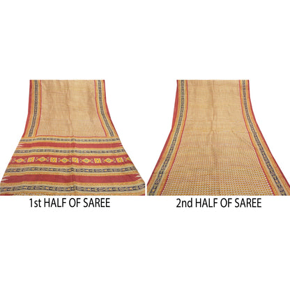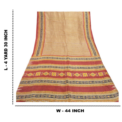 Sanskriti Vintage Cream/Red Sarees Pure Silk Floral Printed Sari Craft Sustainable Fabric