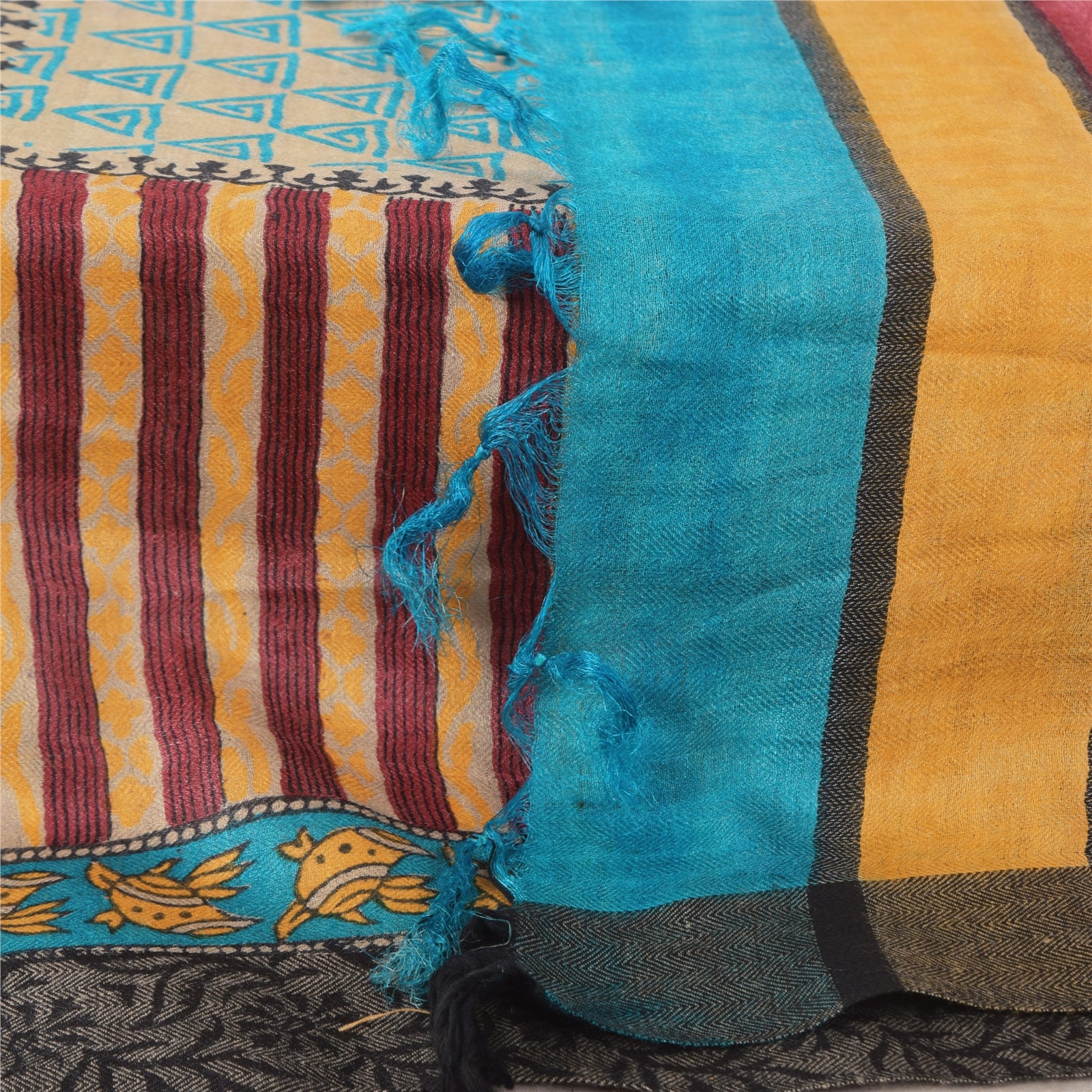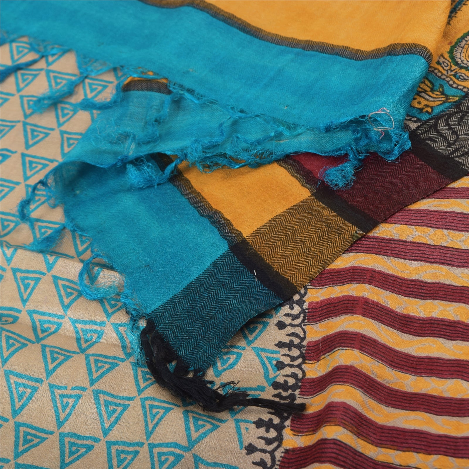Sanskriti Vintage Cream/yellow Dupatta Long Stole Cotton Silk Printed Wrap Veil