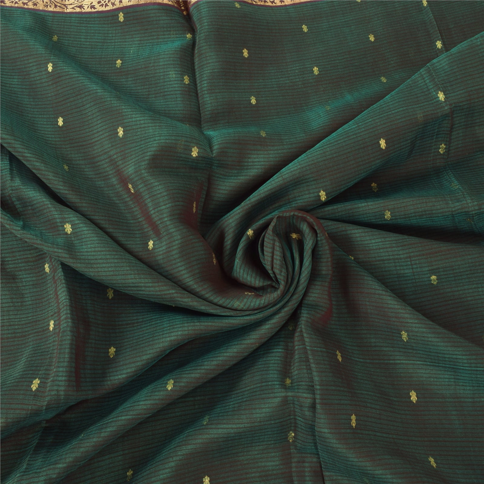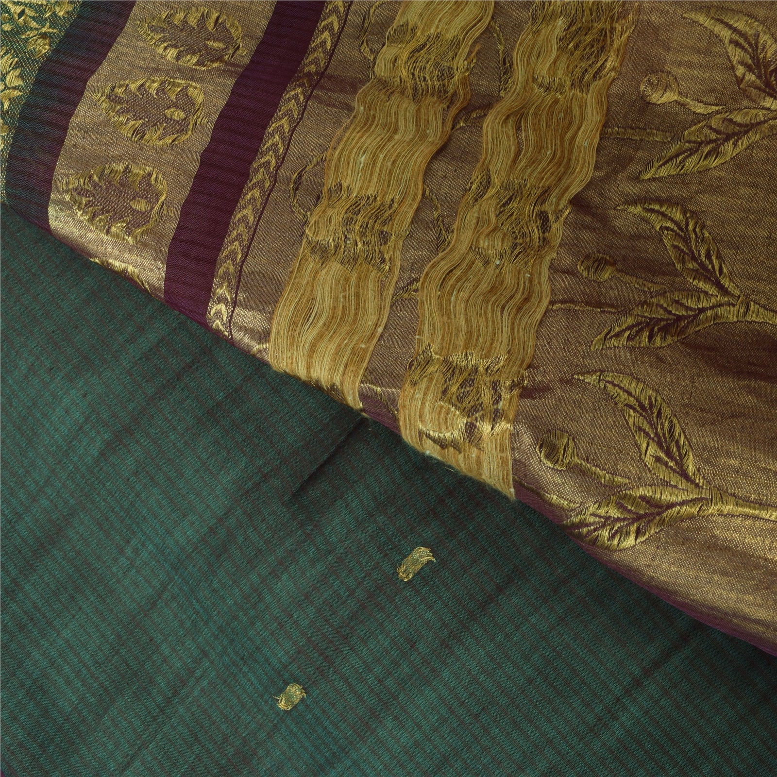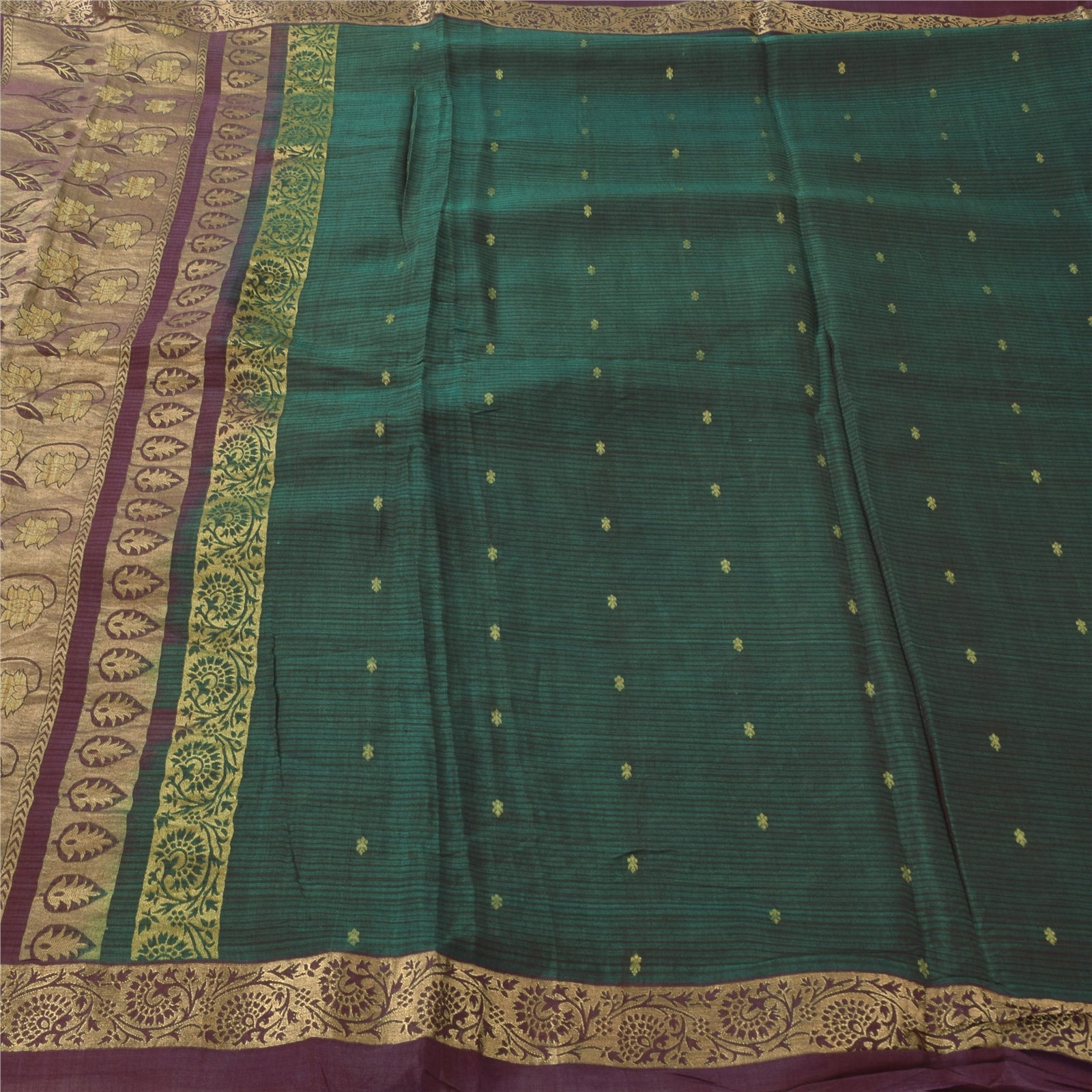 Sanskriti Vintage Dark Green/Purple Sarees Pure Silk Woven Premium Sari Sustainable Fabric
