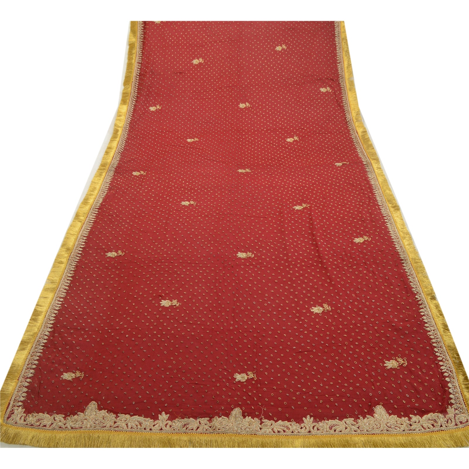 Sanskriti Vintage Dark Red Heavy Dupatta Pure Chiffon Silk Hand Embroidered Veil