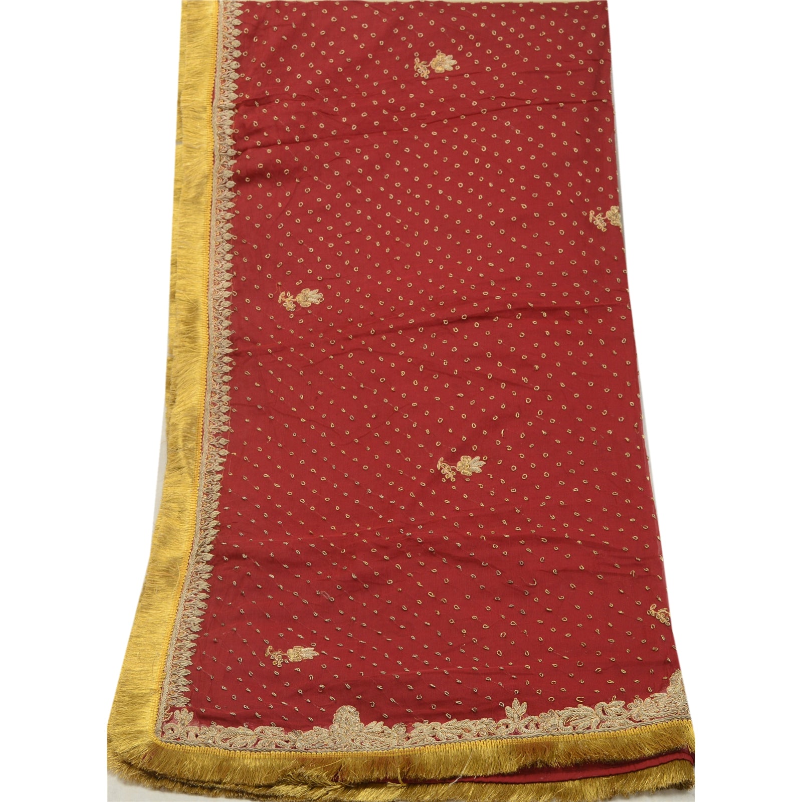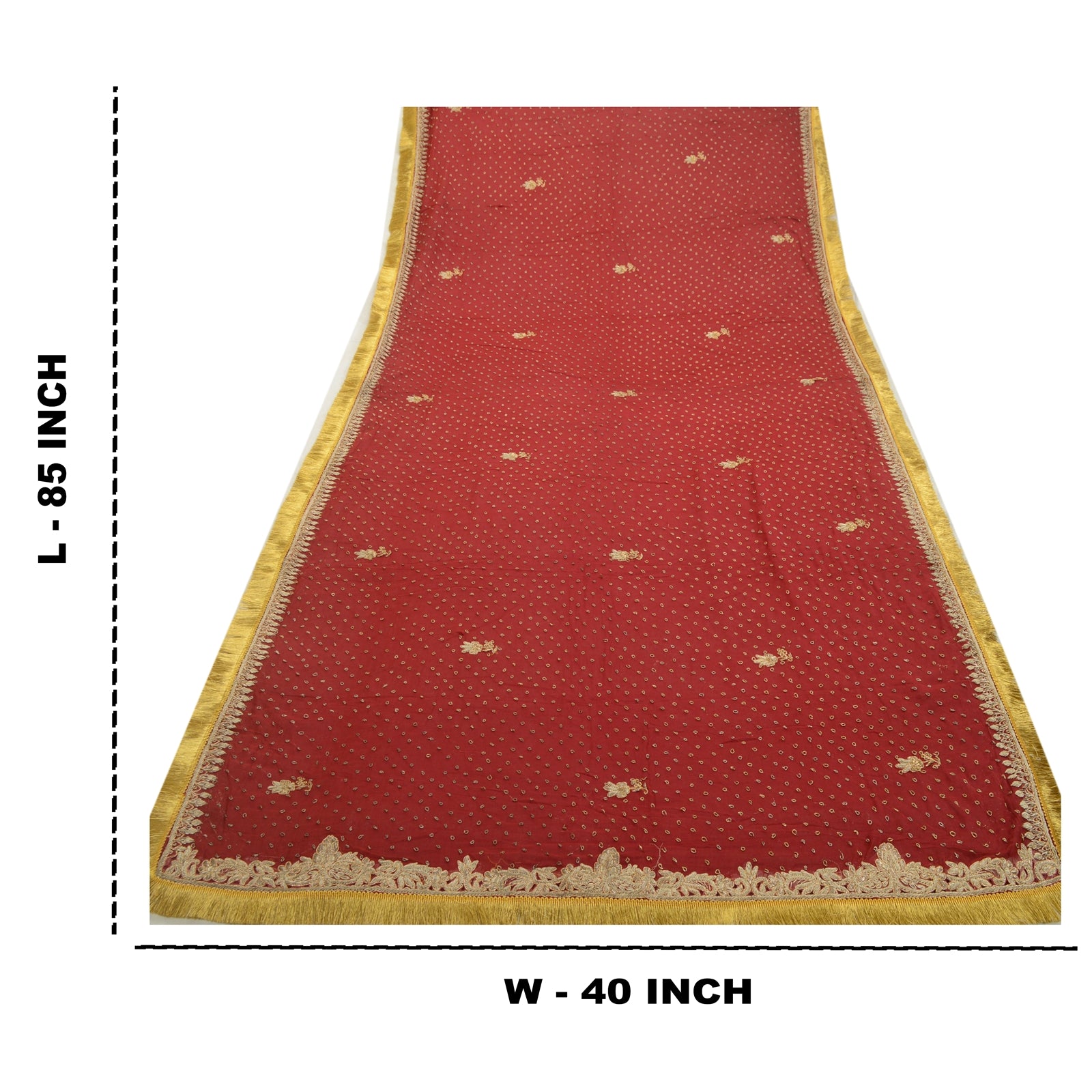 'THE ITEM COLOR OR SHADE MAY BE DARKER OR LIGHTER THAN THE PICTURE.' One Of A Kind Item. Stunning Very Heavy Dupatta Hand Embroidered Prue Chiffon Silk Dupatta/Stole In Dark Red Color Sustainable Fabric. The center part of the dupatta has fully covered floral design with zardozi, sequins, rhinestones work. Border feature is floral design embellished with metallic golden zari/zardozi work, golden dori work, golden fringes is main highlight of the dupatta. Zardozi work is giving a fabulous look to the dupatta. Awesome one !!! 'International buyers please note: Import duties, taxes, and charges are not included in the item price or postage cost. These charges are the buyer's responsibility. Please check with your country's customs office to determine what these additional costs will be prior to bidding or buying. Buyer will pay custom duty/tax. It is calculated and charged differently by every country. As a seller I do not have any control over it. VAT or sales tax is calculated by the platform at the time of checkout. Customs charge is payable at the time of delivery.'