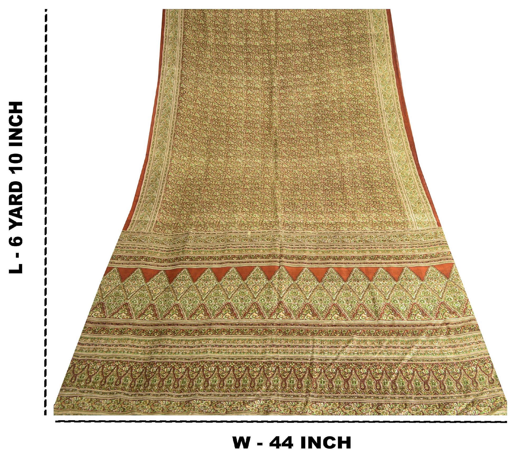 Sanskriti Vintage Dark Red Indian Pure Silk Printed Sarees Sari Soft 5yd Sustainable Fabric