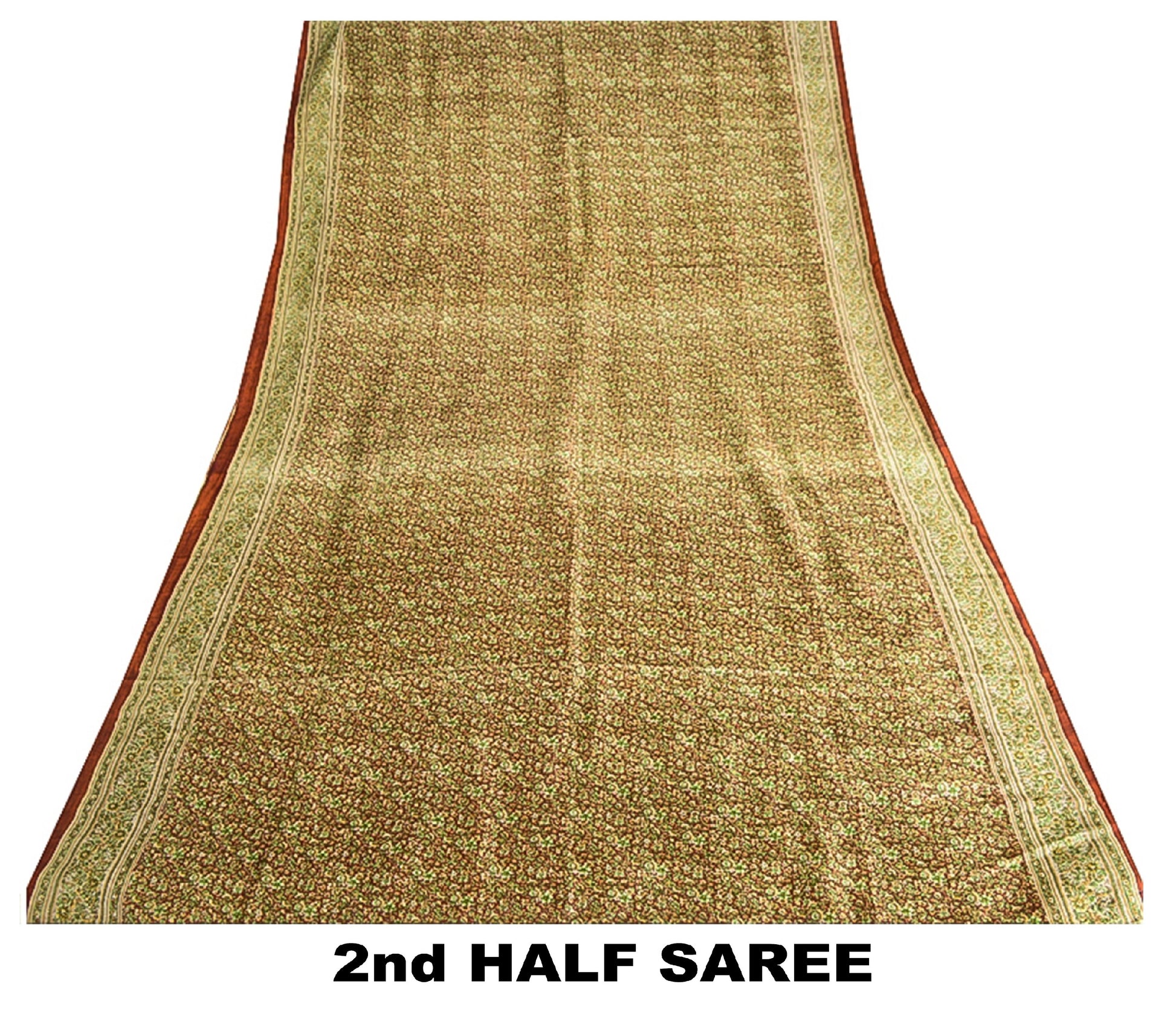 Gorgeous dark red & green colored pure silk printed saree. Pallu & Border has printed floral design. Floral design in center part of saree. What is special about this saree? Fabulous design is really enhancing the beauty of the saree.This unique vintage saree can be used for various crafting ideas even if you don't want to use it as a sari. Design a dress, use it as window,dressing, upholstery, sarongs, throw, dress making and table linen much more. Let your creative juices flow and use this decorated Sustainable Fabric in multiple fashion. Please note - Buyers from Australia are required to pay postage. Registered air mail to Australia is temporarily suspended due to the pandemic. Once it goes back to normal we'll revert to free shipping. For now, we are using Aramex and DHL to ship orders. These services are expensive but faster compared to regular mail. Thank you for your support. If you are buying in bulk we will refund whatever excess is left. Contact us after that purchase. For USA buyers - Single item ships via registered air mail, buy 1 more to get FedEx.