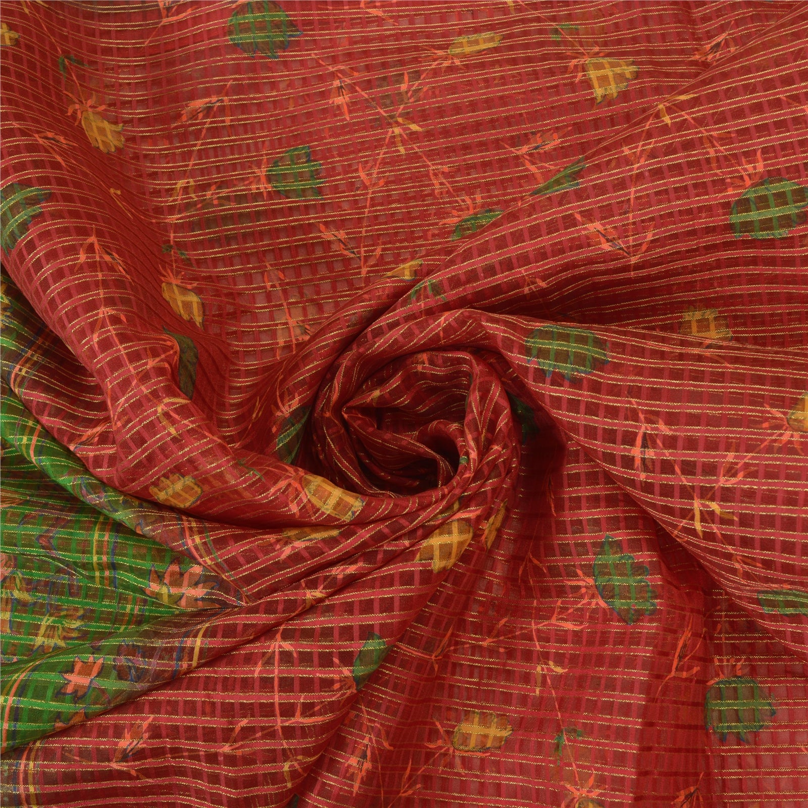 Beautiful dark red & green colored art ( artificial) silk woven printed sari. Pallu & Border has multi color printed floral pattern with woven square design. The center of the saree has similar printed & woven floral & square pattern. This saree can be used for various crafting ideas too. Use it for dress designing, as a throw, as window dressing, upholstery, table linen and much more. Let your creative juices flow.