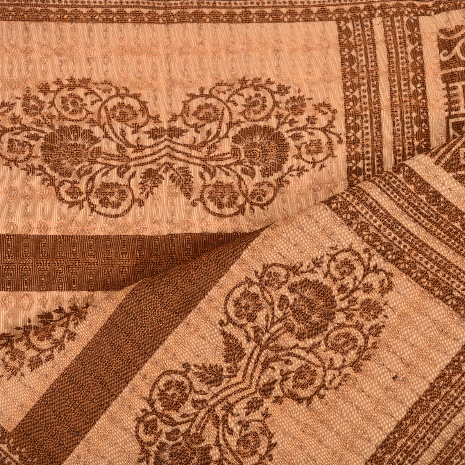 Sanskriti Vintage Dupatta Long Stole Art Silk Brown Printed Woven Scarves
