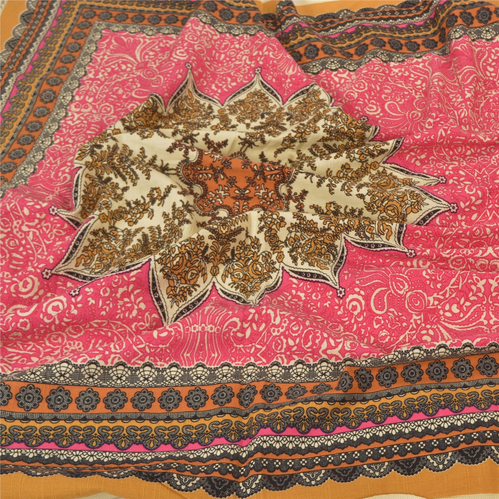 Sanskriti Vintage Dupatta Long Stole Blend Cotton Pink Hijab Printed Scarves